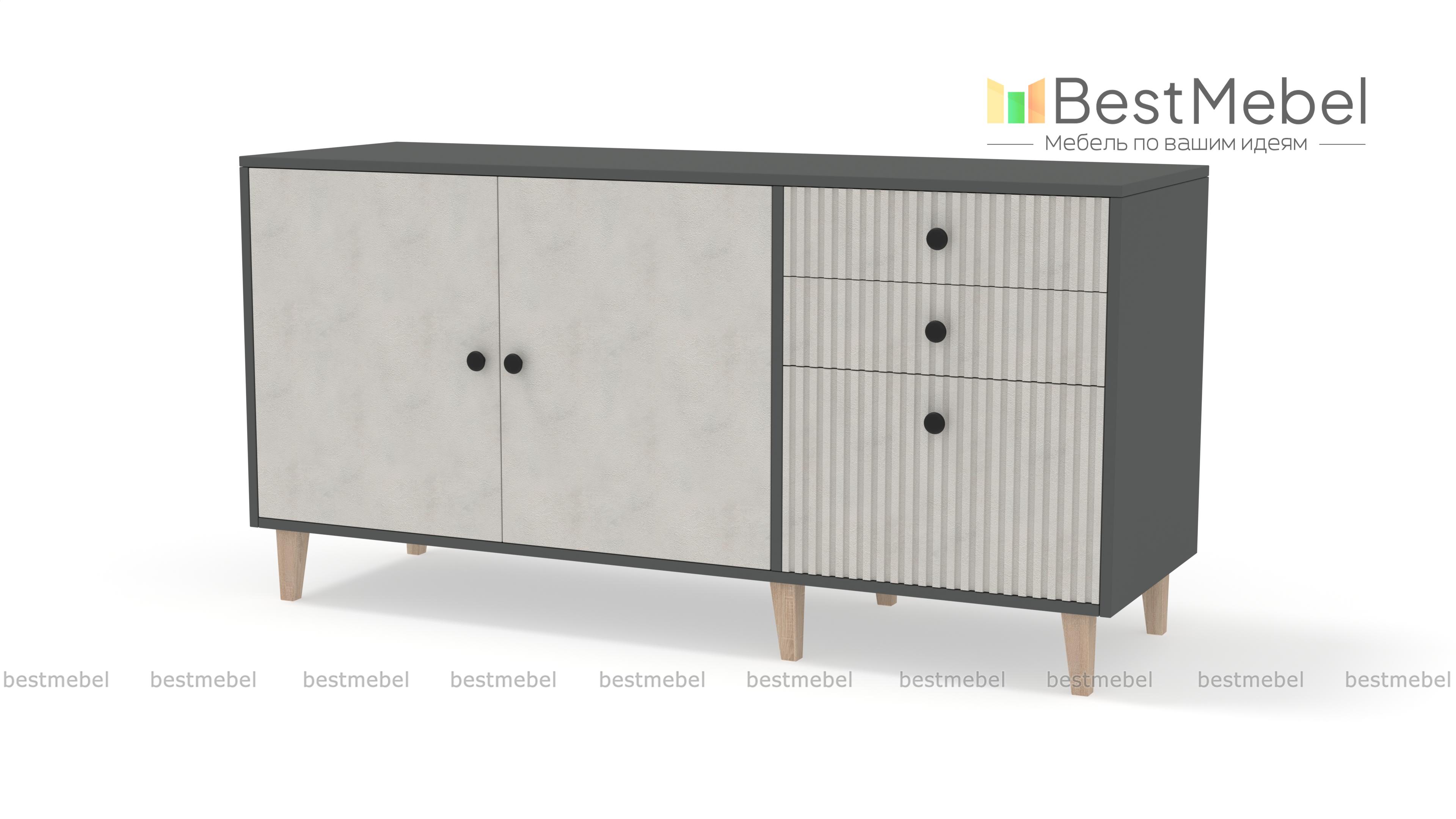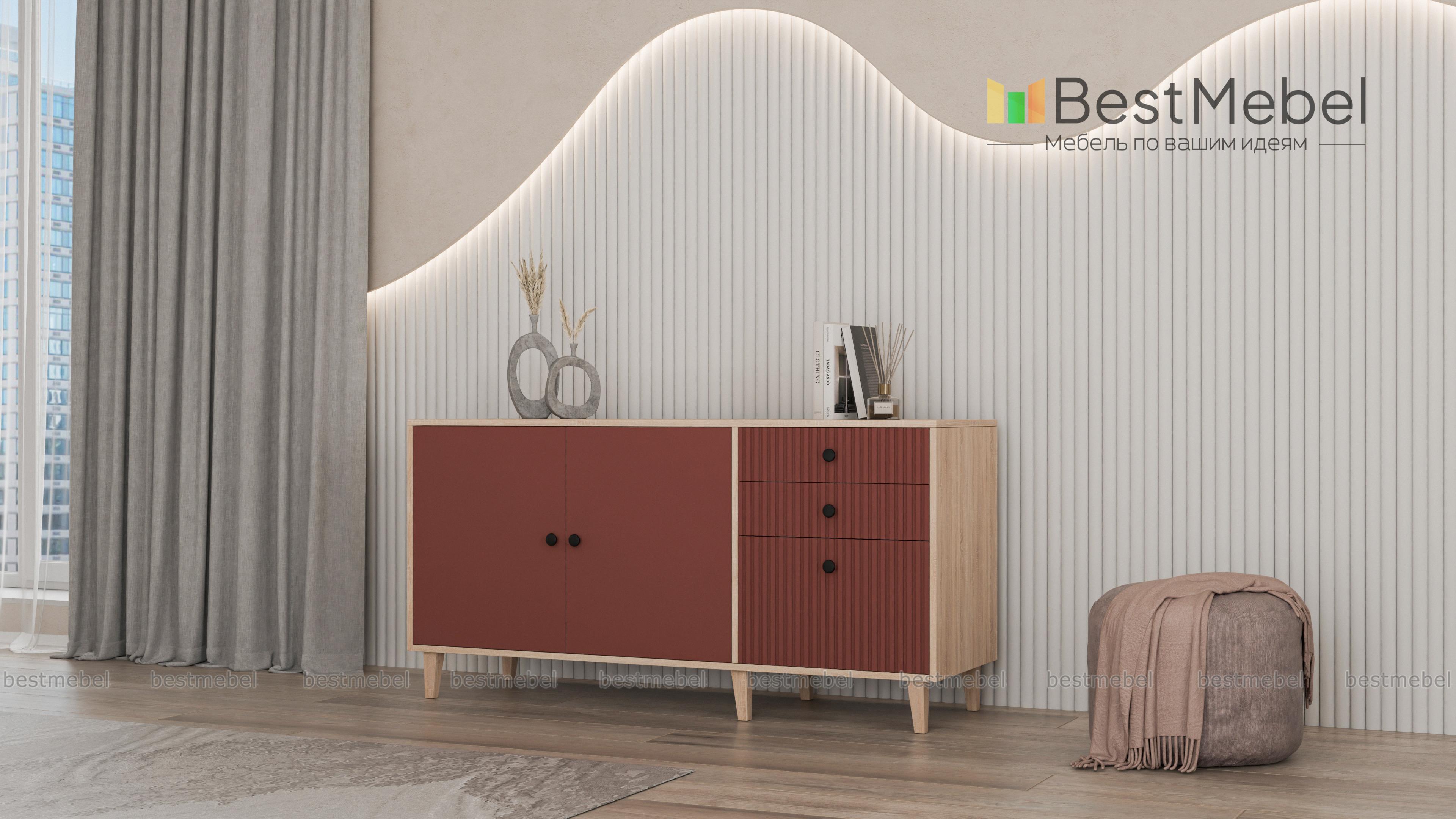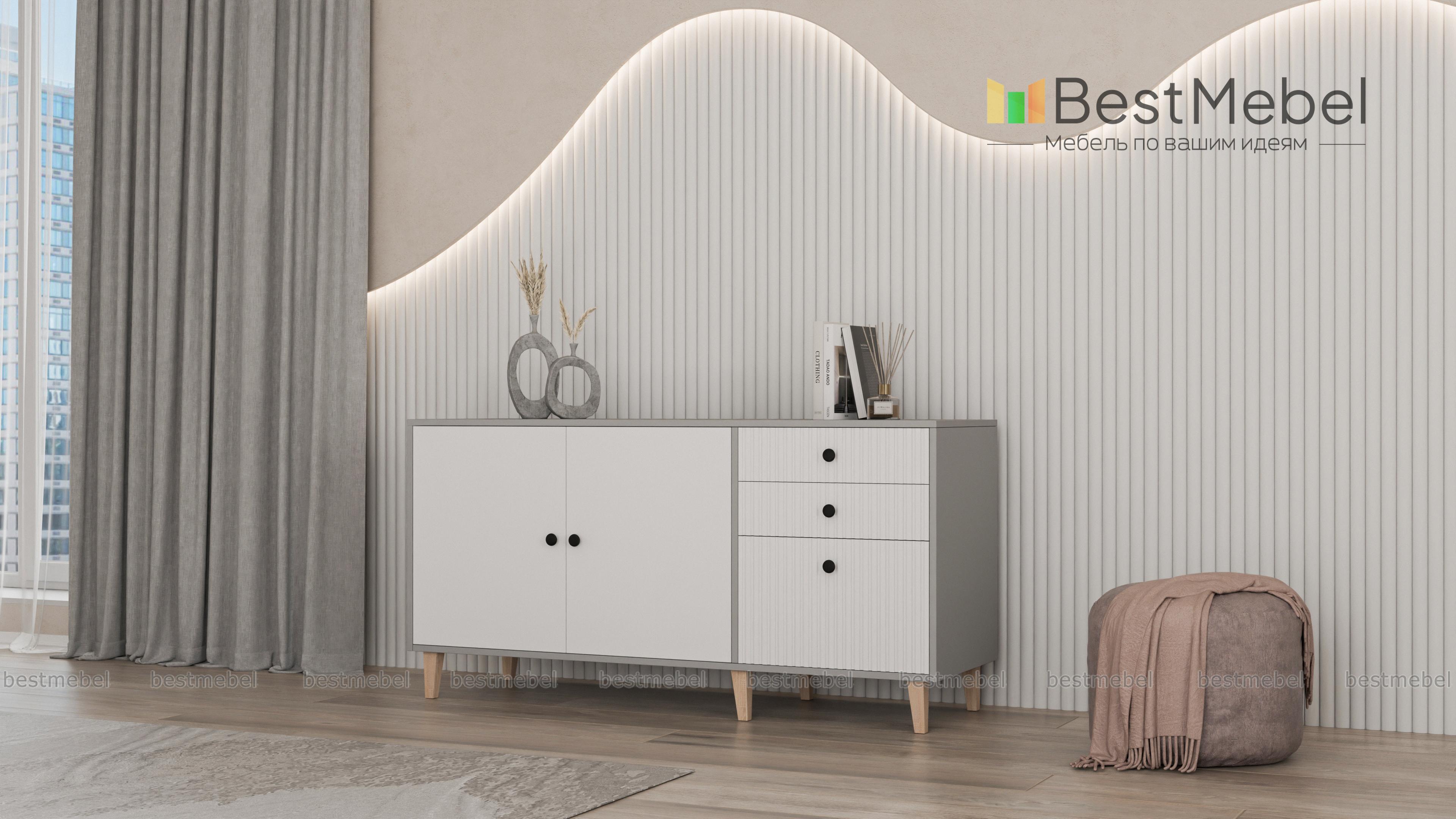Комод Брукс 6 BMS гармонично дополнит дизайн комнаты в современном стиле. В отделке фасада скомбинированы гладкие и рифленые поверхности, высокие ножки визуально облегчают вместительную конструкцию. Продуманная система хранения комода состоит из двухдверного распашного отделения слева и плавно выдвигающихся ящиков справа. Купить комод Брукс 6 BMS вы сможете в нашем интернет-магазине, самостоятельно подобрав размеры и подходящую интерьеру цветовую гамму.