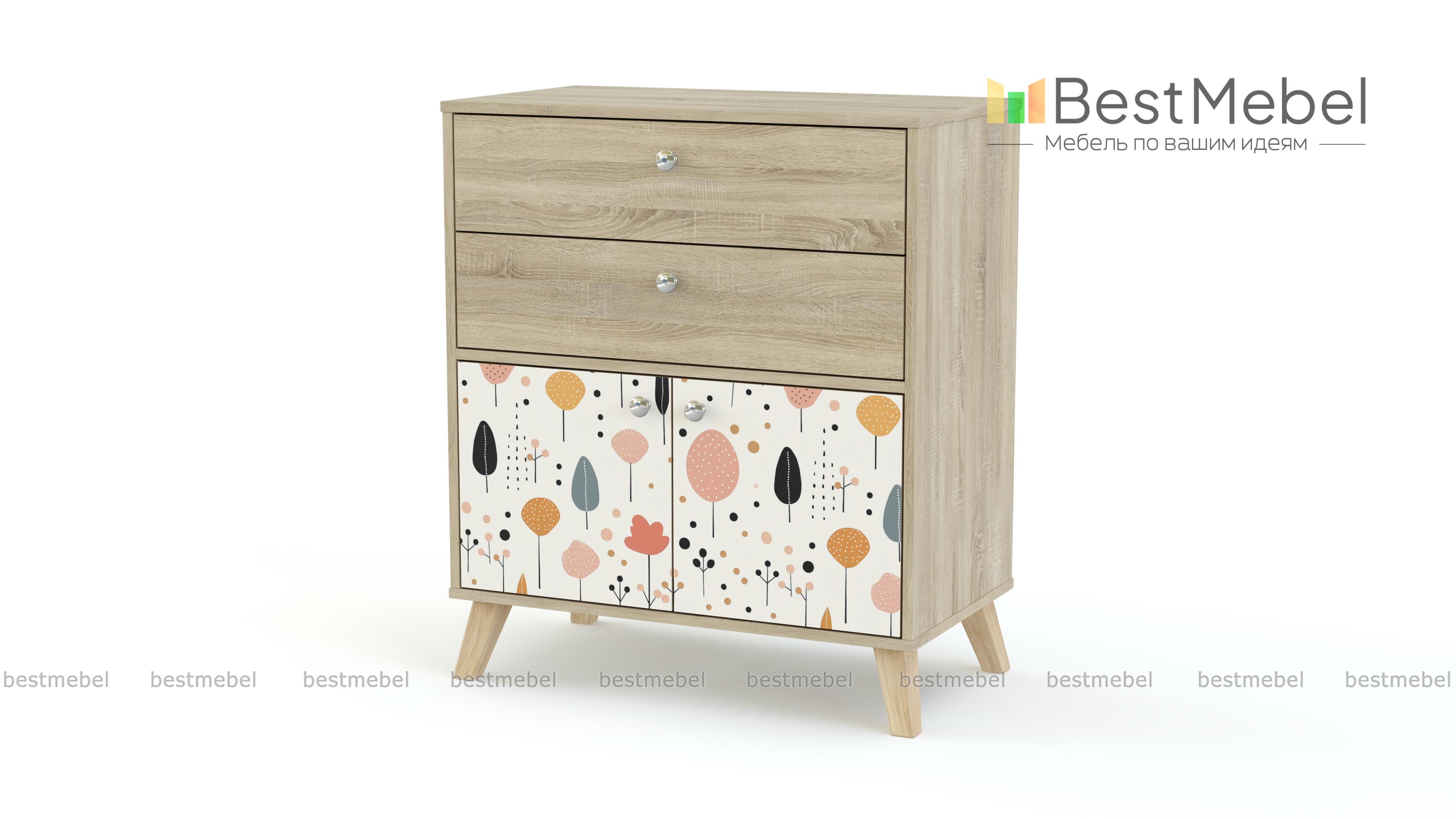 Комод Эльза 2 BMS — компактный и функциональный, создан для современной детской. Модель с высокими ножками, удобными округлыми ручками и нежным принтом хорошо дополняет мебель разной стилистики. Два выдвижных ящика и отделение с дверцами подойдут для хранения одежды ребенка, постельного белья и игрушек, а на столешницу можно положить книжку или поставить ночник. Купить комод Эльза 2 BMS приглашаем в наш интернет-магазин, подобрав фурнитуру и цвет по каталогу.