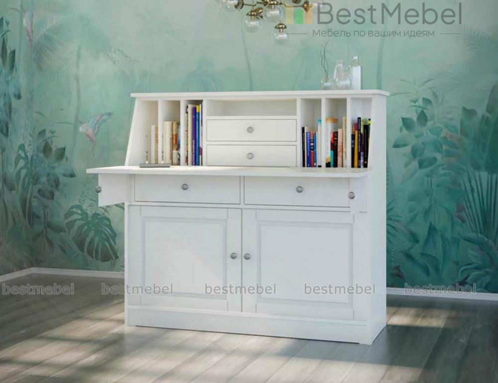 Вместительный Комод-секретер Ник-3 BMS впишется как в интерьеры ретро-стиля, так и современные прованс или лофт. Откидная крышка превращается в просторную столешницу, удобную для письма и работы за ноутбуком. Открытые отделения верхней части без труда разместят важные бумаги и канцелярские принадлежности. В выдвижных ящиках и вместительном распашном отделении достаточно места для книг, гаджетов и прочих необходимых под рукой мелочей. Универсальный белый цвет дополняет контрастная оригинальная фурнитура.