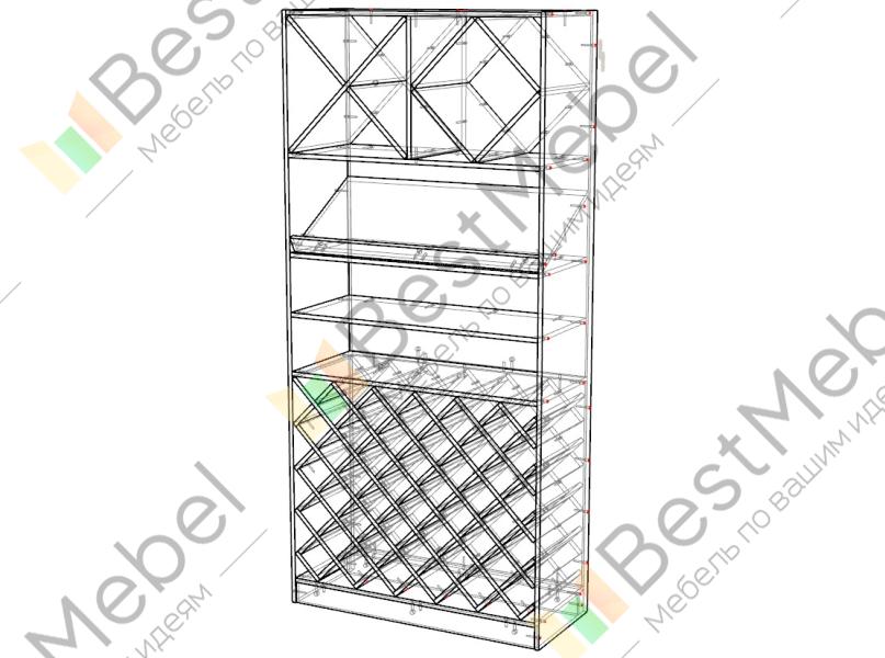 Шкаф Дионис 2 BMS в темном оттенке с имитацией камня станет акцентным предметом в интерьере современной кухни или гостиной. Вместительный открытый шкаф оборудован прямыми полками под бокалы, посуду и аксессуары, наклонной полкой с защитным бортиком и крестовыми полками, в которых бутылки с винами могут располагаться по одной или несколько штук. Практичная конструкция модели обеспечивает удобный доступ к содержимому полок и безопасное хранение. Купить шкаф Дионис 2 BMS для хранения коллекции вин вы сможете в нашем интернет-магазине.