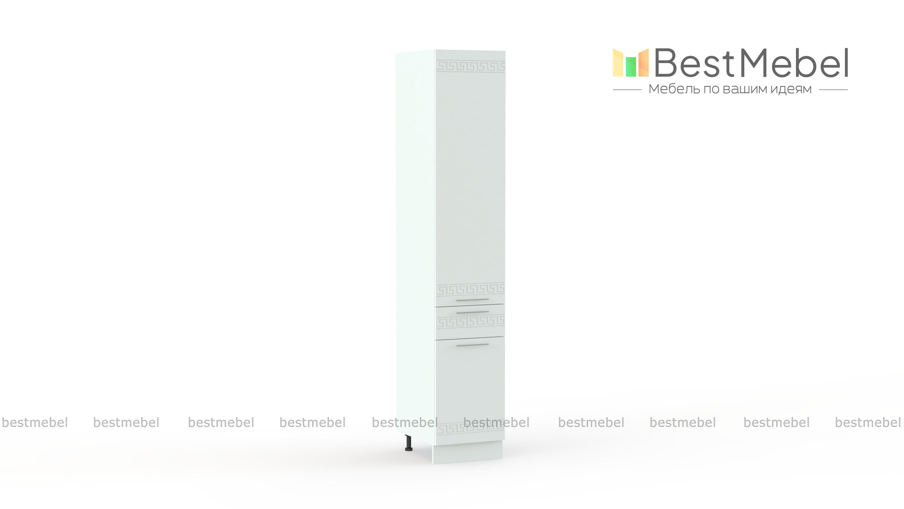 Шкаф-пенал 1 ящик 400 Греция BMS – это компактные размеры, отличная вместительность и демократичная цена. Высокий узкий шкаф оборудован двумя распашными отделениями с полками для продуктов и кухонной утвари и выдвижным ящиком, удобным для мелких вещей. Фасады в белом матовом оттенке с орнаментом не только эффектно смотрятся, но и надолго сохранят эстетичный вид благодаря износостойким материалам. Купить шкаф-пенал 1 ящик 400 Греция BMS, простой в уходе и надежный в эксплуатации, приглашаем недорого в наш интернет-магазин.