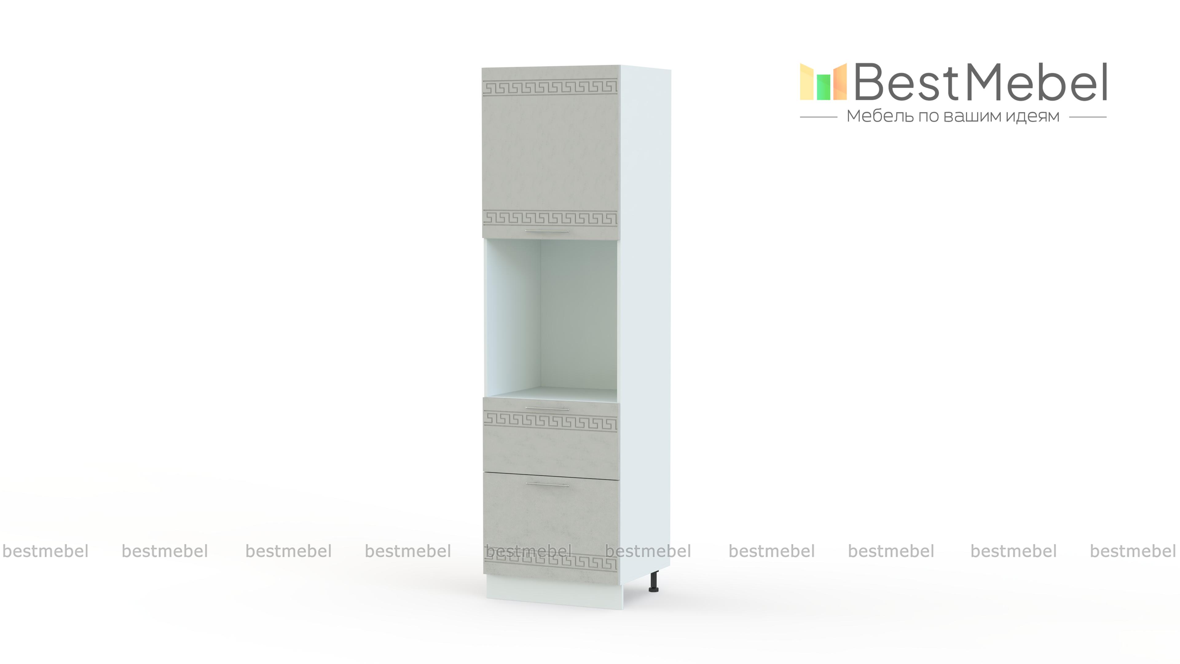 Шкаф-пенал с нишей 2 ящика Греция BMS дополнит кухонный гарнитур удобной системой хранения и поможет разместить бытовую технику. Шкаф выполнен в характерных для всей серии светлых тонах и декорирован этническим орнаментом и изящными ручками-скобами. В нижней части пенала располагаются два выдвижных ящика для мелочей, в верхней – распашное отделение, а центр занимает просторная ниша. Купить шкаф-пенал с нишей 2 ящика Греция BMS и создать комфортный интерьер в современном стиле вам поможет наш интернет-магазин.