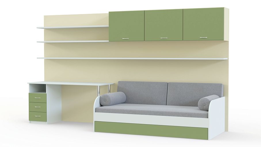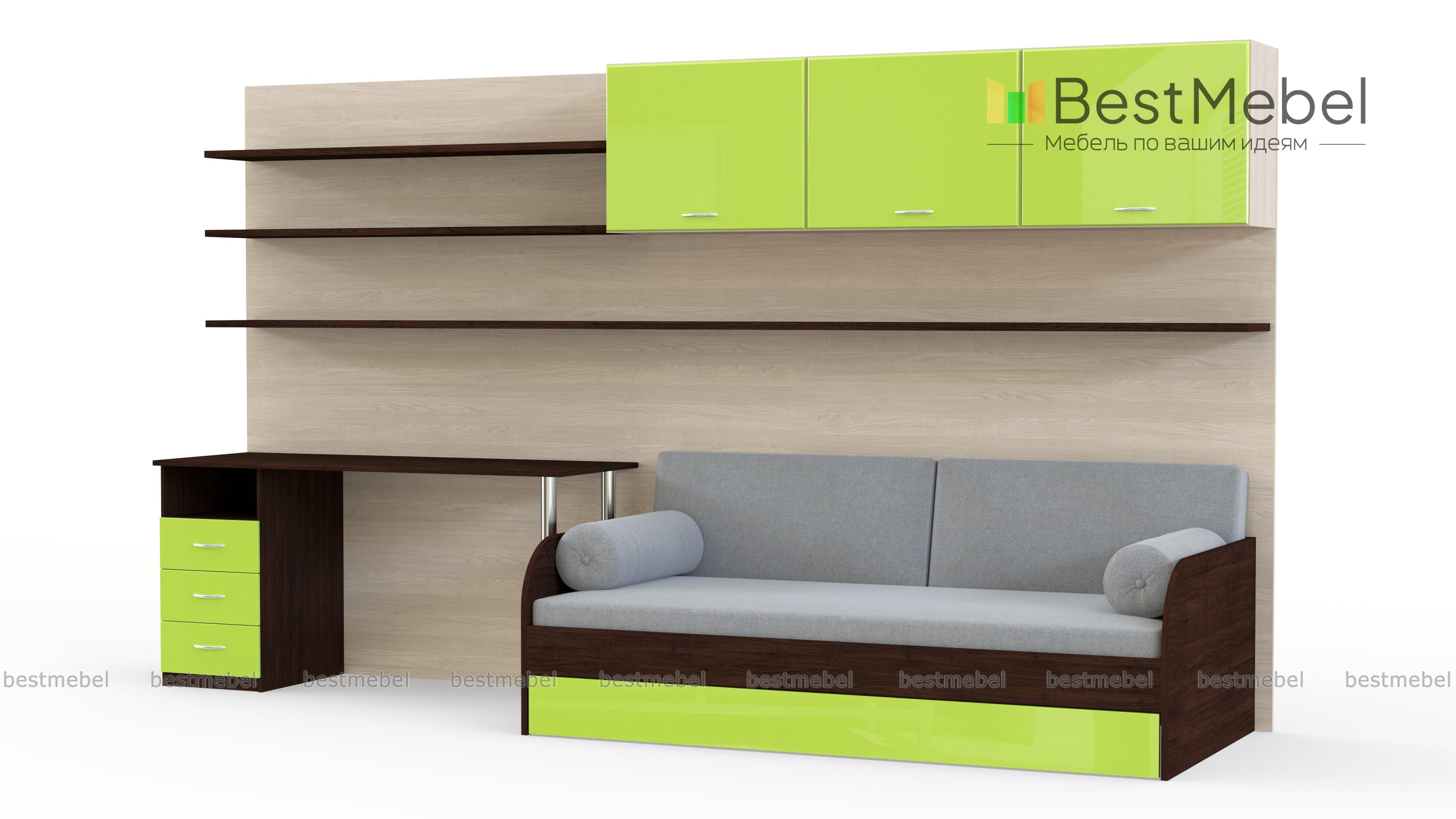 Детская Игорь BMS – стильный выбор для меблировки современной молодежной комнаты. Модульная система отличается актуальным дизайном, высокой функциональностью и надежностью конструкции. В комплект входят удобная для сна и дневного отдыха кровать, письменный стол с тумбой на хромированных опорах, глухие и открытые книжные полки. Древесные тона гармонично сочетаются с глянцевыми вставками свежего лаймового оттенка. Купить детскую Игорь BMS с учетом необходимых параметров приглашаем в наш интернет-магазин.
