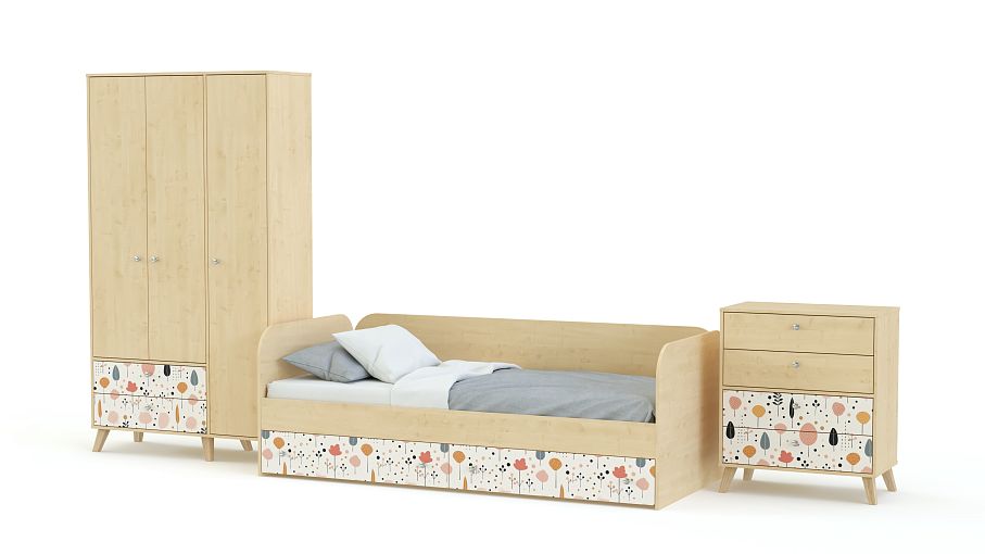Детская комната Эльза 2 BMS — это комфортное пространство для отдыха и удобная система хранения. Практичная кровать-софа оборудована бельевыми ящиками, а одежда, обувь и разнообразные мелочи разместятся в распашном шкафу с тремя дверцами и комоде. Для оформления комнаты выбрали теплую цветовую гамму, индивидуальности которой придают стильные акценты в виде принта-фотопечати. Купить детскую комнату Эльза 2 BMS вы сможете в нашем интернет-магазине, самостоятельно подобрав размеры, цвет и фурнитуру.