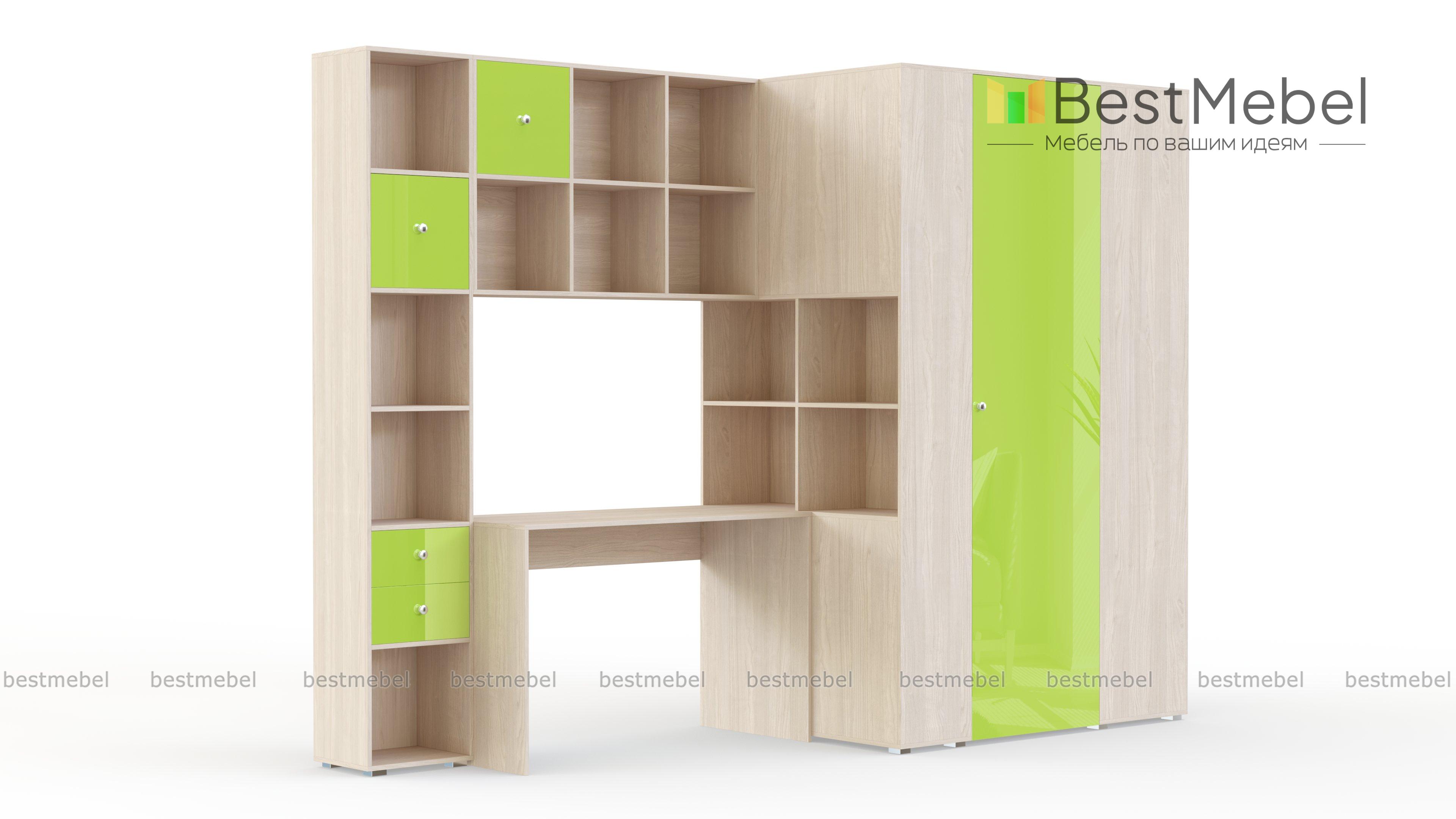Детская комната Салли 3 BMS объединила удобную систему хранения и рабочее место. В комплект входят двухфасадный шкаф, оборудованный просторными нишами, распашным отделением со штангой и бельевыми полками, комбинированный стеллаж, навесная книжная полка и письменный стол. Выполненная в сочетании светлых древесных тонов и цветного глянца, детская станет отличным выбором для комнаты современного школьника. Купить детскую комнату Салли 3 BMS вы сможете выгодно в нашем интернет-магазине.