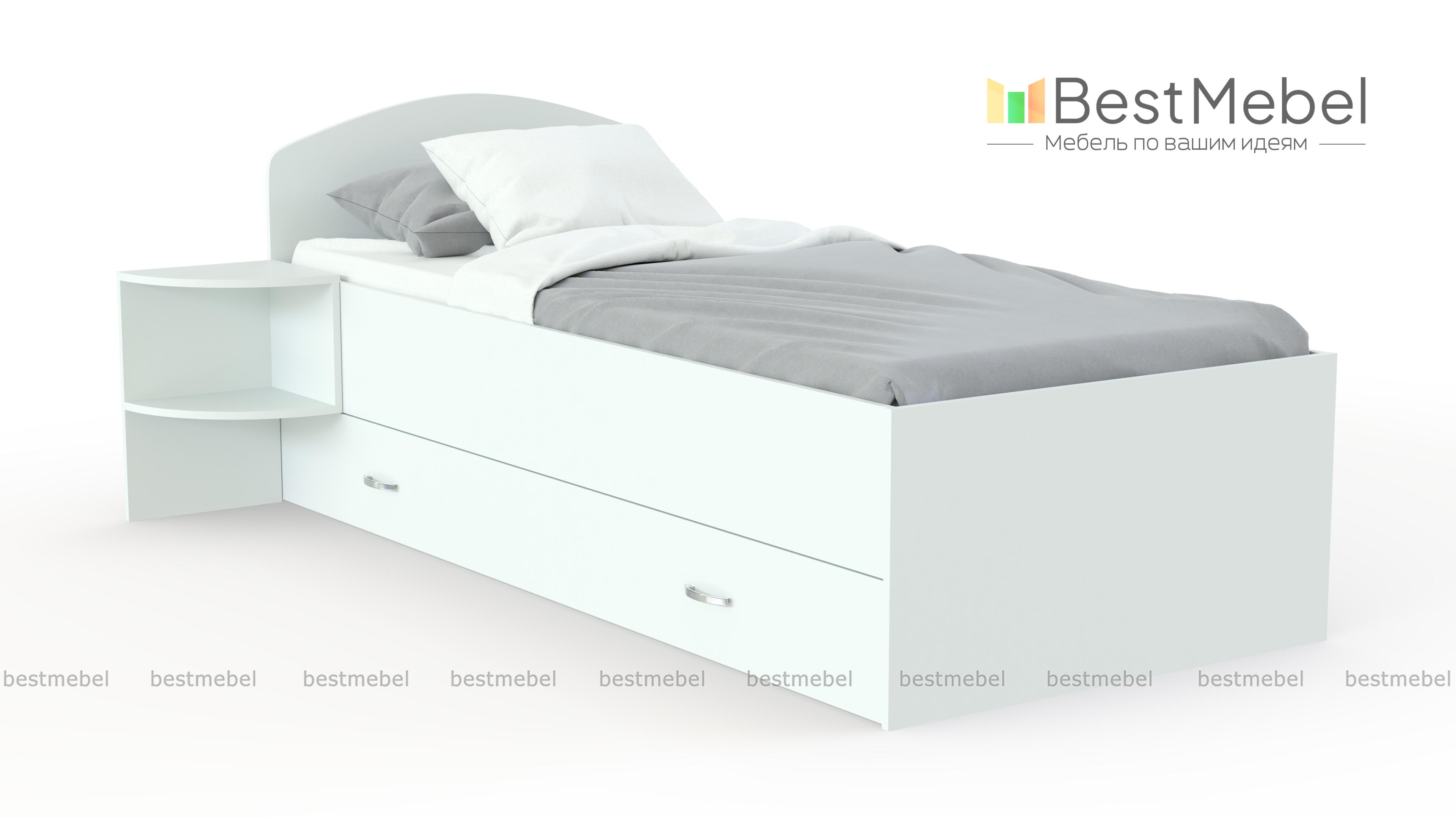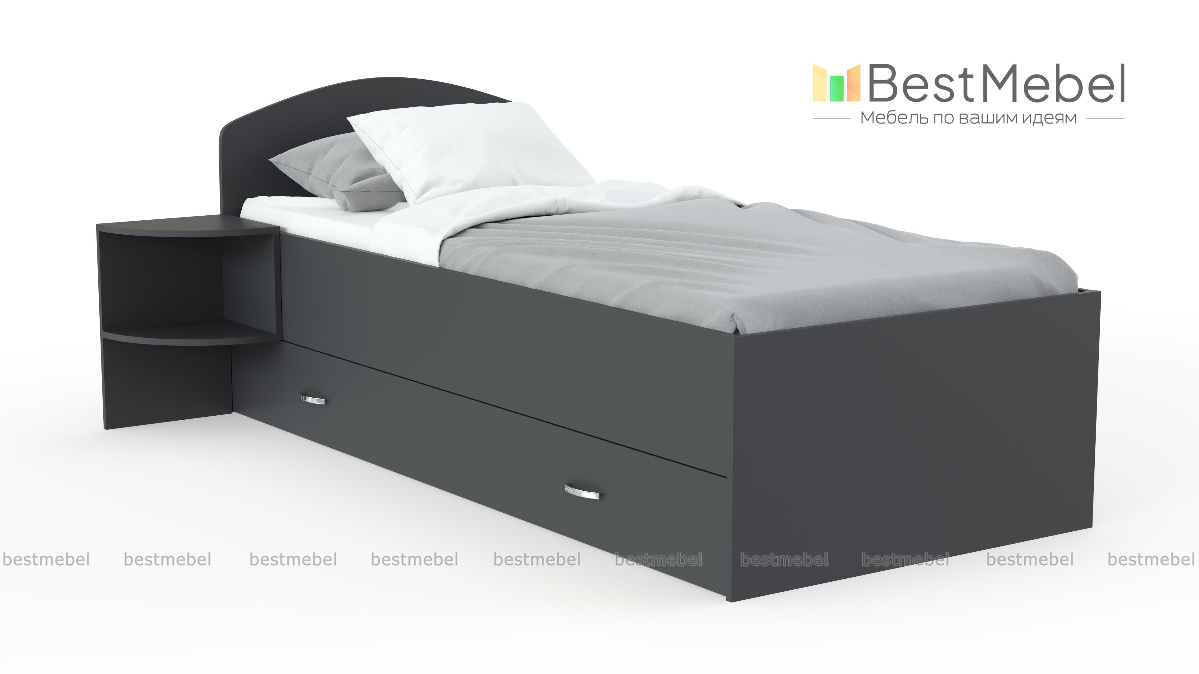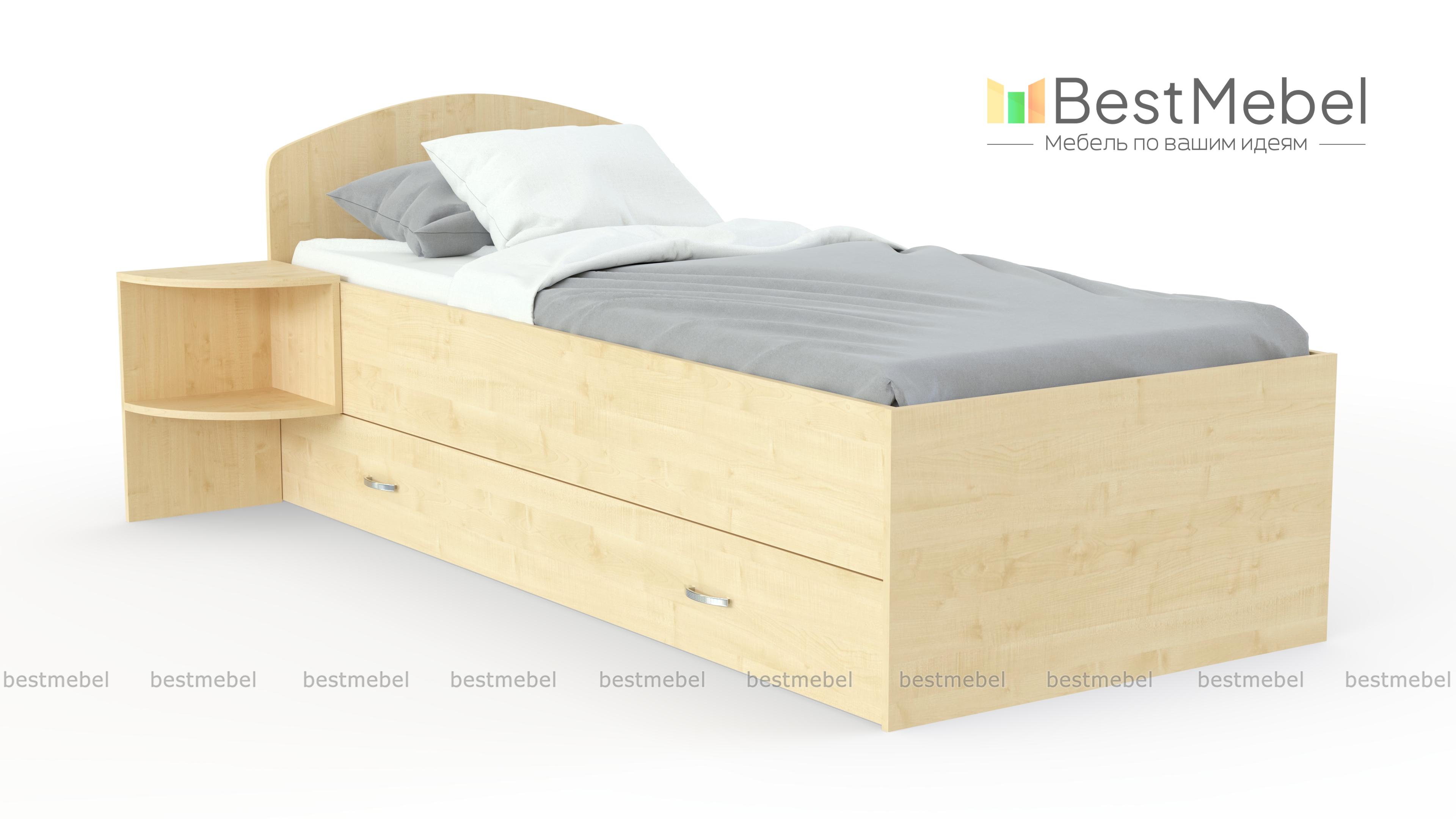 Кровать Mebi BMS – универсальная модель для интерьера современных молодежных комнат. Кровать выполнена в светлых древесных тонах и оборудована просторным спальным местом без спинки в изножье и низким скругленным изголовьем. Для удобного размещения в зоне быстрого доступа книг, журналов и необходимых мелочей модель дополнена открытыми полками, а для хранения постельных принадлежностей предусмотрен широкий ящик в основании. Купить кровать Mebi BMS и эффективно использовать пространство вам всегда поможет наш интернет-магазин.