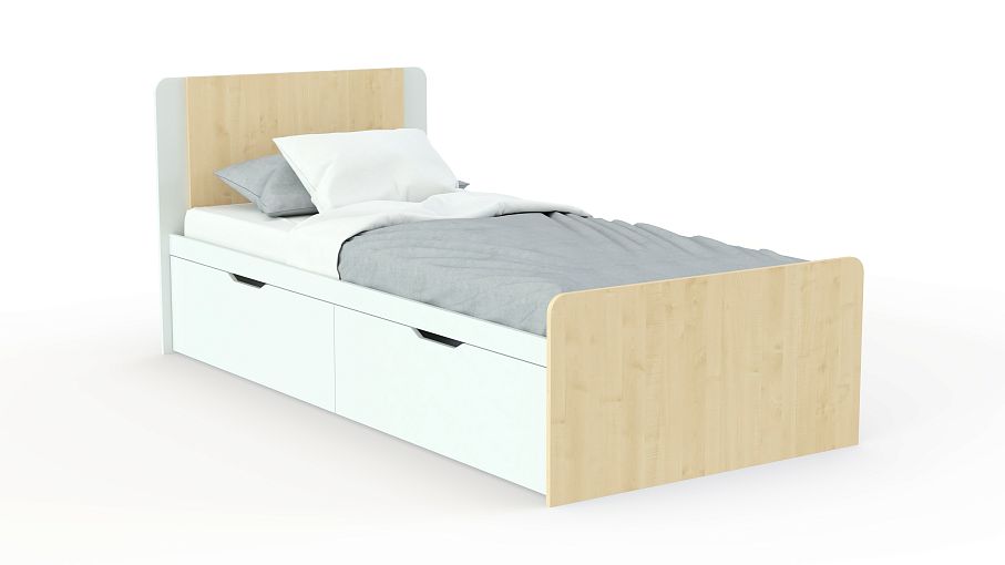 Кровать детская с ящиками Эмма BMS выполнена в нежном сочетании белого и древесного оттенка, которое гармонично дополнит интерьер комнаты девочек. Визуально легкая модель оборудована комфортным спальным местом и безопасно скругленными спинками в изножье и изголовье. В основании располагаются удобные для хранения постельных принадлежностей выдвижные ящики с практичными ручками-вырезами. Простота конструкции и экологичные износостойкие материалы станут гарантией долговечности. Купить кровать детскую с ящиками Эмма BMS приглашаем в наш интернет-магазин.