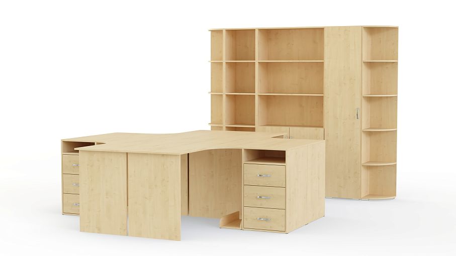 Офисный комплект Uno № 5 BMS представлен четырьмя угловыми компьютерными столами, которые помогут оборудовать рабочий кабинет в едином стиле. Плавный вырез столешницы отвечает требованиям эргономичности, удобное размещение канцелярским принадлежностям и документам обеспечат выдвижные ящики и ниши боковых тумб. Для системного блока предусмотрена подставка. Расположив столы по отдельности или скомбинировав в единую композицию, вы получите не только функциональные, но и стильные варианты интерьера. Купить офисный комплект Uno № 5 BMS вы сможете в нашем интернет-магазине.