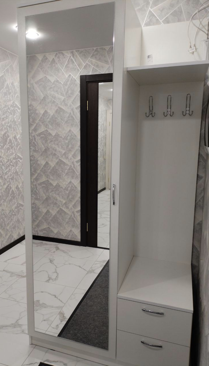 Купили дешевле. За 5200 руб. Очень хорошая прихожая. Ничего лишнего. Но в сборке есть неточности в расстояниях приготовленных дырок.