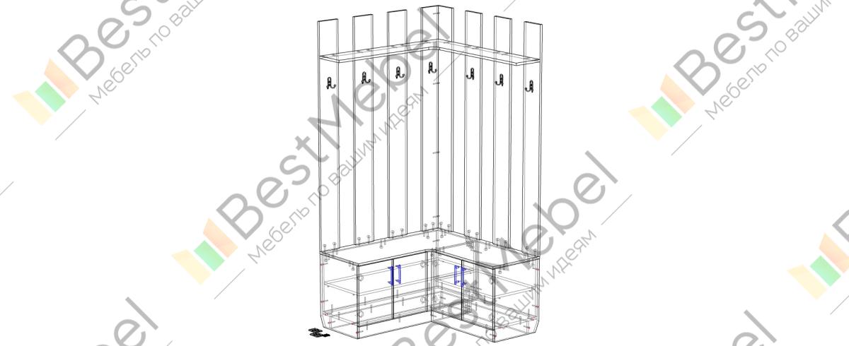 Прихожая угловая Тироль 10 BMS выгодно использует особенности планировки и разместит в удобном доступе верхнюю одежду, обувь и аксессуары. В нижней части располагаются двухдверные распашные тумбы, а в верхней – открытая вешалка с крючками и полкой под головные уборы. Благодаря конструкции из отдельных вертикальных планок прихожая не выглядит громоздко и визуально увеличивает высоту потолка. Купить прихожую угловую Тироль 10 BMS вы сможете в нашем интернет-магазине с выбором цвета и размеров.
