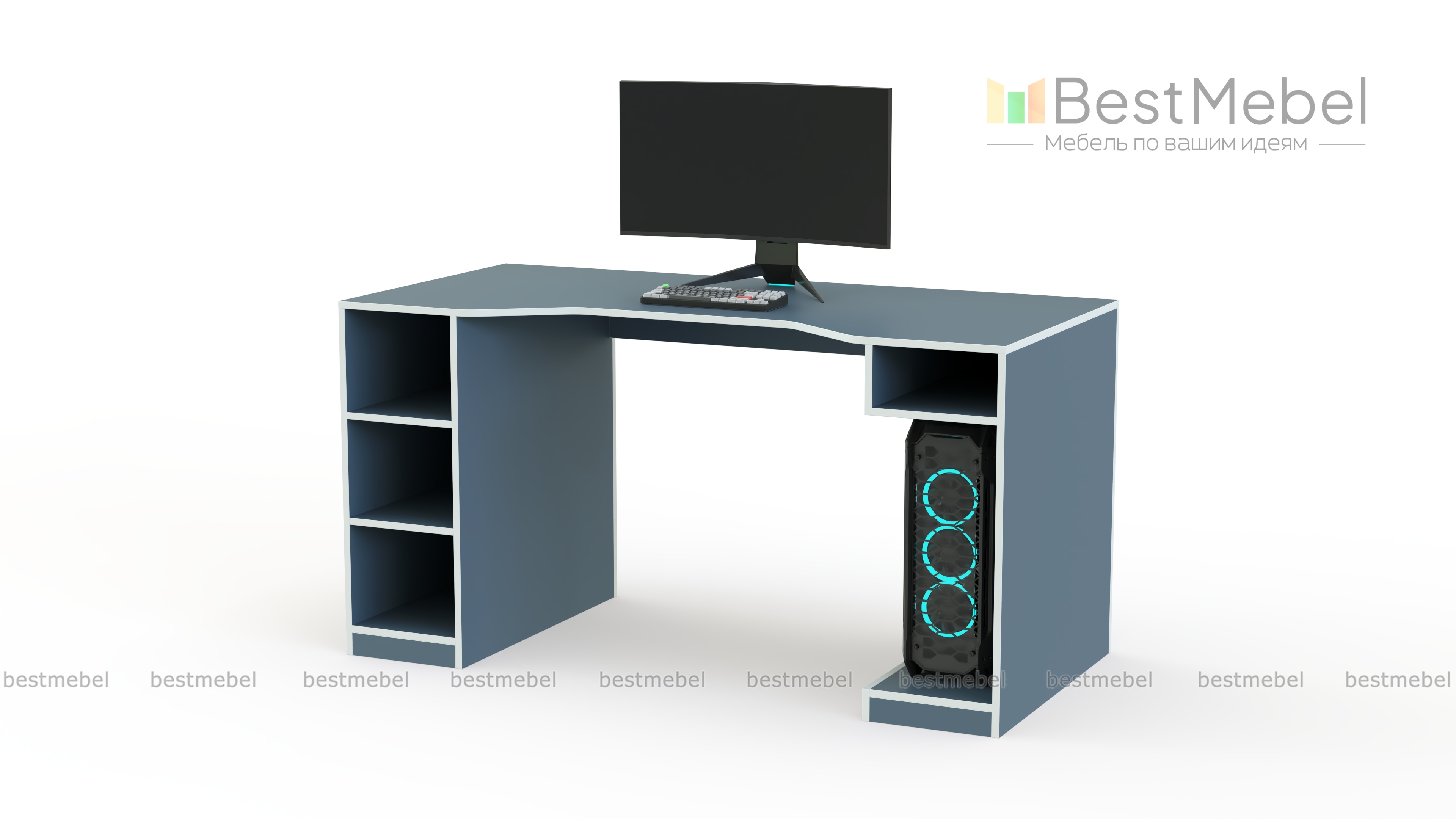 Игровой стол Слоун 13 BMS отличается минималистичным дизайном и интересным решением в синем цвете с контрастным кантом. Прямая модель с эргономичным вырезом столешницы имеет просторную рабочую поверхность, на которой смогут разместиться монитор и периферийные устройства. Две опорные тумбы обеспечивают модели устойчивость и позволяют расположить системный блок и необходимые рабочие материалы. Купить игровой стол Слоун 13 BMS и оборудовать комфортное рабочее место вам поможет наш интернет-магазин.