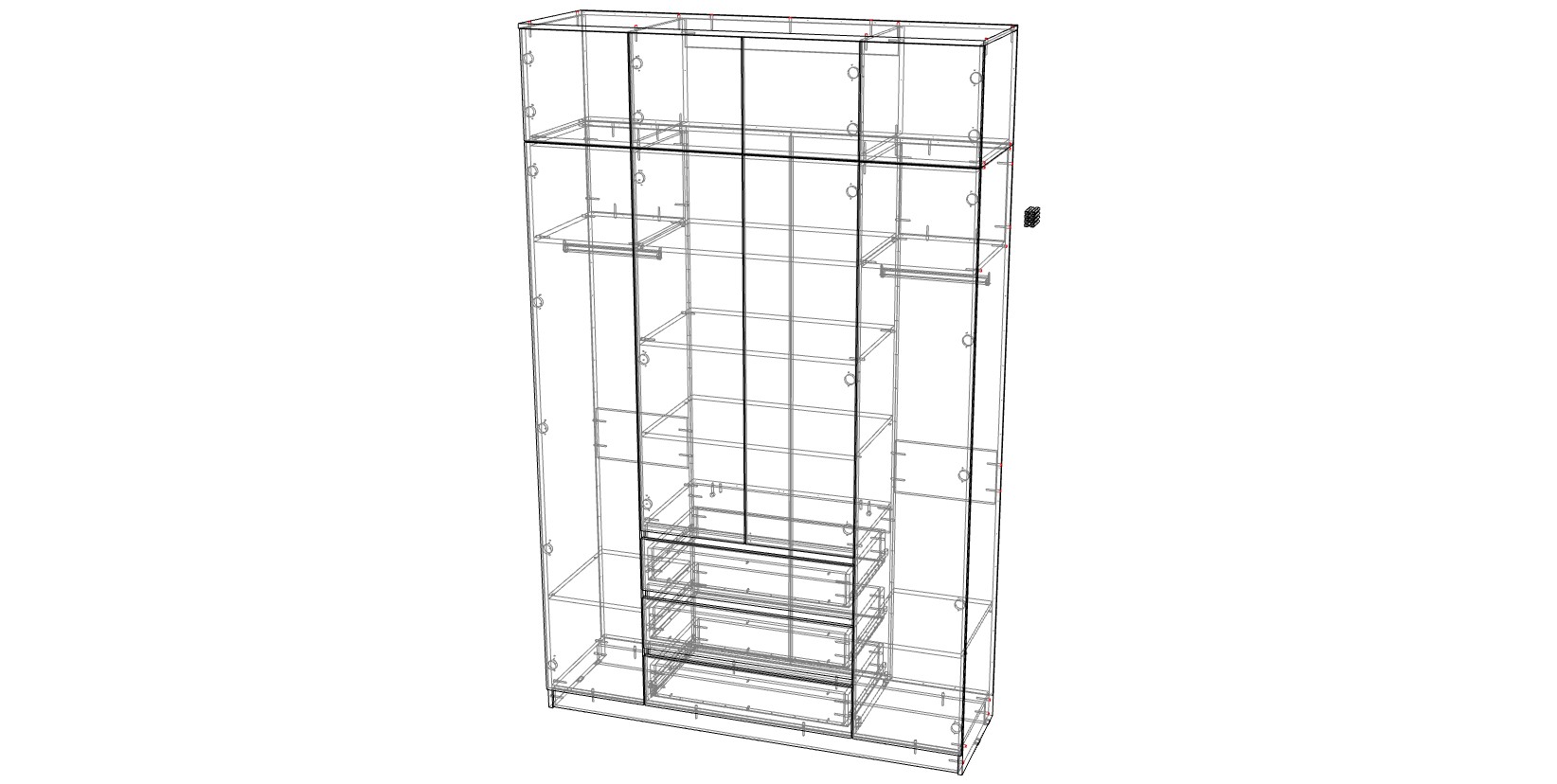 Шкаф распашной Мальм Malm 4 - это стильная простота и геометричные формы. За четырьмя распашными дверцами без лицевой фурнитуры скрыты платяные отделения и бельевые полки, а в центре располагаются три широких выдвижных ящика. Базовый цвет и отсутствие лишних деталей позволяют легко комбинировать шкаф с другой современной мебелью и практически любым декором. Купить шкаф распашной Мальм Malm 4 вы сможете в нашем интернет-магазине с выбором цвета и размеров. Выбирайте мебель в стиле IKEA (ИКЕА) от производителя BestMebelShop!