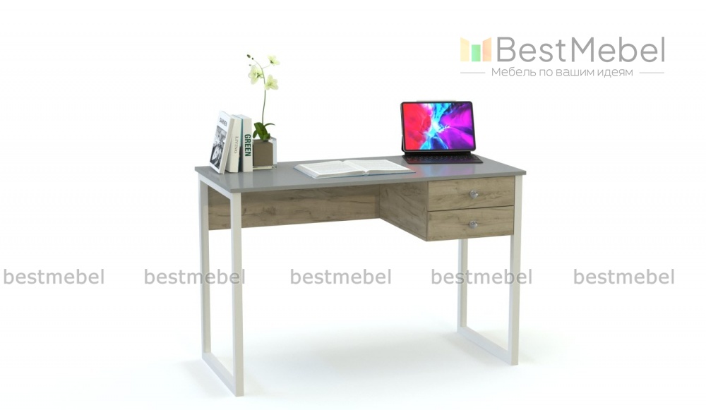 Стол компьютерный Хэтти 13 BMS – оптимальное решение для малогабаритной квартиры или офисного помещения. Компактная модель оборудована двумя выдвижными ящиками для хранения документов или рабочих материалов и широкой столешницей из лдсп 22 мм, на которой вы с комфортом сможете разместить монитор, периферийные устройства и канцелярские принадлежности, скрытый монтаж. Надежные металлические опоры обеспечат устойчивость во время высокой нагрузки и дополнительную прочность конструкции.