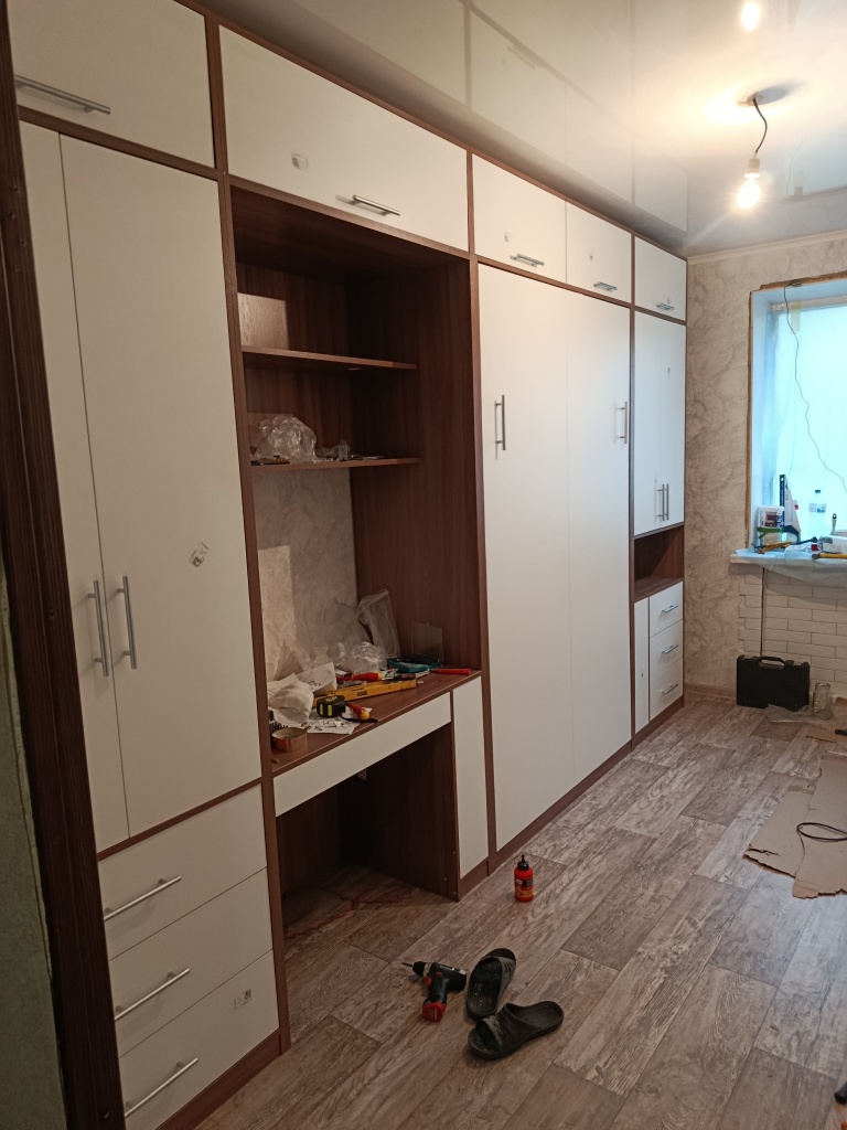 Заказ 00000226012. Изначально хотела заказать готовый проект, как на картинке, но кое-что не устраивало. Проект полностью переделали по моим хотелкам. Было бы очень удобно, если бы сидушка дивана убиралась вниз, а то приходится прятать ее в шкаф. Мебель в комнату подростку, диван превращается в кровать. С момента оформления заказа до доставки 6 дней.