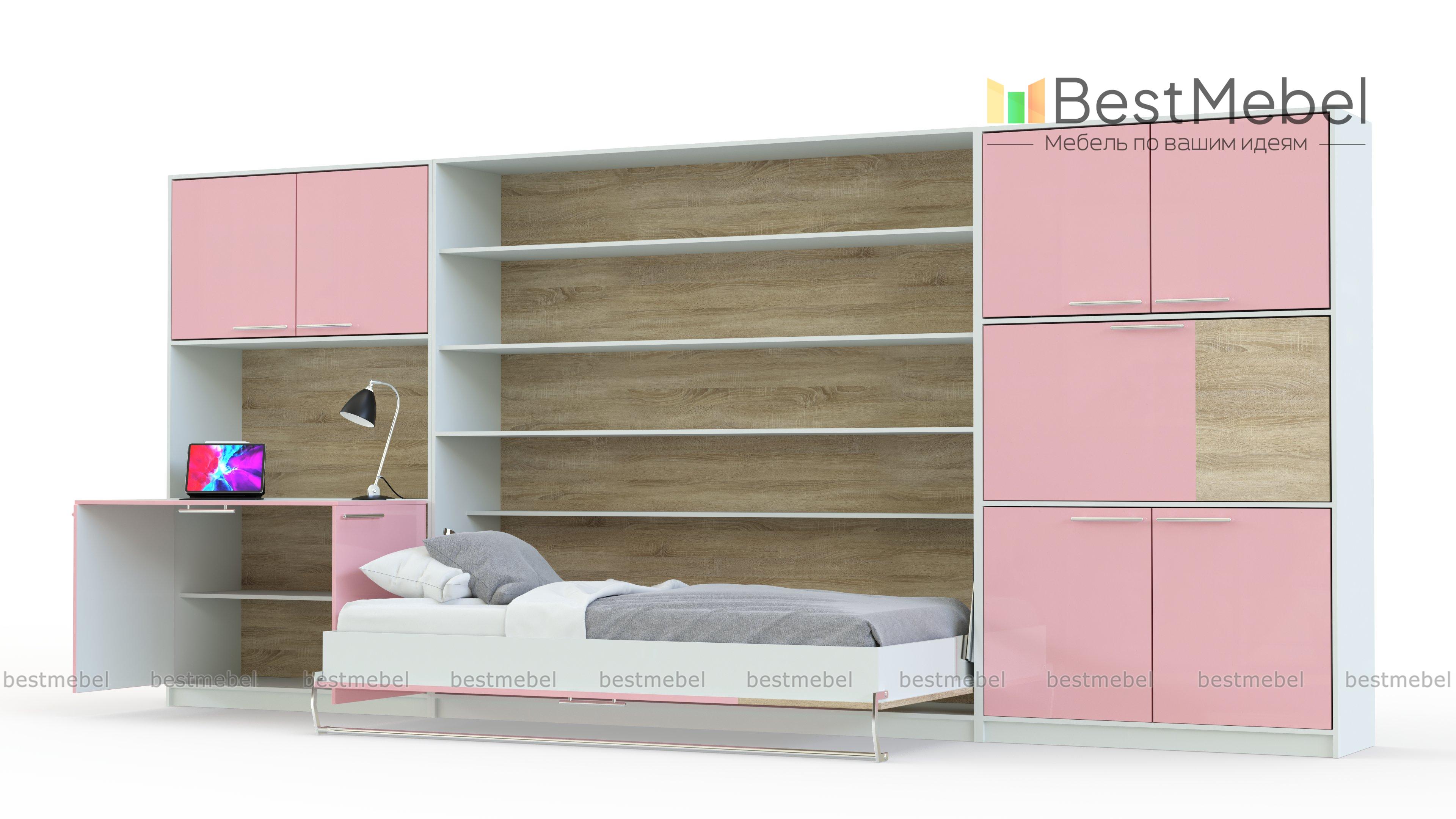Шкаф-кровать трансформер Летто BMS поможет рационально организовать пространство современной детской. Яркая и функциональная, композиция в сложенном виде занимает немного места и представляет собой оригинальную стенку в сочетании белого, зеленого и бежевых тонов. При необходимости распашные отделения превращаются в письменные столы, а откидная горизонтальная секция – в комфортную кровать с открытыми полками на задней панели. Купить шкаф-кровать трансформер Летто BMS по лучшей цене приглашаем к нам в интернет-магазин.