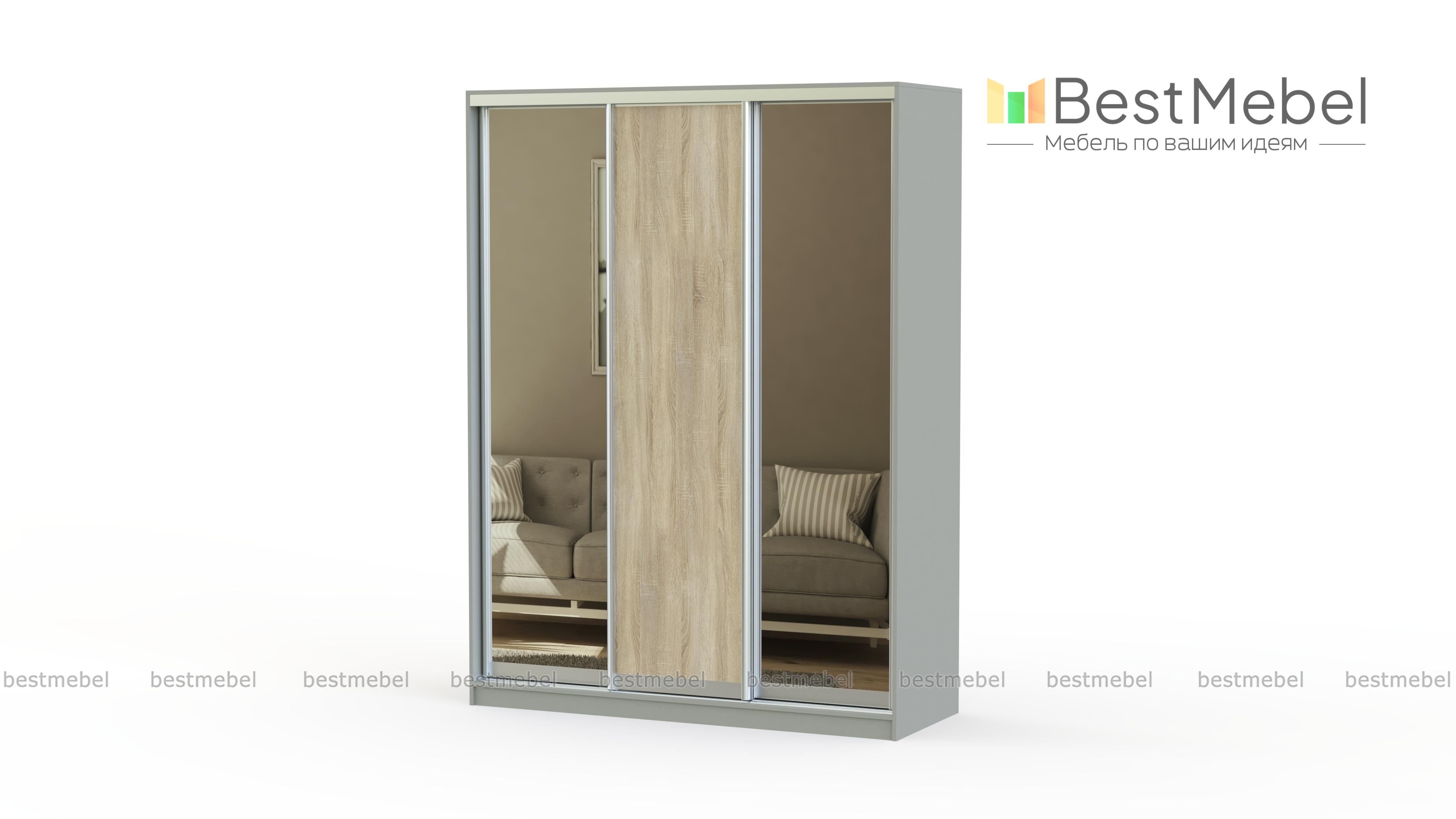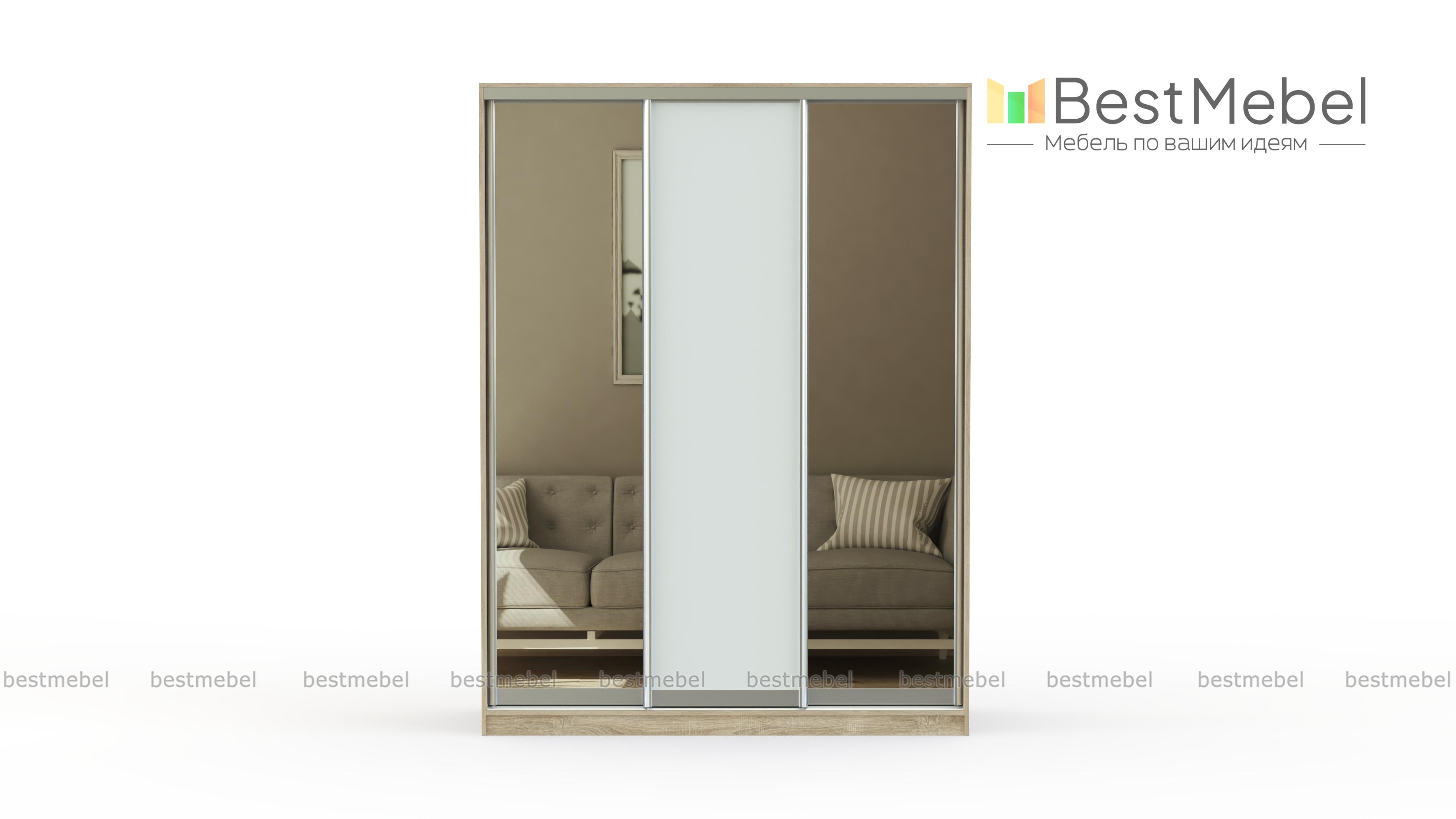 Шкаф-купе Премиум 32 BMS эффектно смотрится на любом фоне благодаря классическому дизайну с зеркальным фасадом. Трехдверная модель, оборудованная рядом полок и штангой, упорядочит хранение гардероба и разместит постельные принадлежности. Две полностью зеркальные боковые створки создают иллюзию открытого пространства, расширяя границы комнаты. Купить шкаф-купе Премиум 32 BMS в прихожую, гостиную или спальню вы сможете на сайте нашего интернет-магазина.