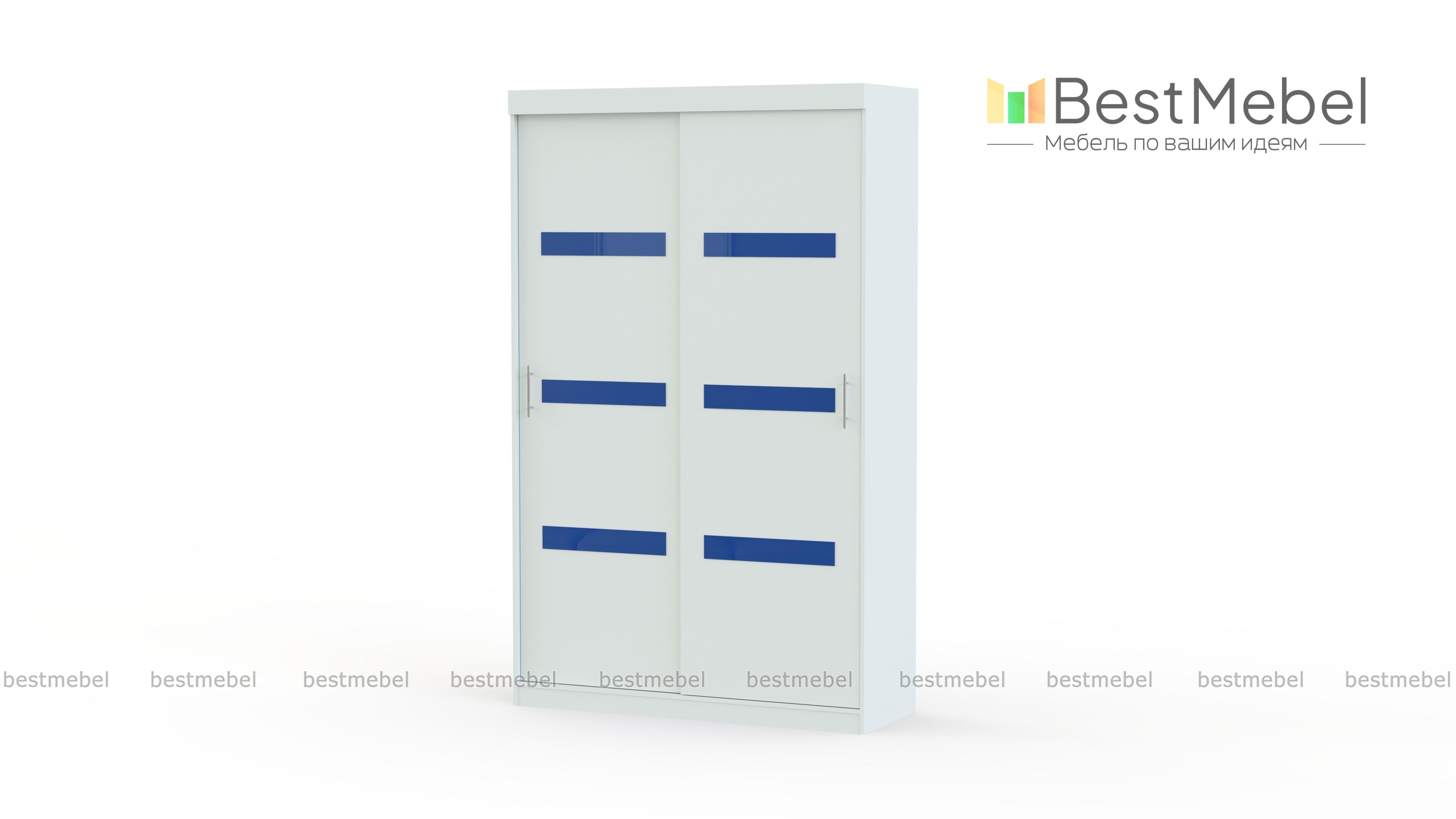 Стильный шкаф-купе Престон с оригинальным дизайном. Благодаря белому цвету конструкция смотрится легко и невесомо. А цветное стекло, которое используют для декора, выделяет основной тон или играет с ним на контрасте. Такой шкаф-купе станет настоящим украшением интерьера.