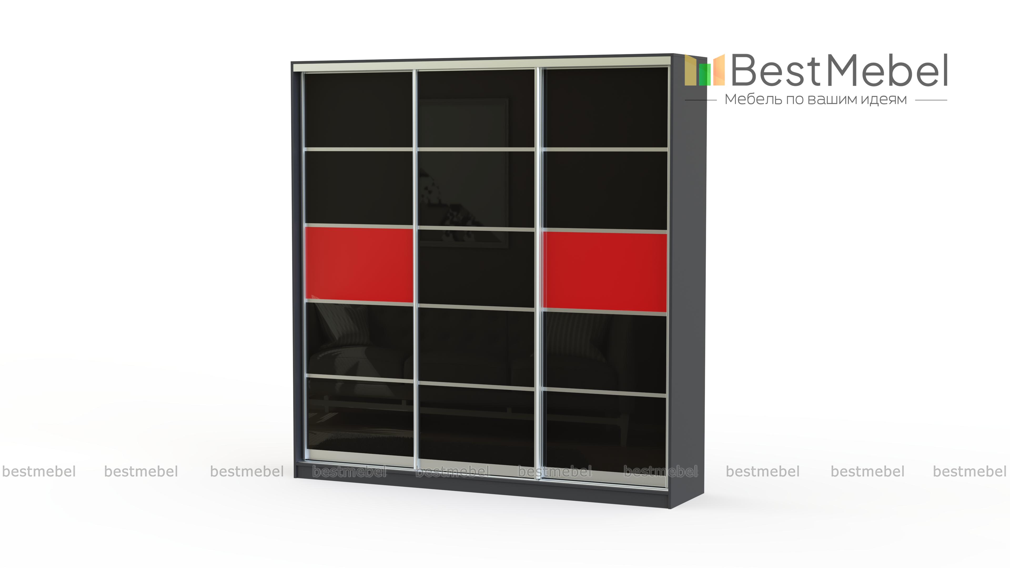 Шкаф-купе Стандарт КР BMS представлен в виде вместительной трехдверной конструкции. Дизайн поделенного на небольшие секции фасада может быть изготовлен в зависимости от пожеланий из цветного стекла или зеркал в любой понравившейся комбинации. Шкаф отлично впишется в любой интерьер и поможет компактно разместить вещи. Для хранения предусмотрена система полок, выдвижных ящиков и штанга для вешалок. Качественная фурнитура и комплектующие бесшумного открывания делают мебель удобной и простой в эксплуатации.