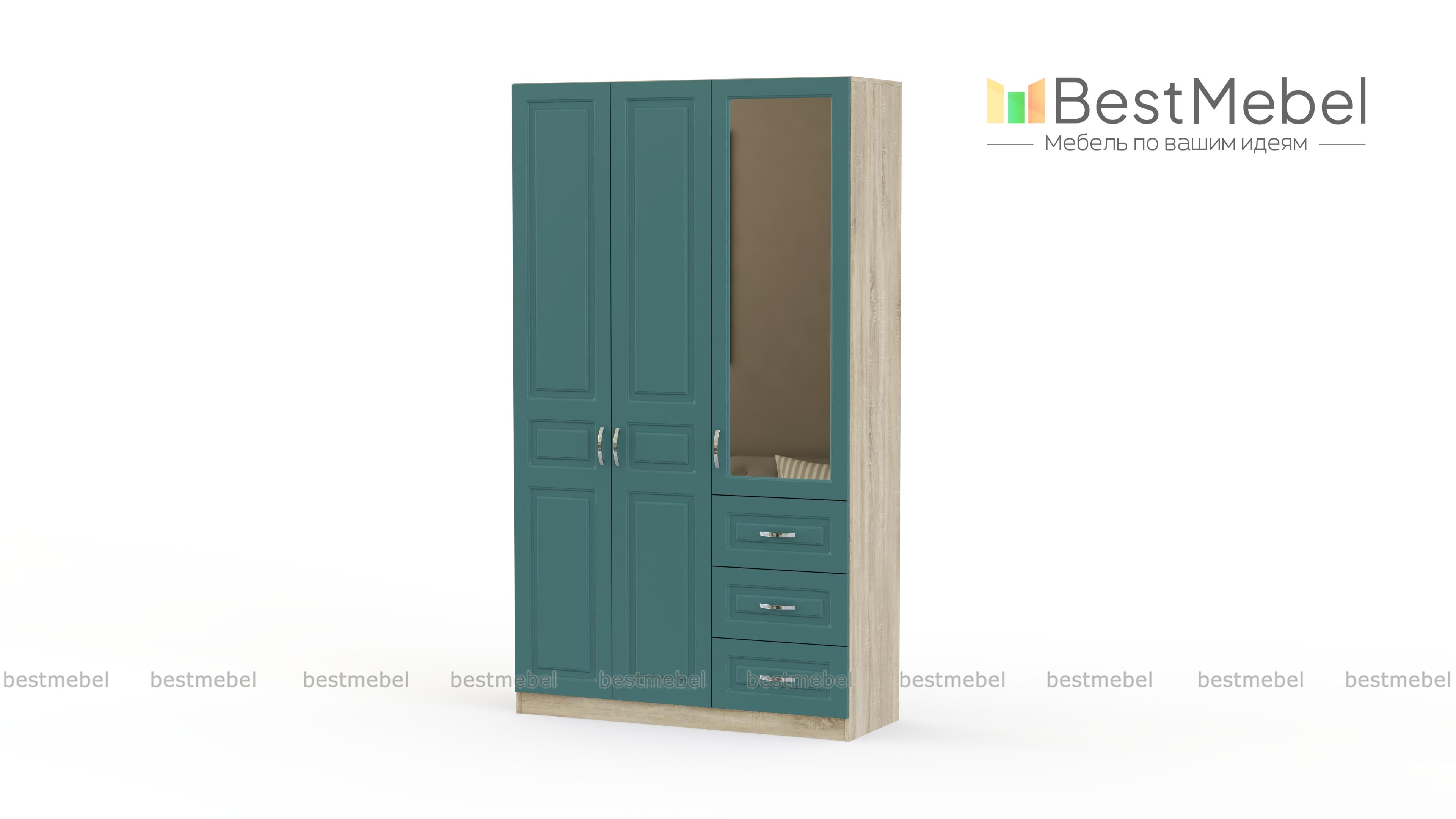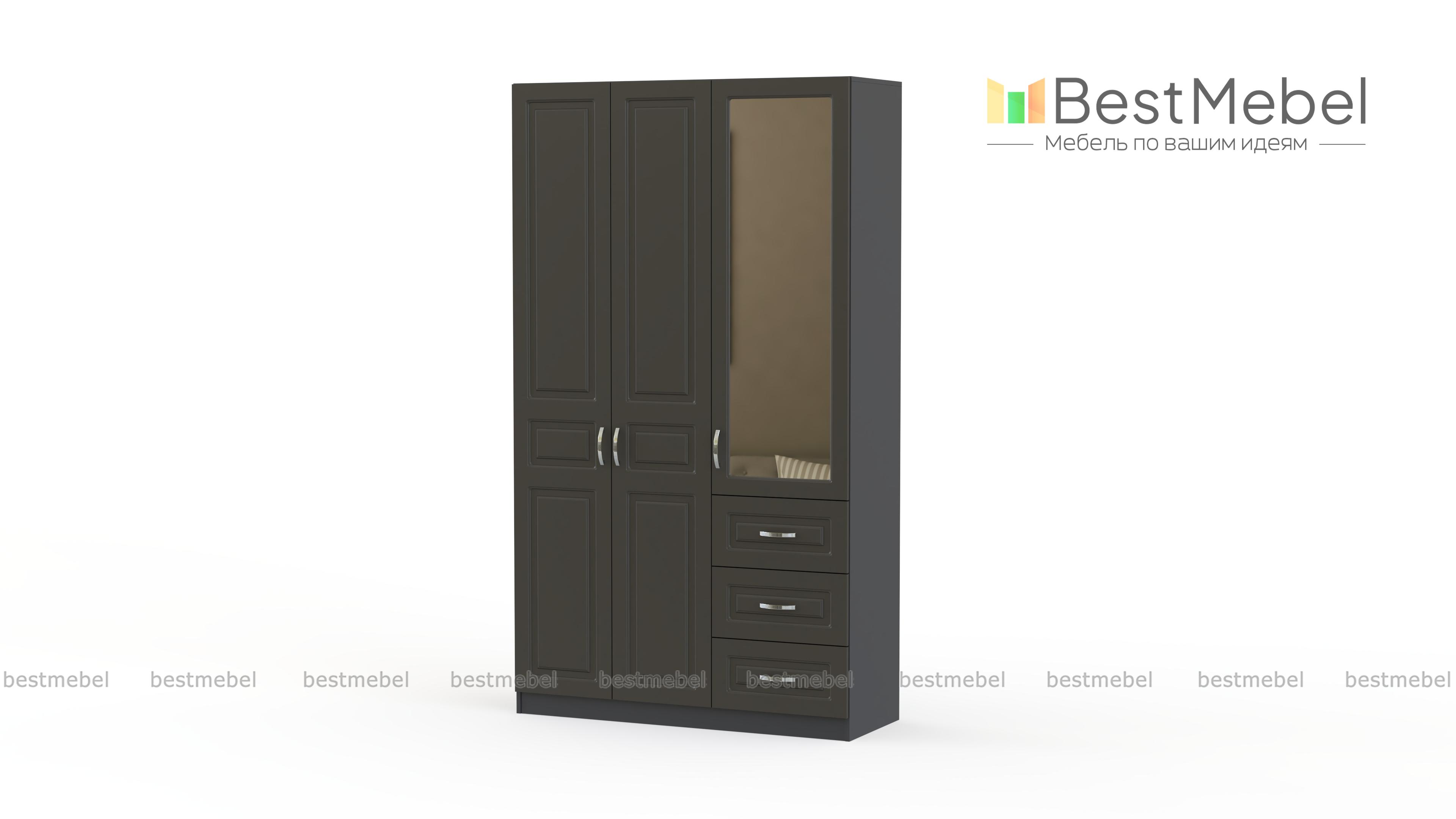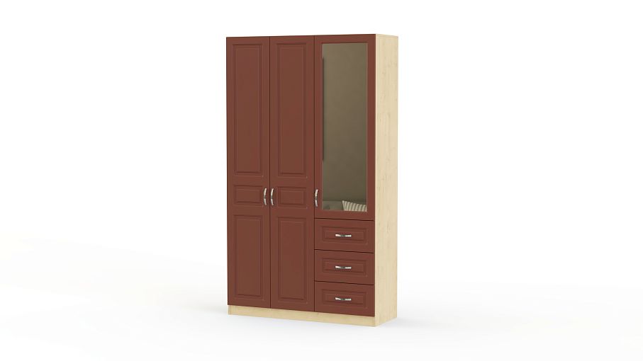 Шкаф 3-х створчатый Визит модуль 07 BMS отличается классическим дизайном и высокой функциональностью. Оригинальная модель в теплых терракотовых тонах станет частью интерьера прихожей, гостиной или спальни. Шкаф оборудован распашным отделением с антресолью и штангой и дополнительной секцией с зеркальным шкафчиком и тремя выдвижными ящиками. Фрезерованные фасады дополнены изящными ручками-скобами. Купить шкаф 3-х створчатый Визит модуль 07 BMS по отличной цене вы сможете в нашем интернет-магазине.