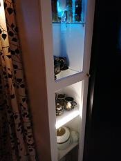 Шкаф смотрится идеально, вписался в уголок как родной. Был нужен шкаф для коллекции с дверями, так как дома кот, который вечно всё сносит. Выглядит маленьким, но всё влезло идеально. Смогла сделать его в цвет и стиль стола (ясень шимо светлый, чёрная кромка и такая ручка). Размеры: 400×2020×400. Всем довольна, изделие пришло без косяков.
