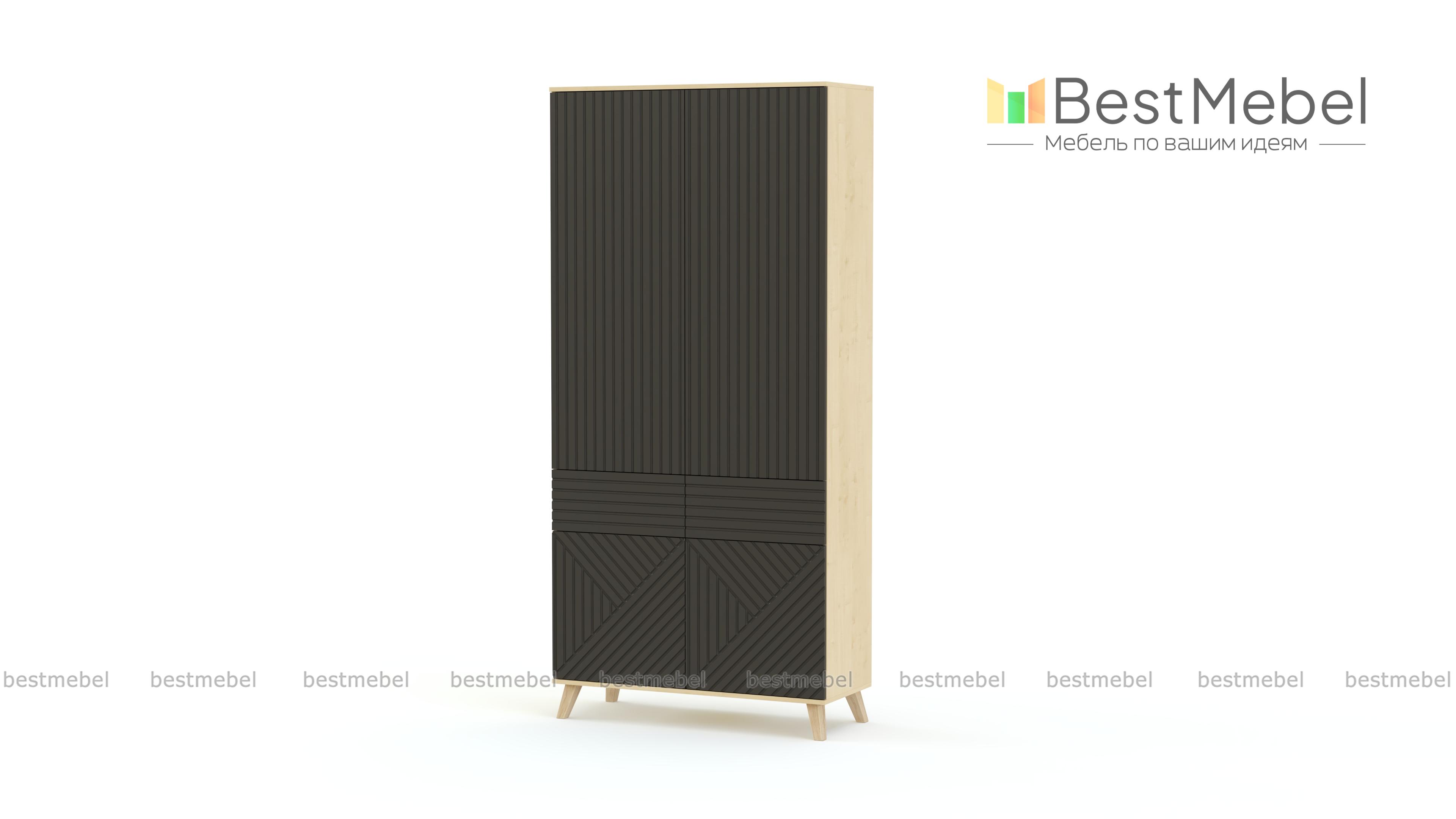 Шкаф Дания 6 BMS – это высокая функциональность и оригинальный дизайн в скандинавском стиле. Компактный и вместительный, шкаф оборудован распашным отделением для одежды на плечиках, двумя выдвижными ящиками и распашными отделениями внизу. Благодаря высоким опорам модель смотрится легкой и выполнена в эффектном сочетании корпуса древесных тонов и матового фасада с фрезерованным рисунком. Купить шкаф Дания 6 BMS по доступной цене вы сможете в нашем интернет-магазине.