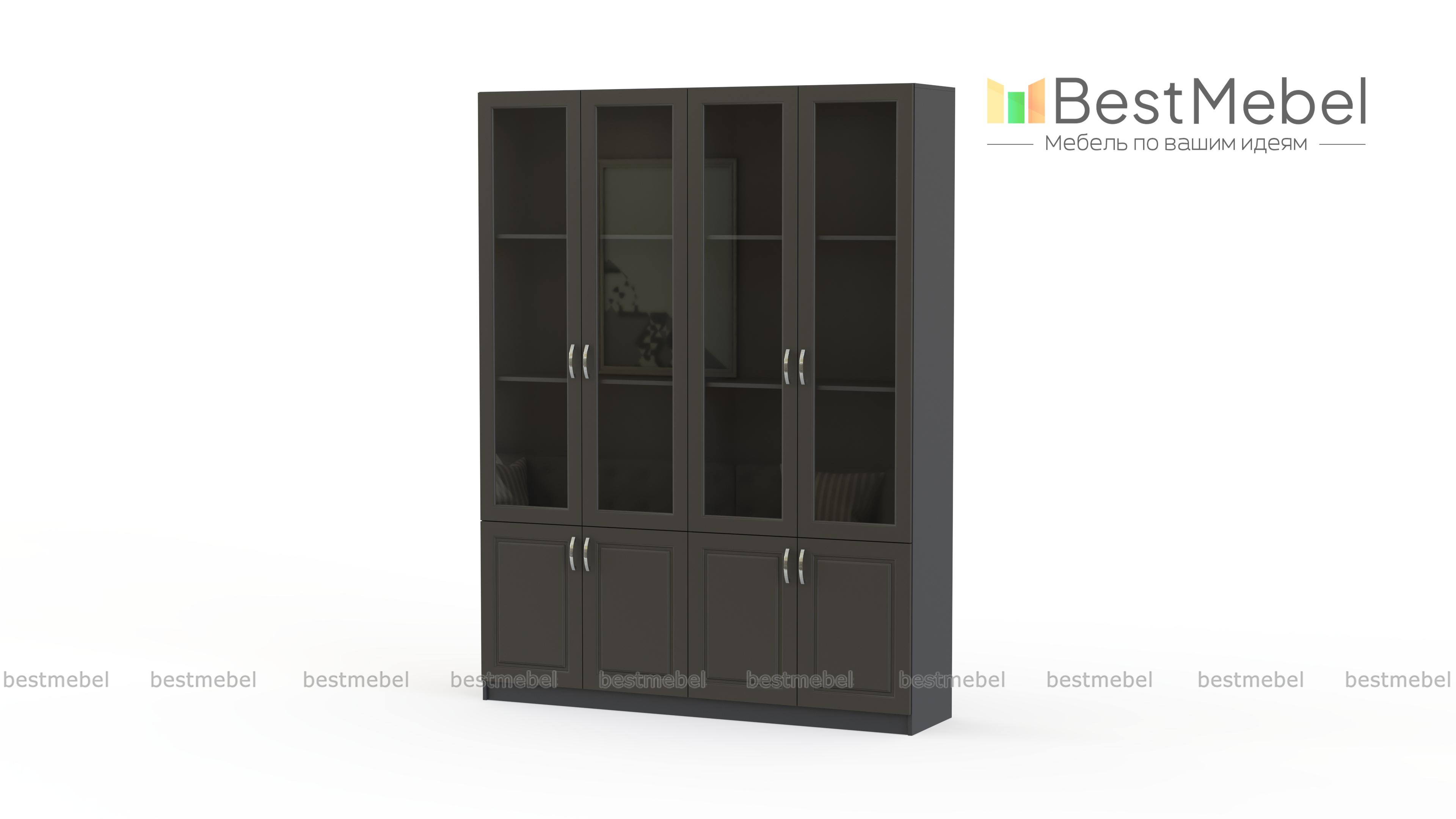Шкаф книжный Марк BMS выполнен в классическом стиле и дополнит интерьер просторного рабочего кабинета, гостиной или солидного офиса. Компактно разместить книги из домашней библиотеки, документы и необходимые рабочие материалы помогут застекленные распашные отделения с полками и глухие секции в основании. Дверцы с рамочными фасадами в благородных теплых тонах оснащены изящными ручками-скобами. Купить шкаф книжный Марк BMS вы сможете по лучшей цене в нашем интернет-магазине.