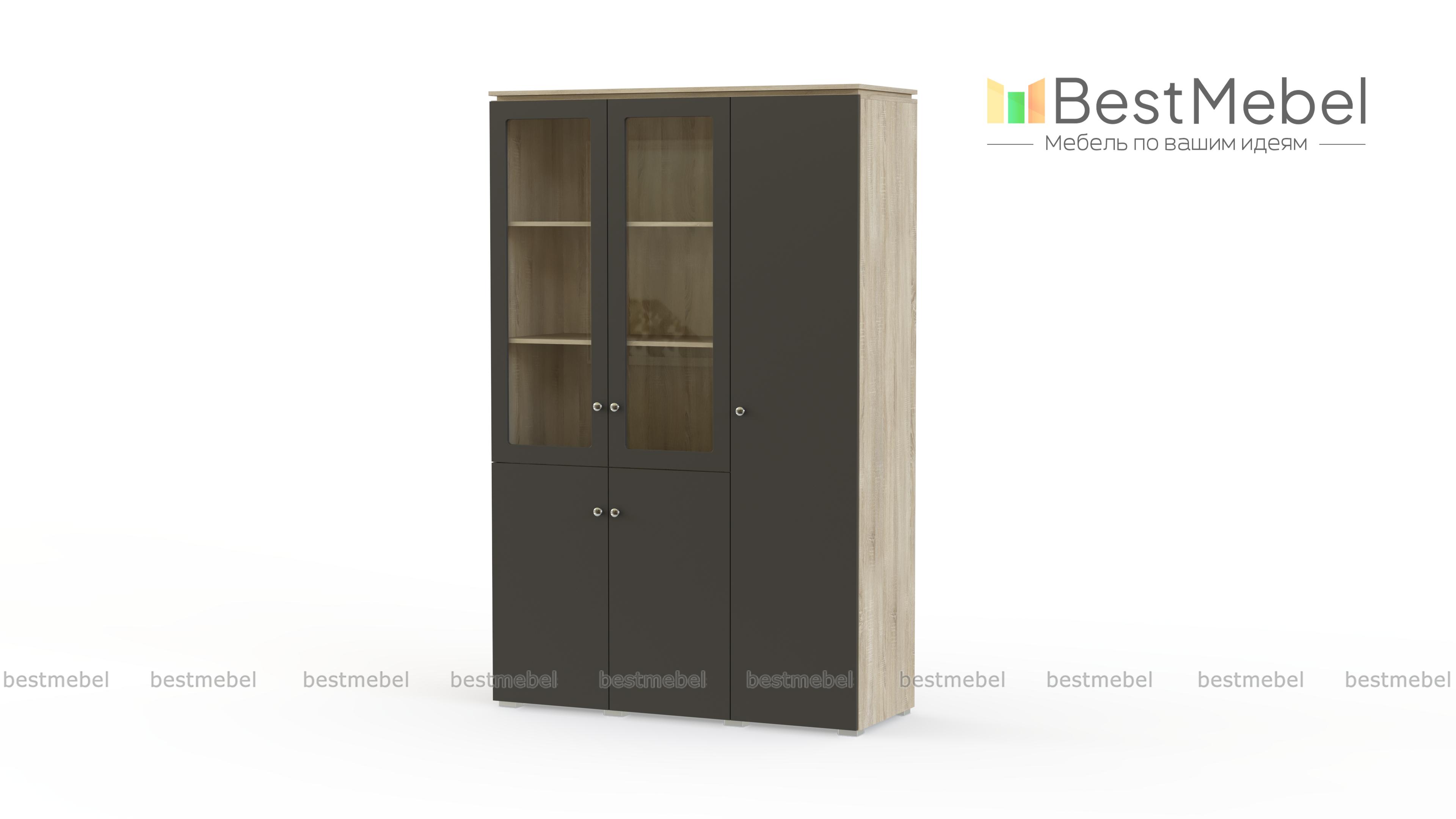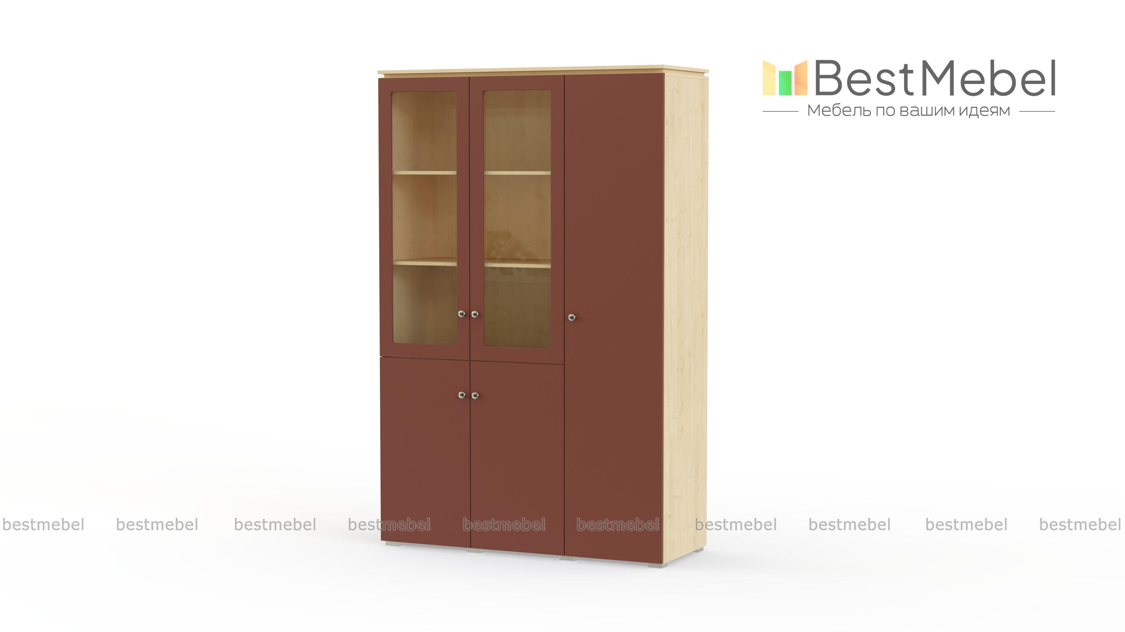 Шкаф комбинированный Марк-35 BMS поможет компактно разместить необходимые рабочие материалы и верхнюю одежду руководителя. Статусная современная модель конструктивно объединила шкаф для документов с глухими и застекленными распашными дверцами и платяное отделение, оборудованное выдвижной штангой и полкой под головные уборы. Выполненный в насыщенных темных тонах, шкаф лаконичен по дизайну и декорирован по верхнему краю топом. Купить шкаф комбинированный Марк-35 BMS для комфортного интерьера приглашаем в наш интернет-магазин.