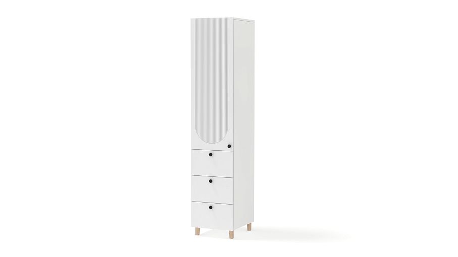 Шкаф-пенал Рене 10 BMS сделает простым и удобным хранение одежды, домашнего текстиля, материалов для работы и творчества. Комбинированная модель оборудована распашной секцией сверху и тремя выдвижными ящиками, расположенными в основании. Лаконичный светлый дизайн оживляют стильные детали: высокие ножки, фрезерованный декор и контрастные круглые ручки. Купить шкаф-пенал Рене 10 BMS с индивидуальным подбором цвета и габаритов приглашаем в наш интернет-магазин.