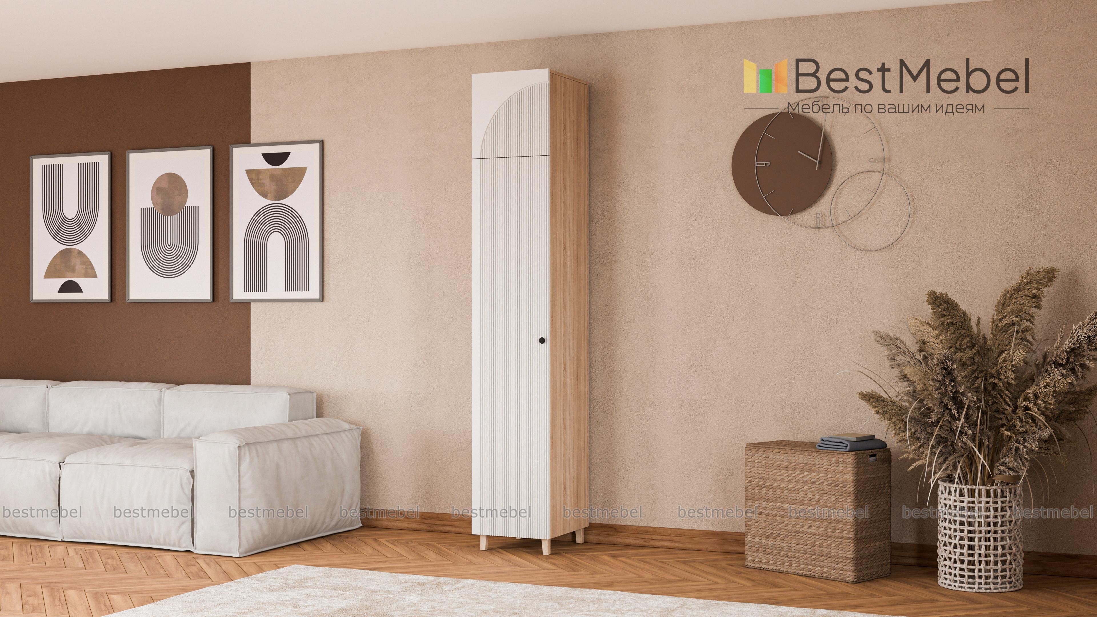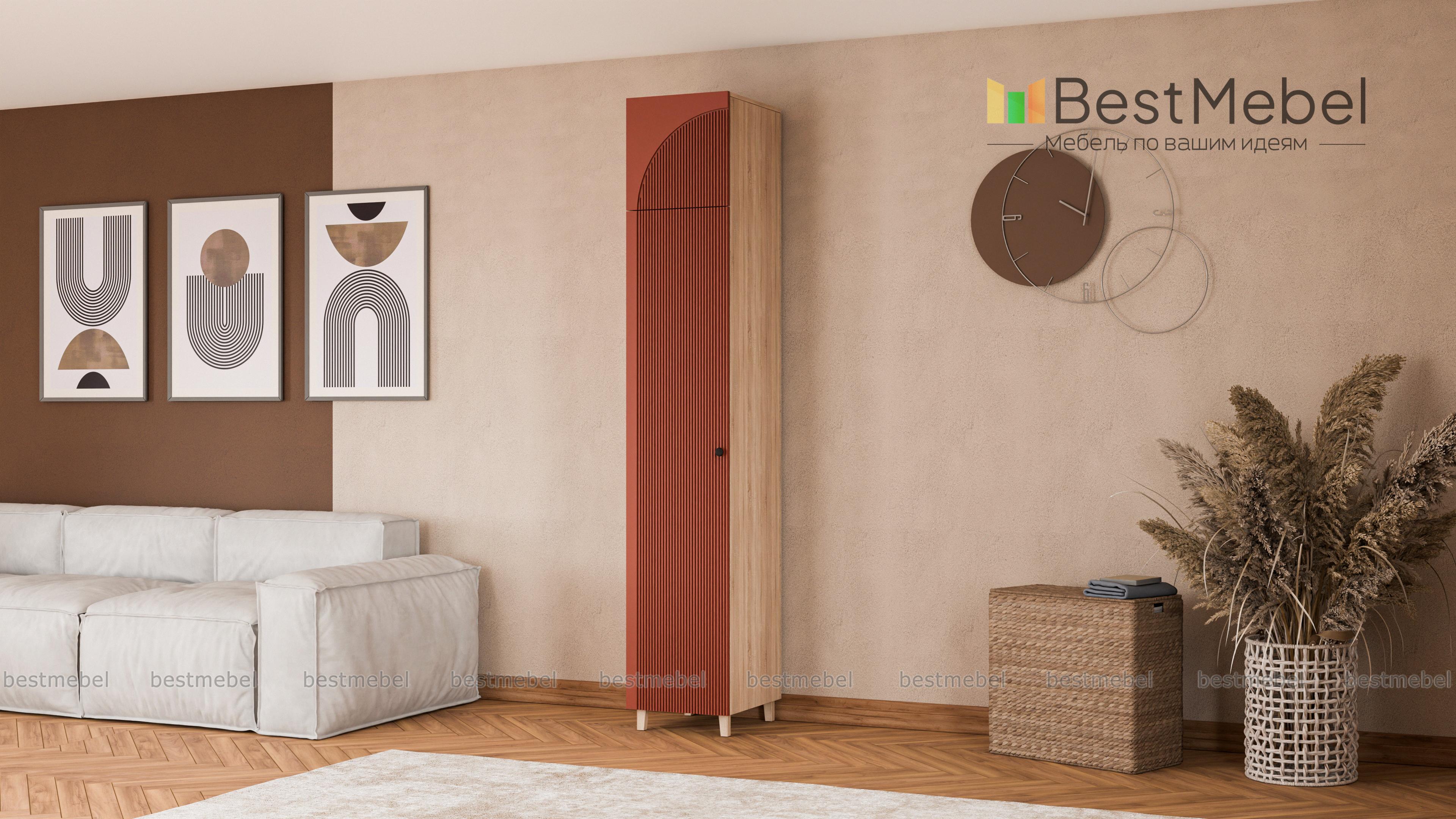 Шкаф-пенал Вивьен 2 BMS оборудован одним распашным отделением, а дополнительное место хранения создает антресоль. Высокая конструкция с деревянными ножками легко вписывается в ограниченное пространство небольшой квартиры. Стильный акцент в лаконичном современном дизайне — рельефная отделка на цветном фасаде из МДФ. Купить шкаф-пенал Вивьен 2 BMS с выбором размеров и гармонирующей с интерьером цветовой гаммы вы сможете на сайте нашего интернет-магазина.