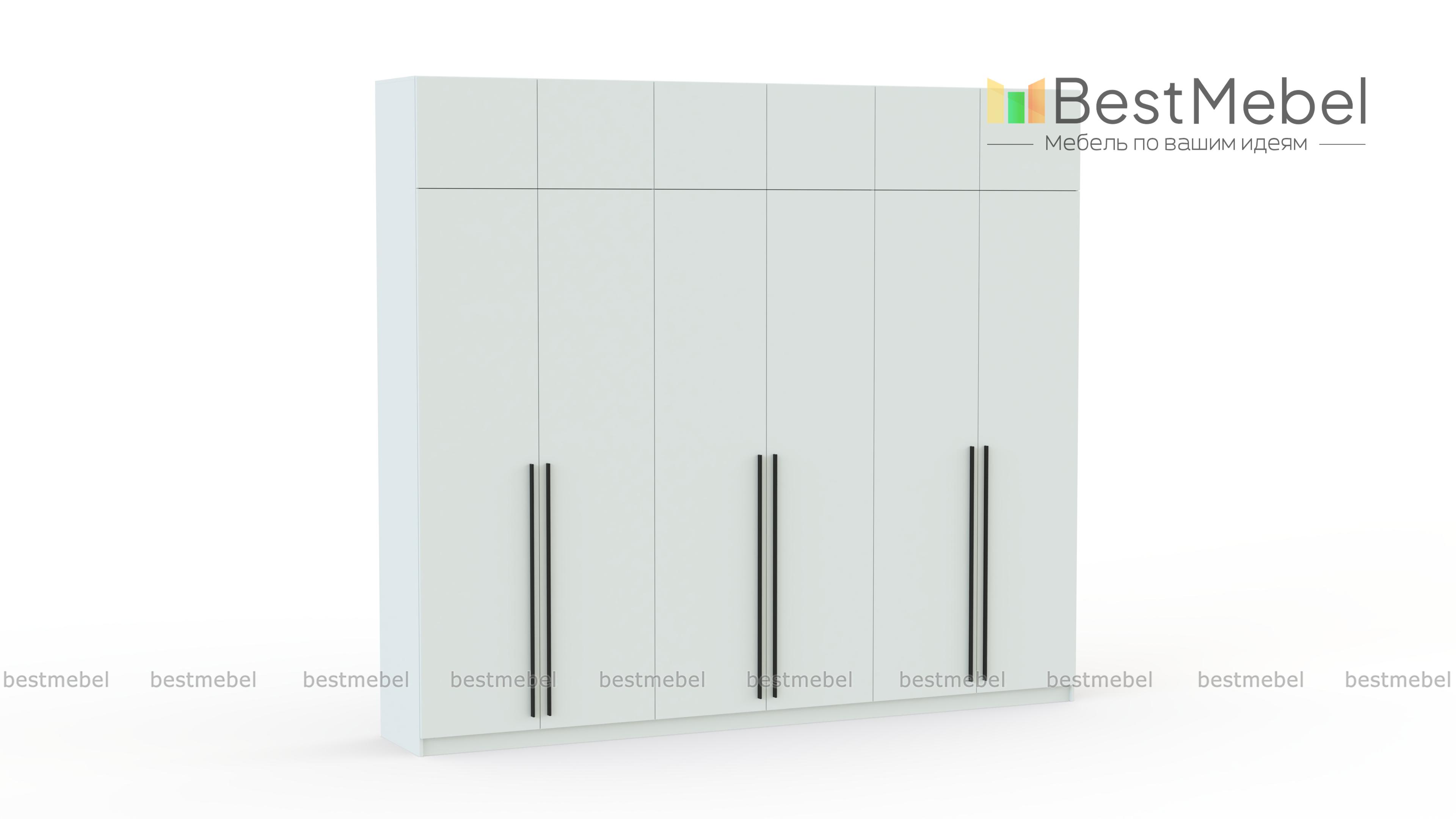 Шкаф распашной Айва 17 BMS легко вместит все необходимое благодаря трем платяным отделениям и антресоли. Шестидверная конструкция отлично вписывается в спальный интерьер и прихожие, где по максимуму задействует пространство для хранения. Элегантный современный дизайн создает сплошной светлый фасад с удлиненными ручками в качестве декора. Купить шкаф распашной Айва 17 BMS приглашаем к нам в интернет-магазин, подобрав нужные размеры, цвет и компоновку.