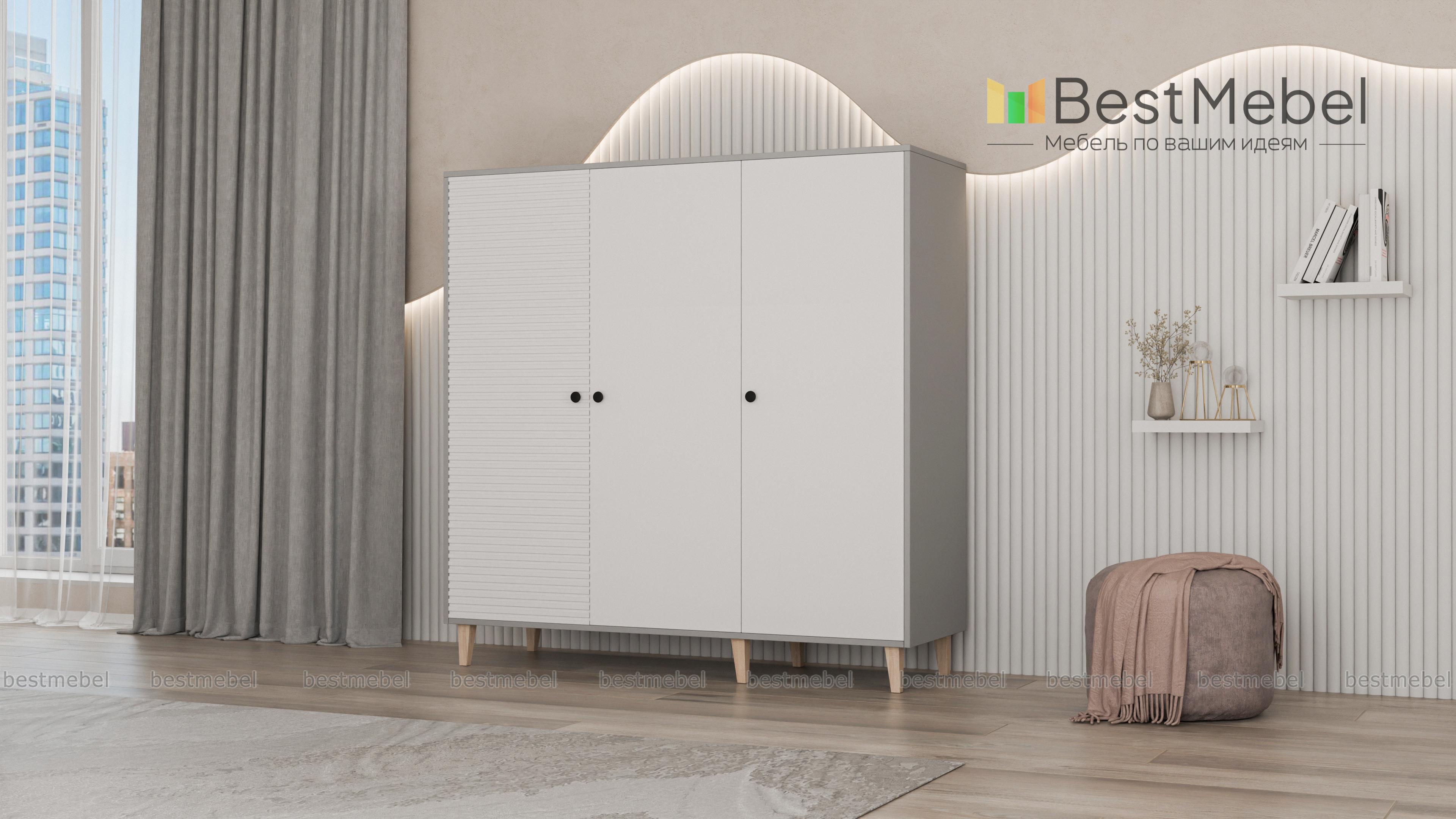 Шкаф распашной Брукс 4 BMS — удобная и стильная мебель для детских, гостиных и спален. В отделке фасада красиво сочетаются гладкие и рифленые поверхности, а корпус выполнен в оттенке светлого дерева. Благодаря высоким ножкам и компактным габаритам трехдверный шкаф не выглядит громоздко и под ним легко убираться, внутри достаточно места для одежды и прочих личных вещей. Купить шкаф распашной Брукс 4 BMS вы сможете на сайте нашего интернет-магазина, подобрав размеры, цвет и компоновку.