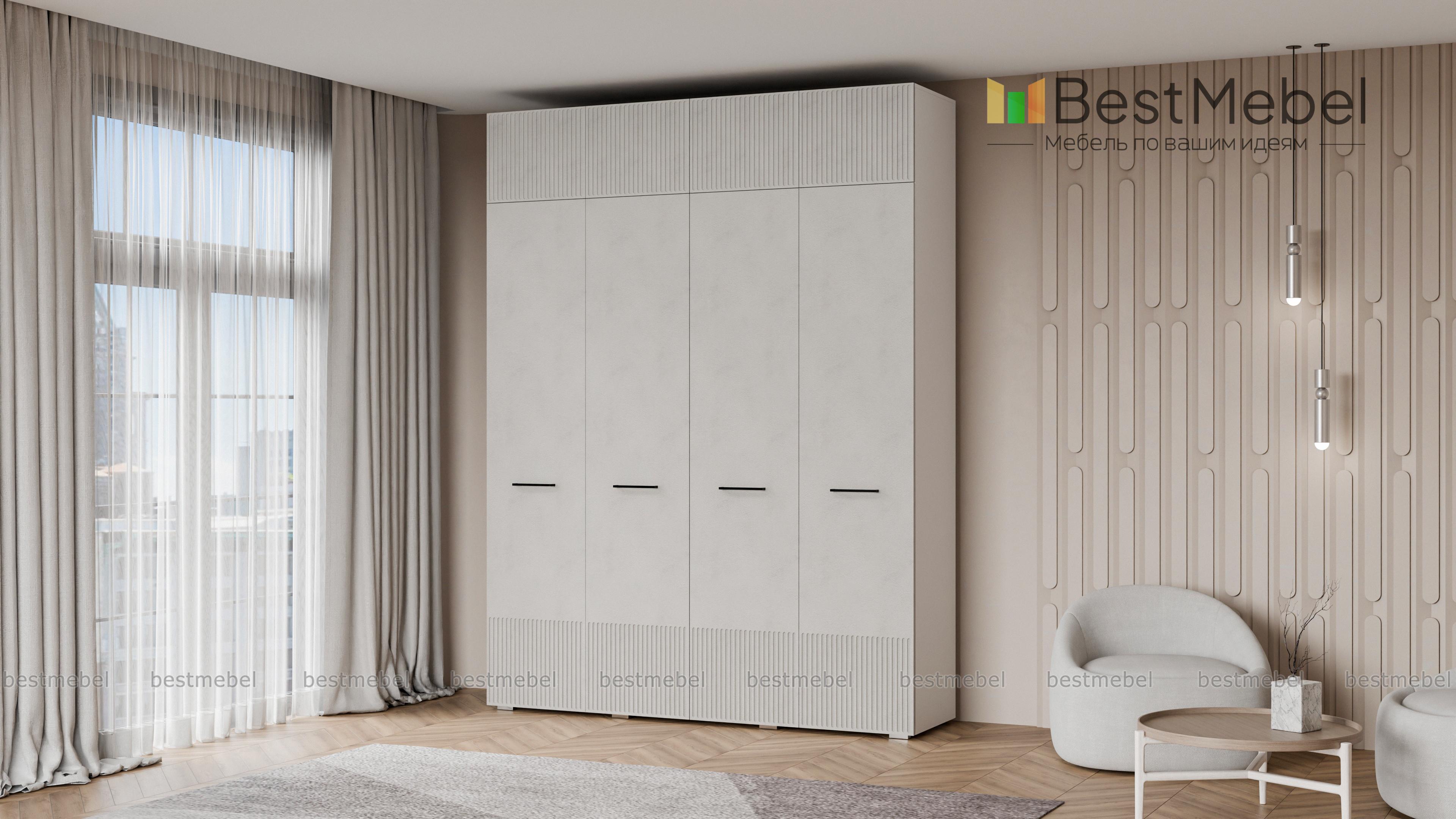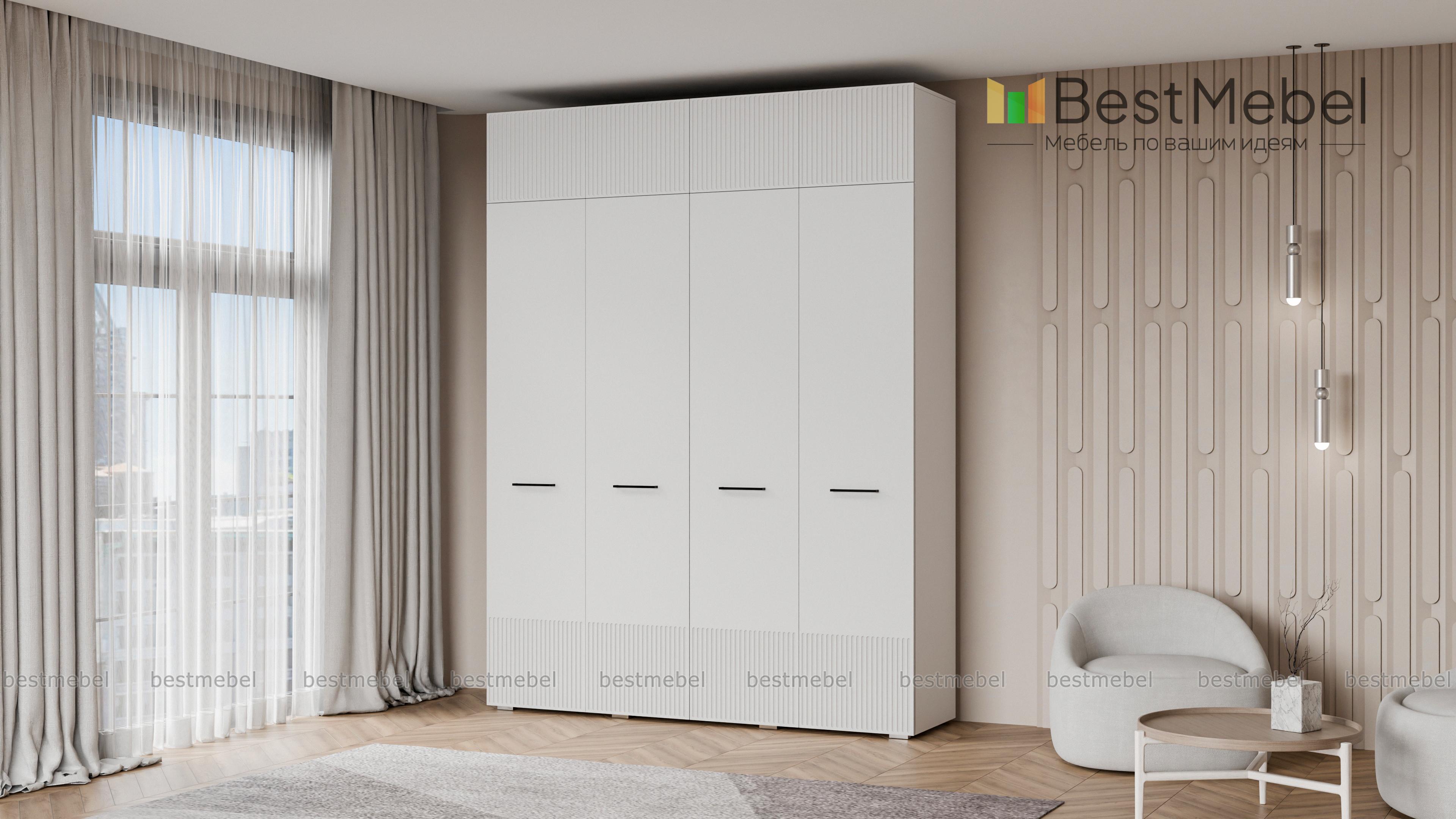 Шкаф распашной Декарт 10 BMS предоставляет еще больше места для хранения ваших вещей благодаря антресоли. В правой части высокого шкафа есть штанга и полка, а в левой — штанга и дополнительный ряд полок для сложенной одежды и текстиля. Гладкий светлый фасад с рифленым декором укомплектован стильными поперечными ручками контрастного цвета. Купить шкаф распашной Декарт 10 BMS в размере и оттенках, которые вам подходят, можно по доступной цене на сайте нашего интернет-магазина.