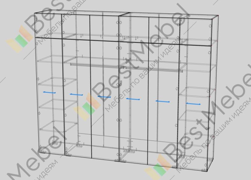 Шкаф распашной Декарт 12 BMS — это вместительный современный гардероб с антресолью. В двух секциях с перекладинами и двух бельевых отделениях можно хранить одежду на вешалках и сложенные вещи, а то, что вы редко используете, убрать на верхние полки. Светлый, рифленый по низу и верху фасад шкафа оснащен стильными поперечными ручками. Купить шкаф распашной Декарт 12 BMS вы сможете на сайте нашего интернет-магазина с изготовлением по индивидуальным размерам.