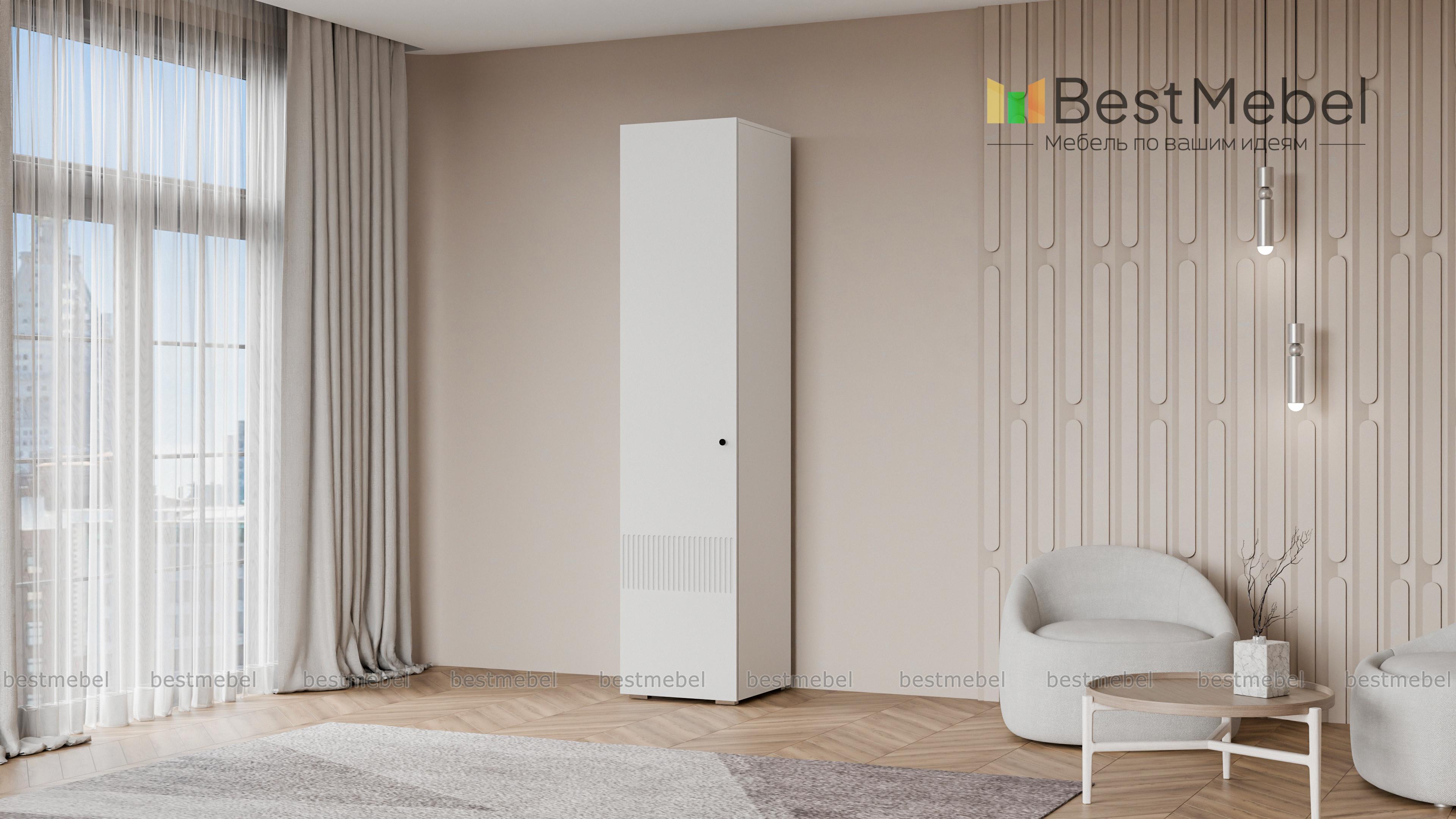 Шкаф распашной Джосс 1 BMS представляет собой компактный пенал для одежды. Внутри единственного отделения находятся штанга для вещей на вешалках и верхняя полка под аксессуары или коробки с мелочами. Фасад шкафа с фрезеровкой по низу выглядит ярко и современно, создавая стильный интерьер в вашей прихожей, спальне или гостиной. Купить шкаф распашной Джосс 1 BMS в подходящем размере и любых оттенках из каталога приглашаем недорого в наш интернет-магазин.
