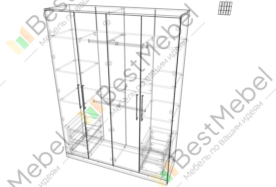 | Компоновка шкафа | Белье - Платье - Платье (станд. 4) (можно изменить) |