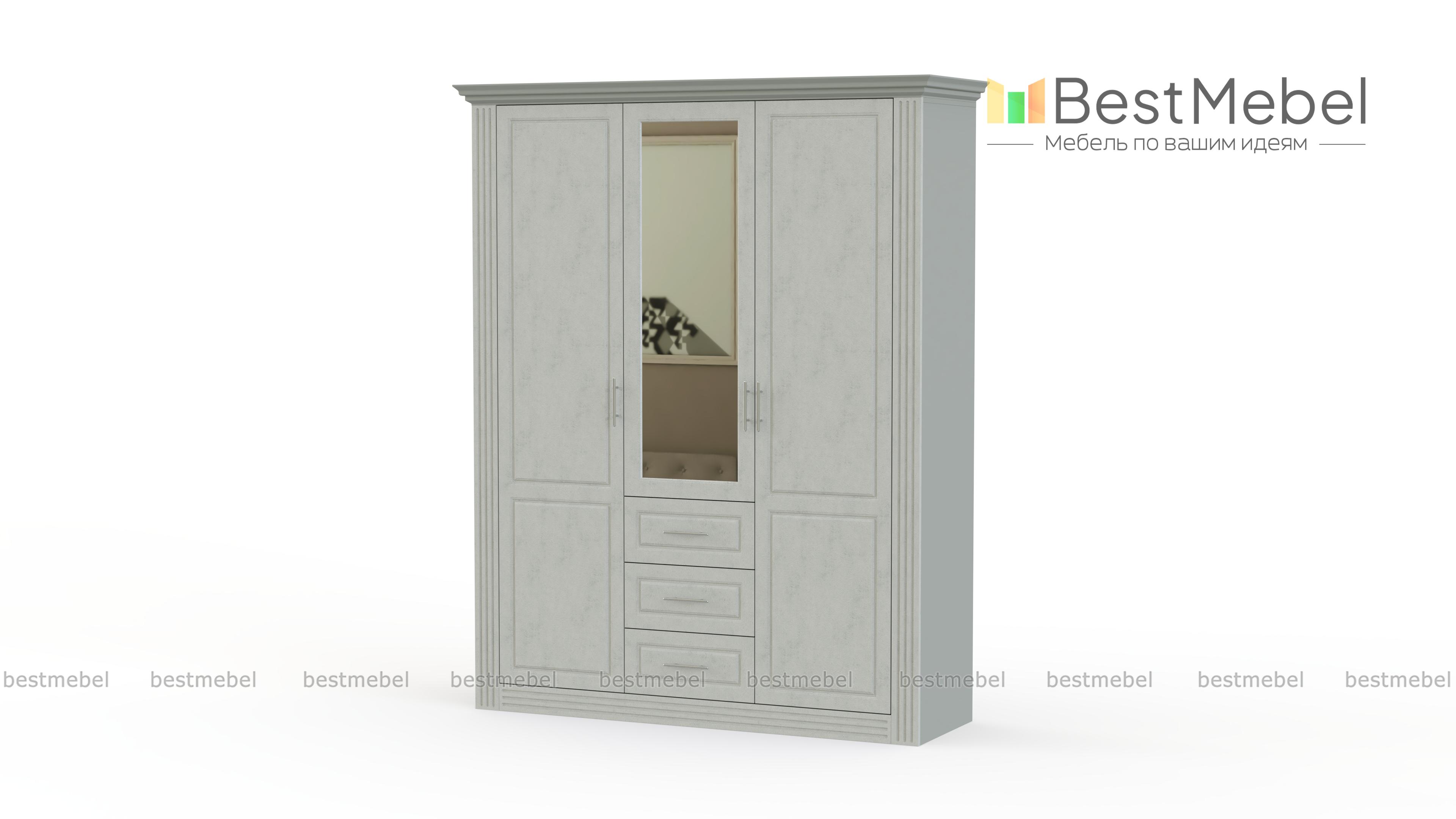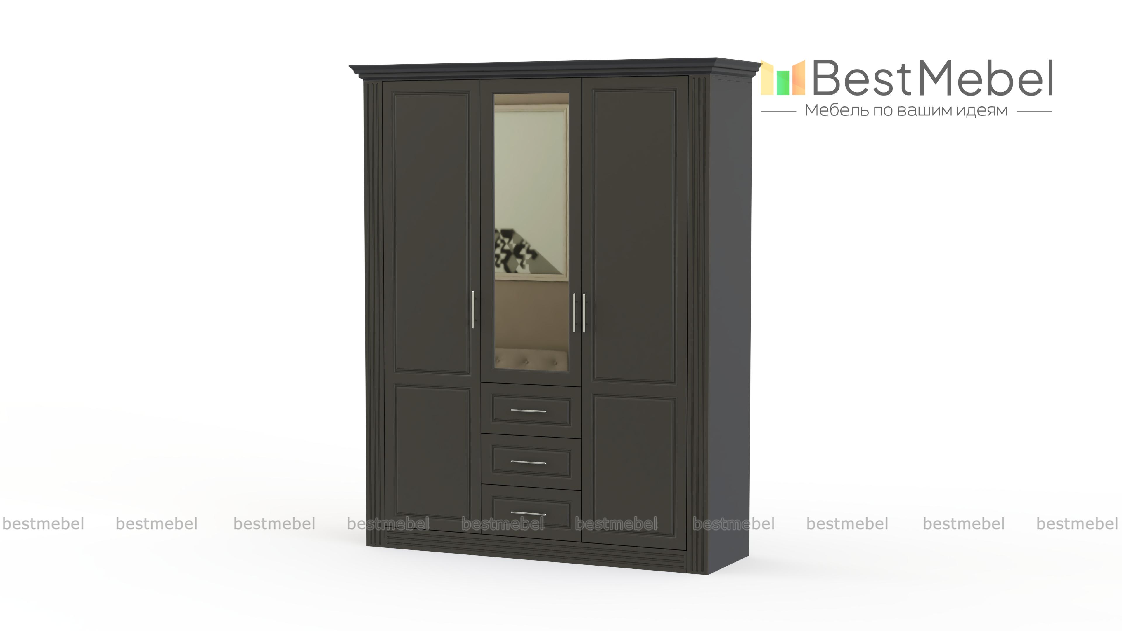 Шкаф распашной Классика 4 BMS гармонично впишется в интерьер классических спален благодаря возможности подбора цветового решения и традиционному декору рамочных фасадов. Комбинированная модель с тремя распашными дверцами оборудована бельевыми полками, платяным отделением со штангой и тремя выдвижными ящиками для мелочей. Практичное дополнение – большое зеркало в центральной части. Купить шкаф распашной Классика 4 BMS, незаменимый в домашней меблировке, приглашаем недорого в наш интернет-магазин.