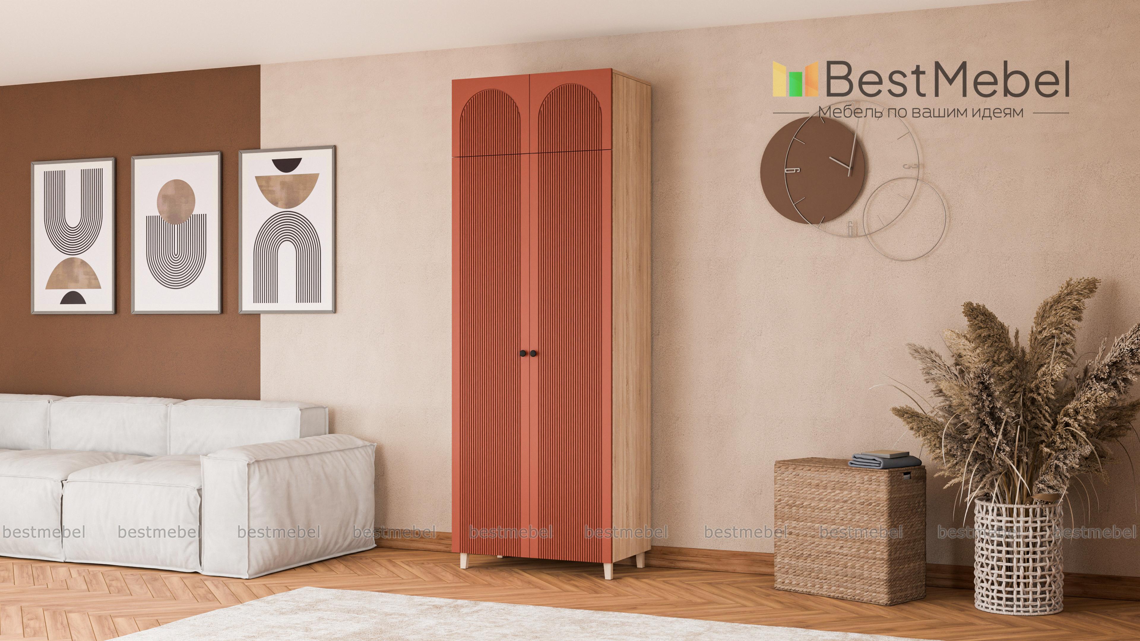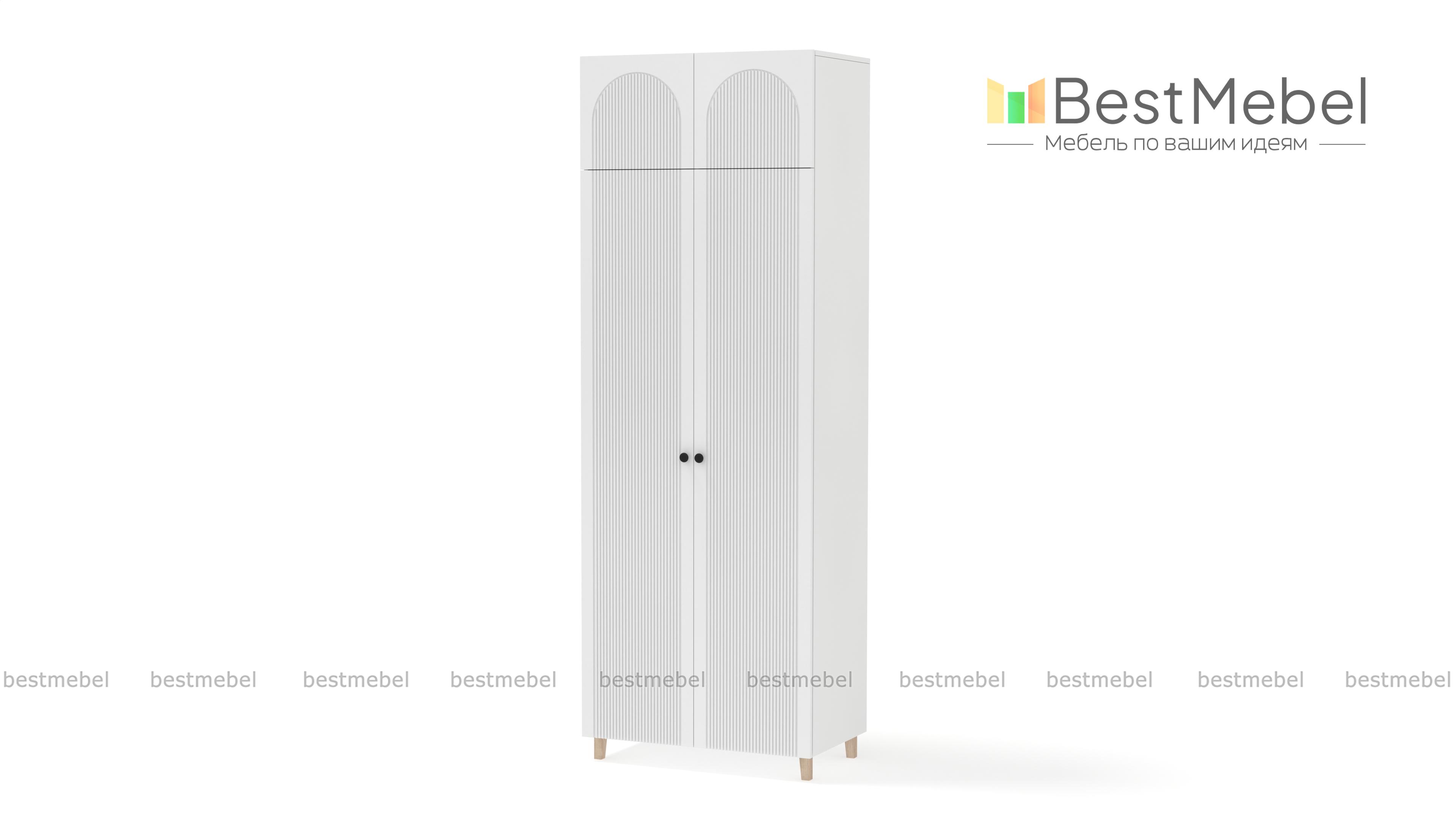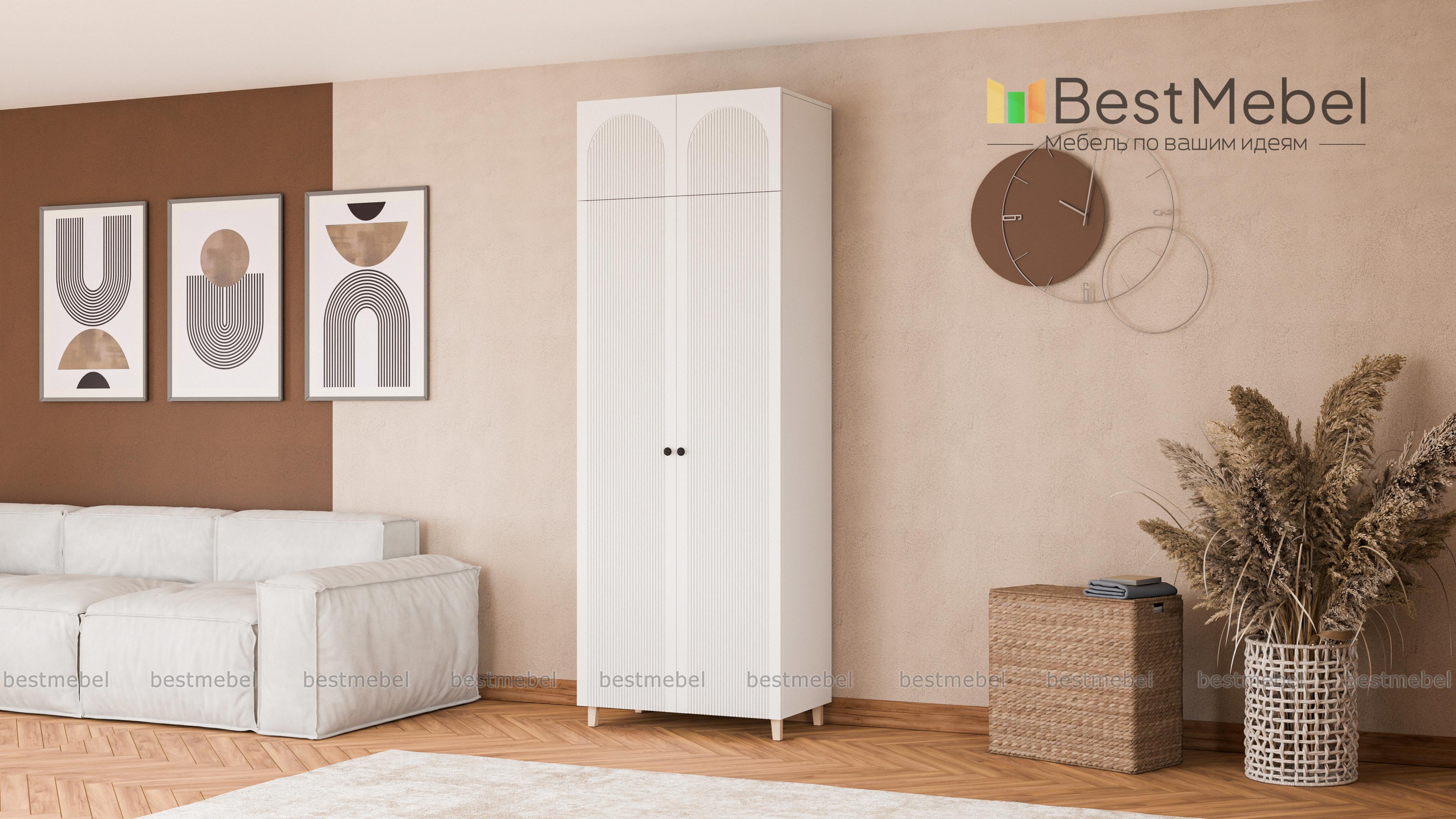 Шкаф распашной Рене 19 BMS — стильный и при этом достаточно универсальный со светлым фасадом и древесным корпусом. Наличие антресоли позволяет разместить больше вещей на ограниченном пространстве, а высокие ножки зрительно облегчают конструкцию. Вертикальная фрезеровка и арки на дверцах превращают гардероб в элемент дизайна современной спальни, прихожей или детской комнаты. Купить шкаф распашной Рене 19 BMS вы сможете в нашем интернет-магазине, по желанию изменив цвет и размеры.