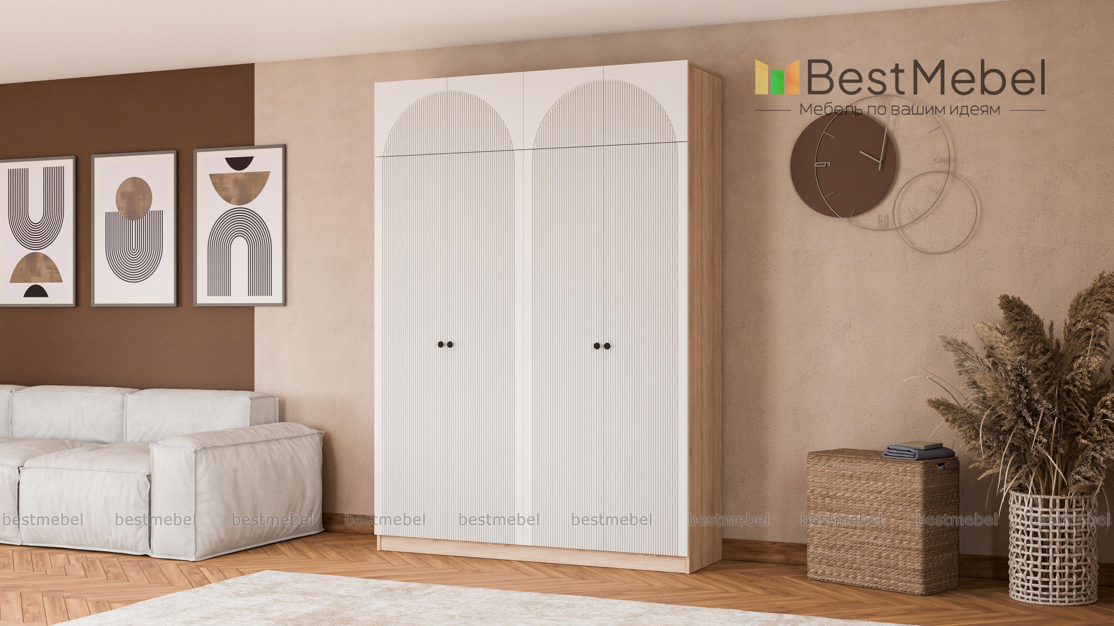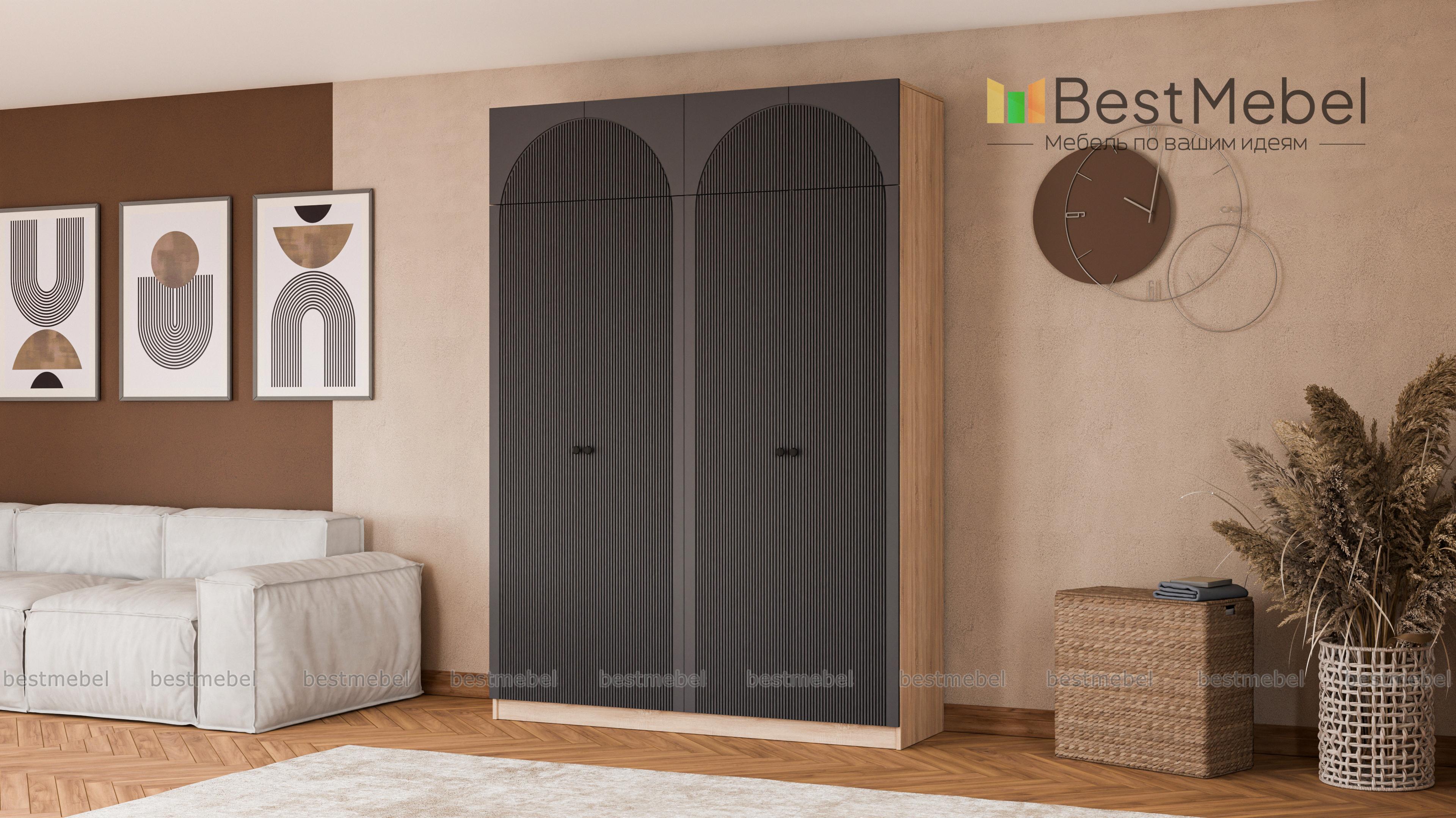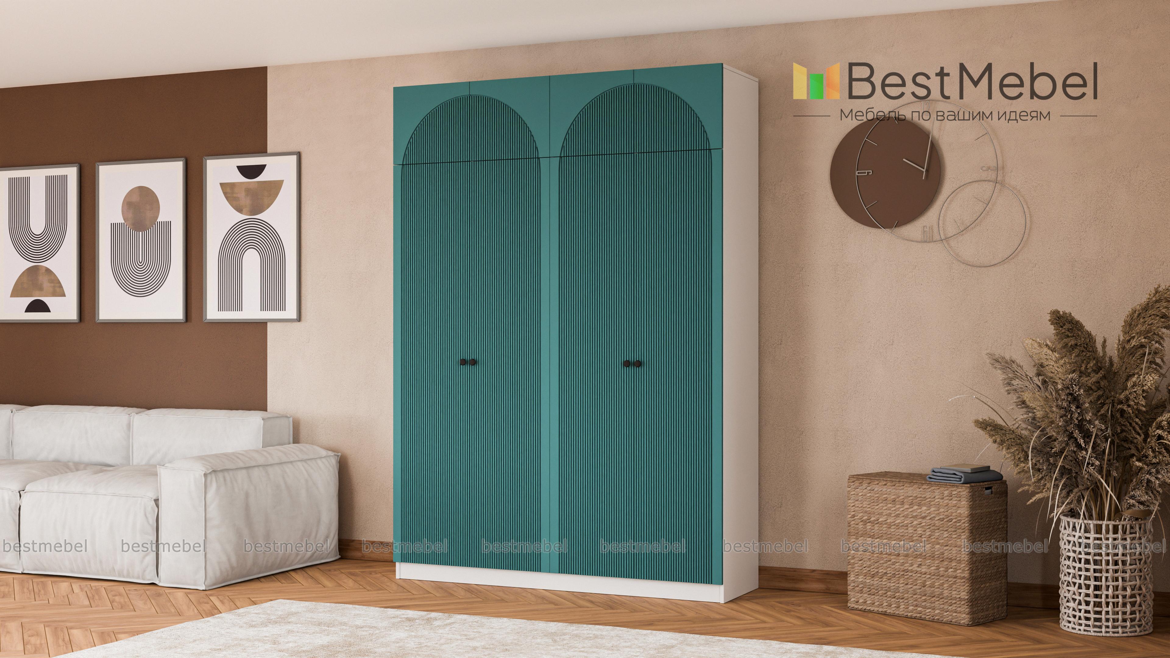 Шкаф распашной Вивьен 10 BMS — более вместительный и функциональный благодаря антресоли. Четырехдверная модель подходит для хранения как повседневного гардероба, так и объемных постельных принадлежностей. Древесного оттенка корпус и цветной фактурный фасад из МДФ создают эффектный современный дизайн, который гармонично впишется в любую комнату дома. Купить шкаф распашной Вивьен 10 BMS с учетом необходимых размеров вы сможете недорого на сайте нашего интернет-магазина.