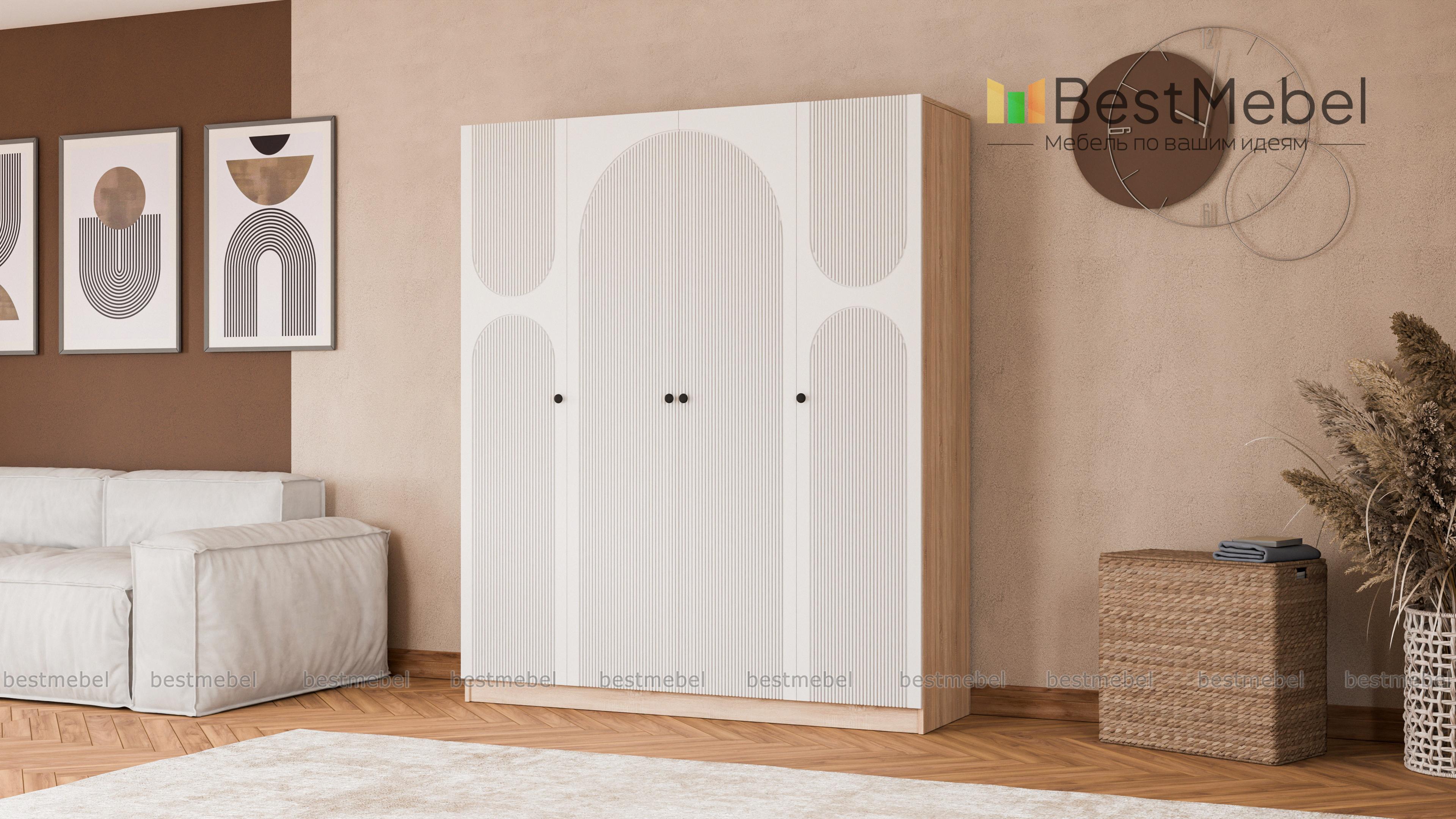 Шкаф распашной Вивьен 12 BMS изготовлен в современном стиле из долговечных, качественных материалов. Прочный корпус из ЛДСП скомбинирован с украшенным фрезерованным рисунком фасадом, дверцы оснащены круглыми ручками. Шкаф с четырьмя дверцами для спальни, детской или прихожей позволяет разместить большое количество вещей — одежды, обуви, постельного белья. Купить шкаф распашной Вивьен 12 BMS в оттенках нашего каталога и удобном размере вы всегда сможете на сайте интернет-магазина.