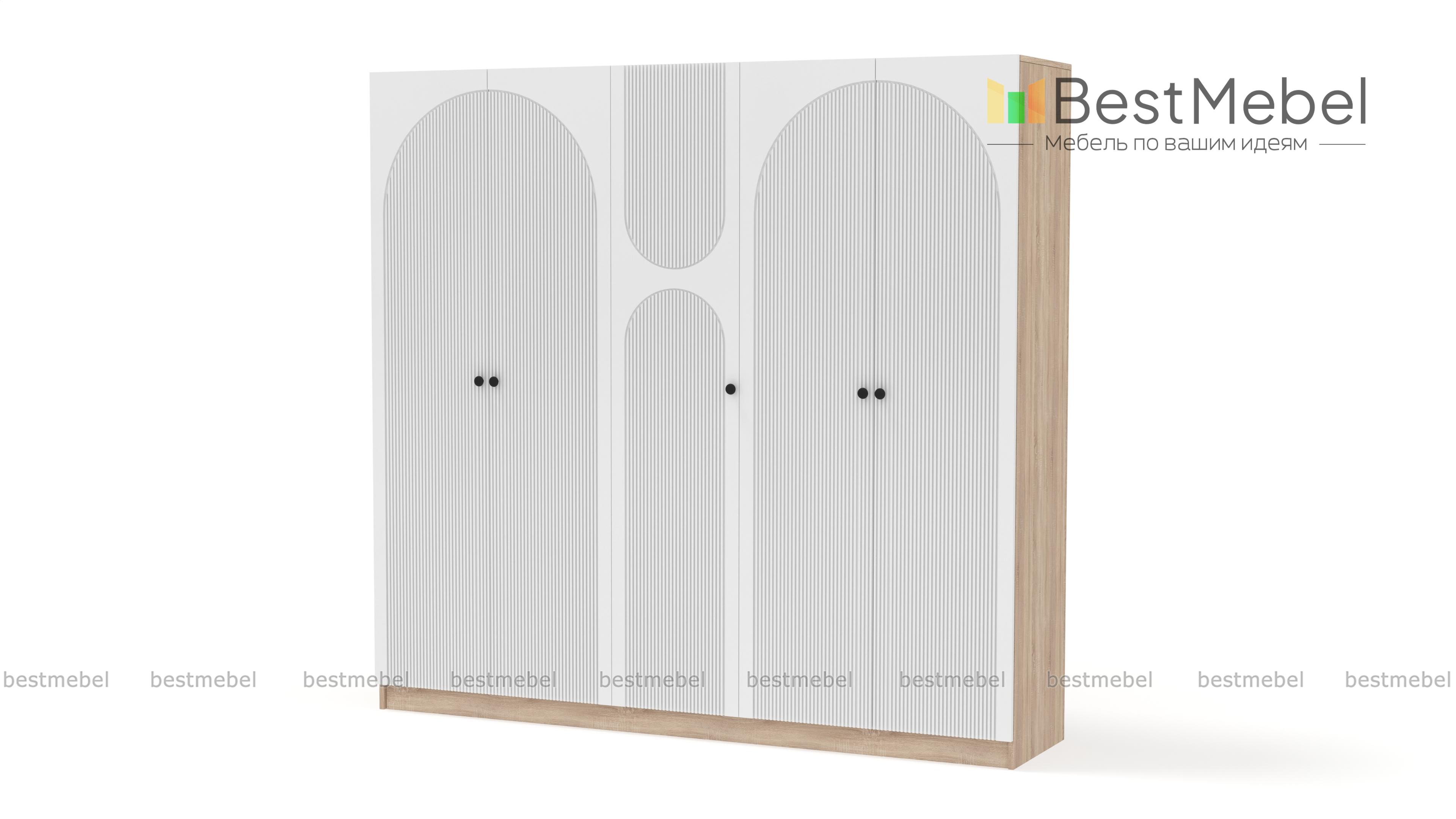 Шкаф распашной Вивьен 14 BMS подойдет тем, кому требуется много места для хранения. Два двухдверных платяных отделения дополнены однодверной секцией в центре. Шкаф изготовлен из качественной ламинированной плиты и МДФ и отличается современным дизайном, гармонично сочетая природные оттенки и оригинальную рельефную отделку фасада. Купить шкаф распашной Вивьен 14 BMS вы всегда сможете в нашем интернет-магазине с выбором размеров, цвета и наполнения.
