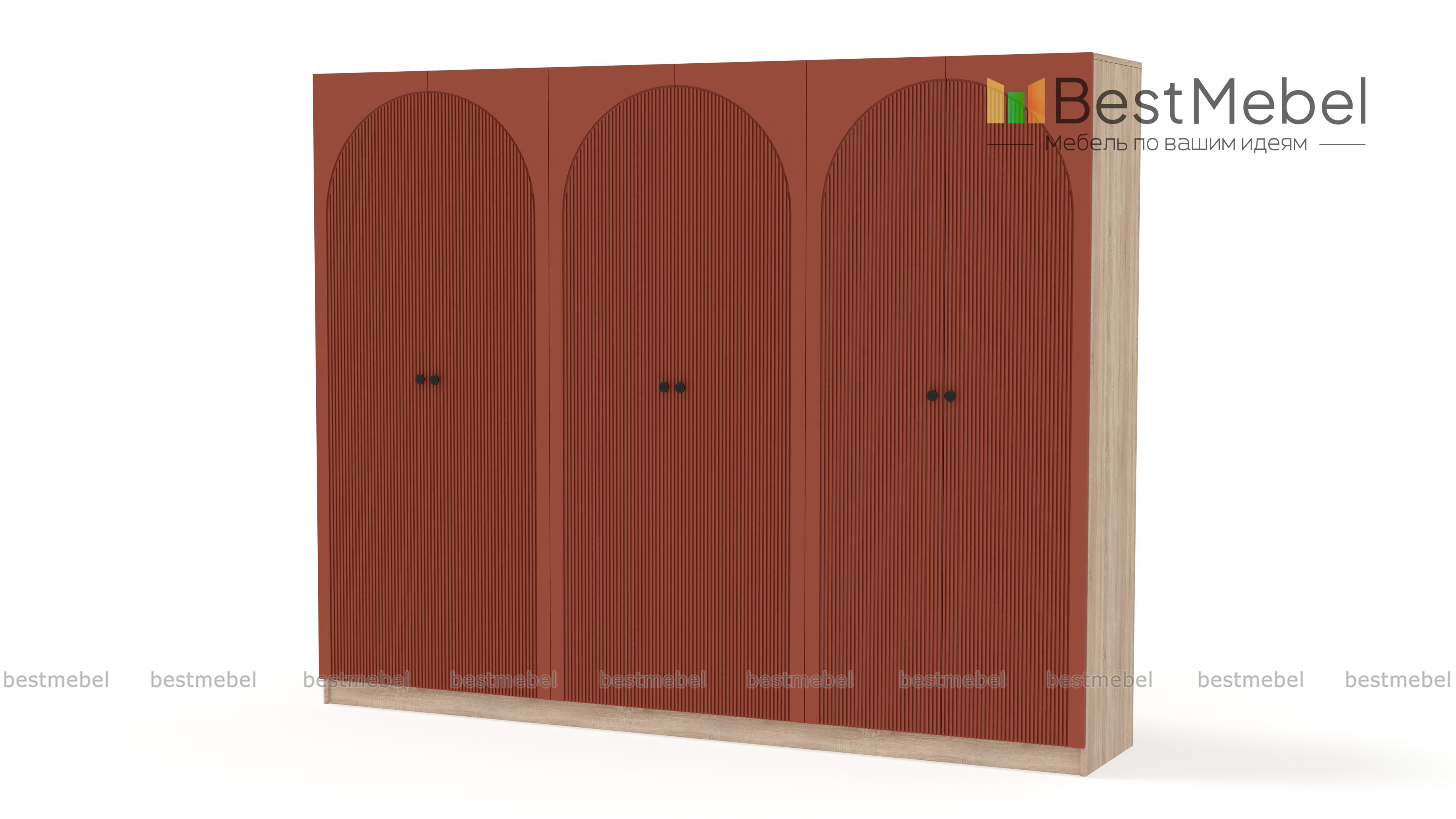 Шкаф распашной Вивьен 16 BMS — это удобный и вместительный гардероб с современным дизайном. Шестидверная конструкция включает в себя все необходимое для хранения одежды, обуви, аксессуаров и постельных принадлежностей. Фасады, изготовленные из МДФ с рифленым рисунком, стильно выглядят, просты в уходе и долговечны, корпус — ЛДСП высокого качества. Купить шкаф распашной Вивьен 16 BMS с выбором размеров, цвета и компоновки вы сможете недорого в нашем интернет-магазине.