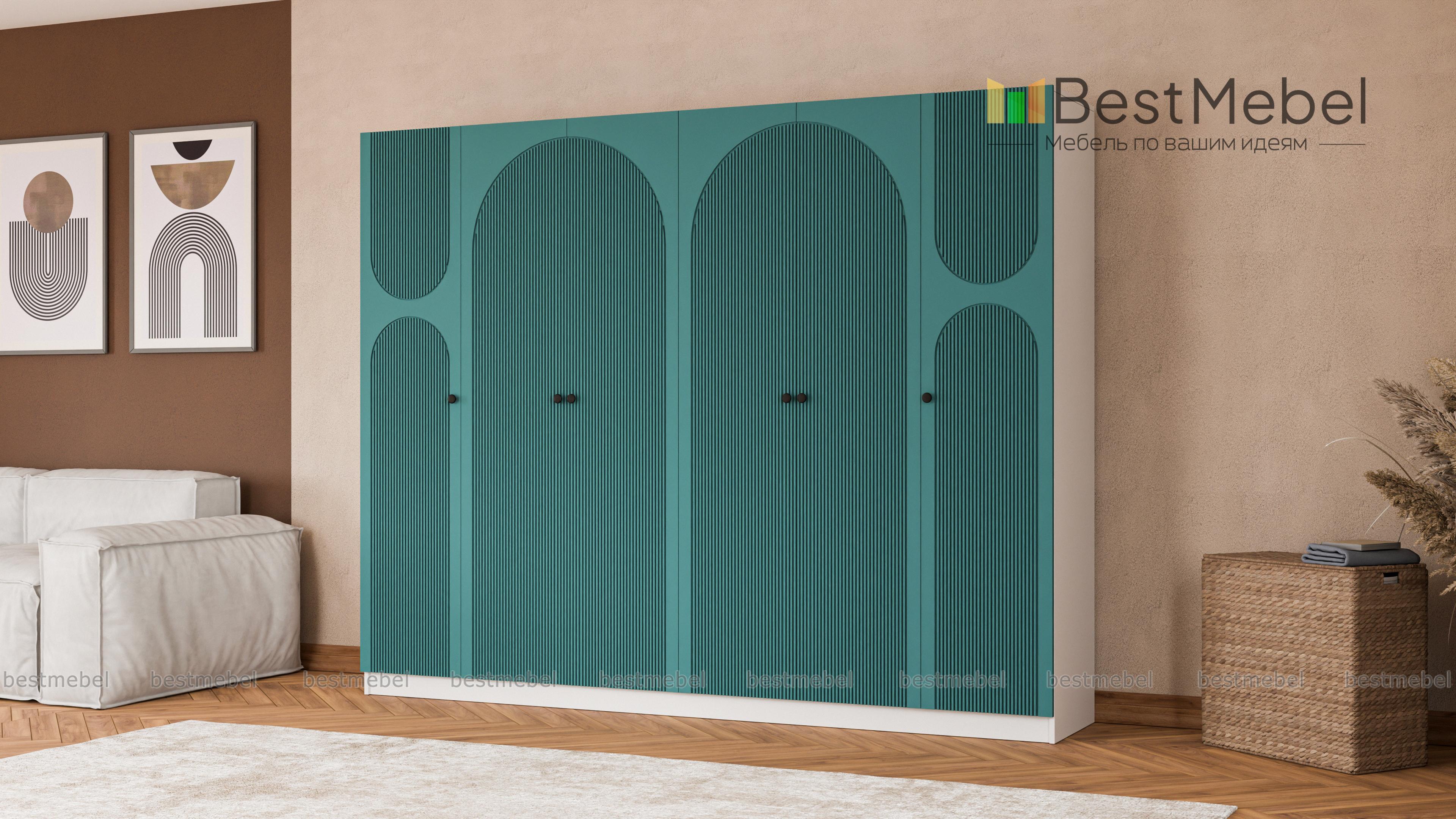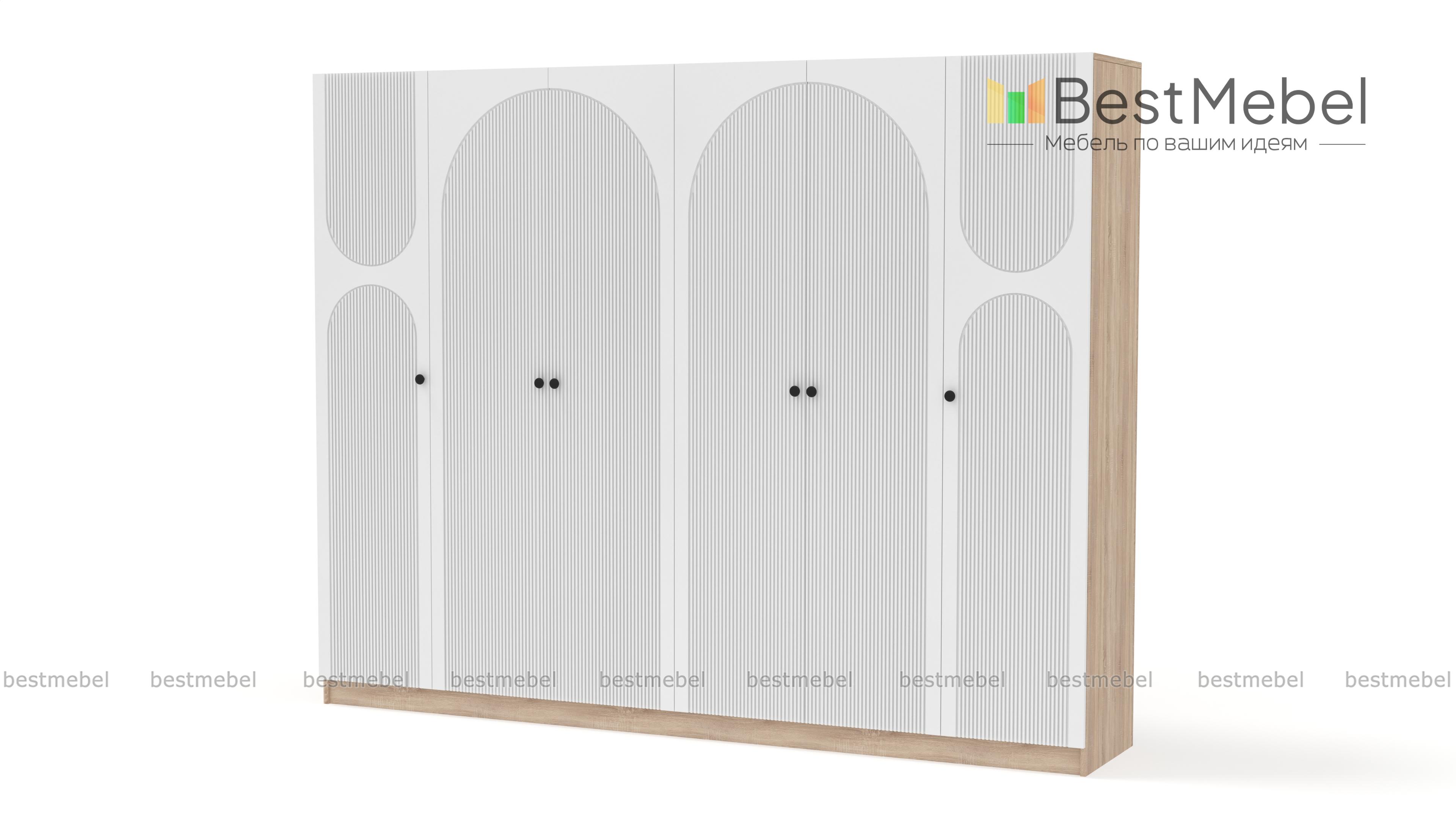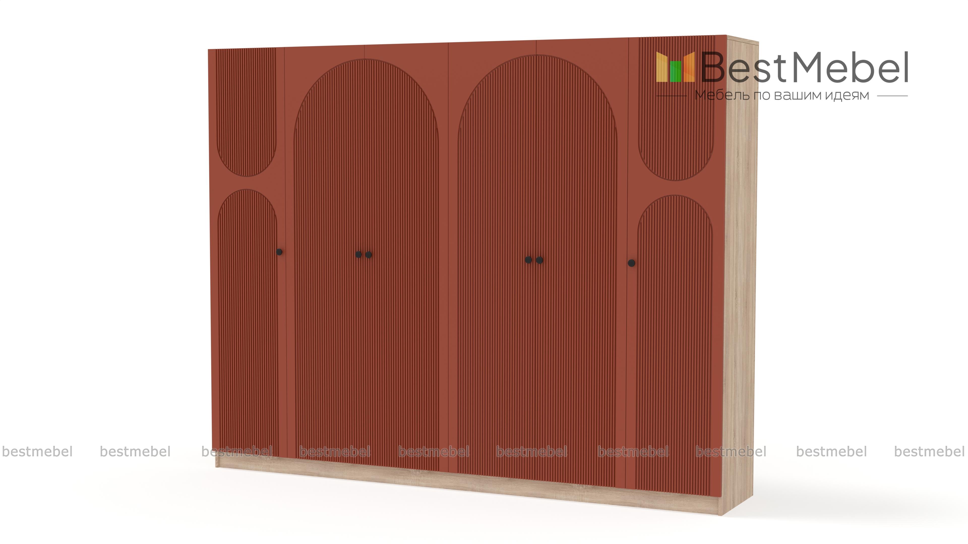 Шкаф распашной Вивьен 17 BMS оборудован двухдверными секциями в центре и однодверными — по бокам. Благодаря распашной конструкции створок вы сразу видите содержимое полок и штанг. Для корпуса габаритного шестидверного шкафа использована прочная ламинированная плита с древесной фактурой, эффектный темный фасад украшает оригинальный рельеф. Купить шкаф распашной Вивьен 17 BMS вы сможете в нашем интернет-магазине, подобрав размеры, ручки, оттенки корпуса и фасада.