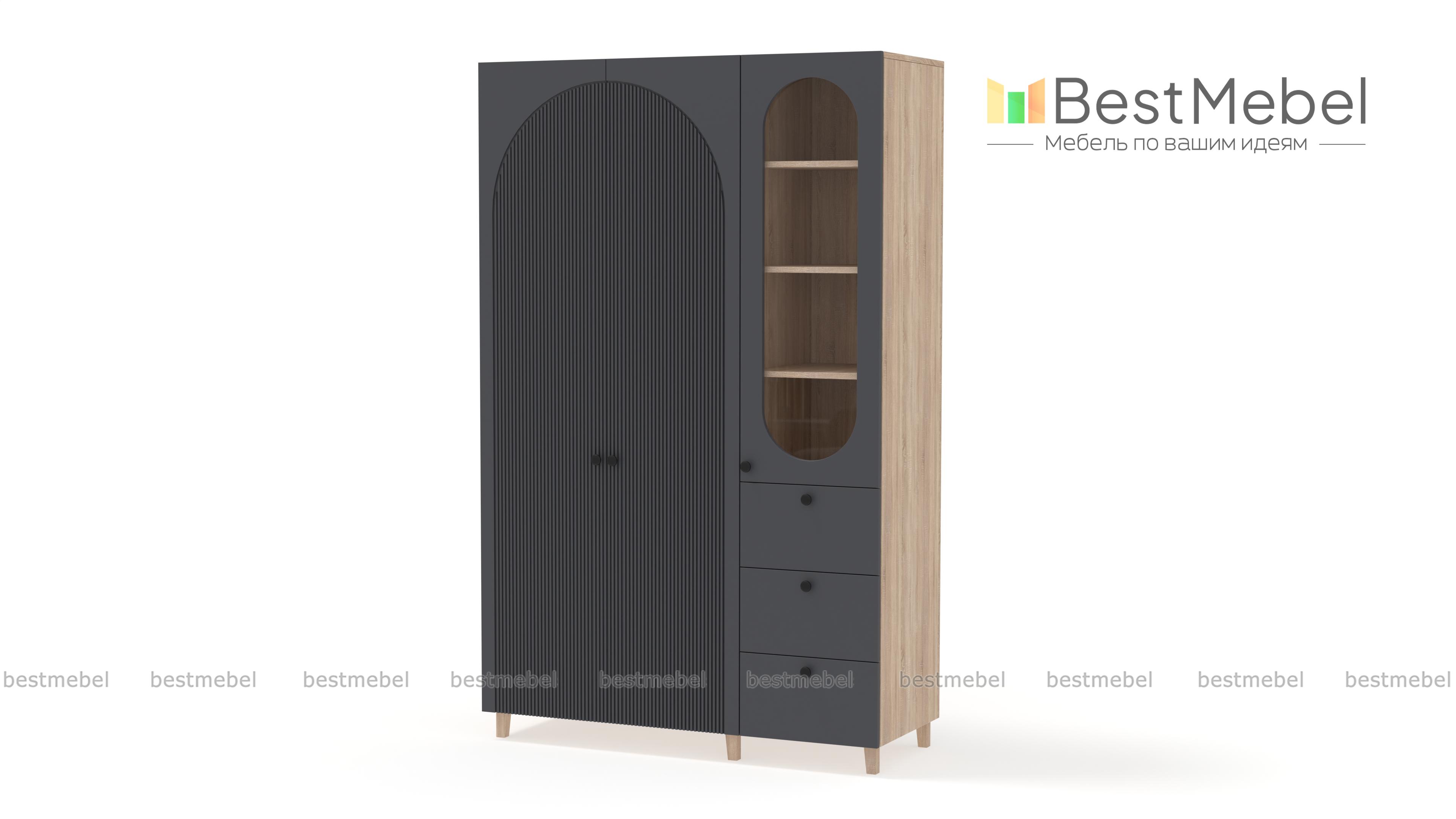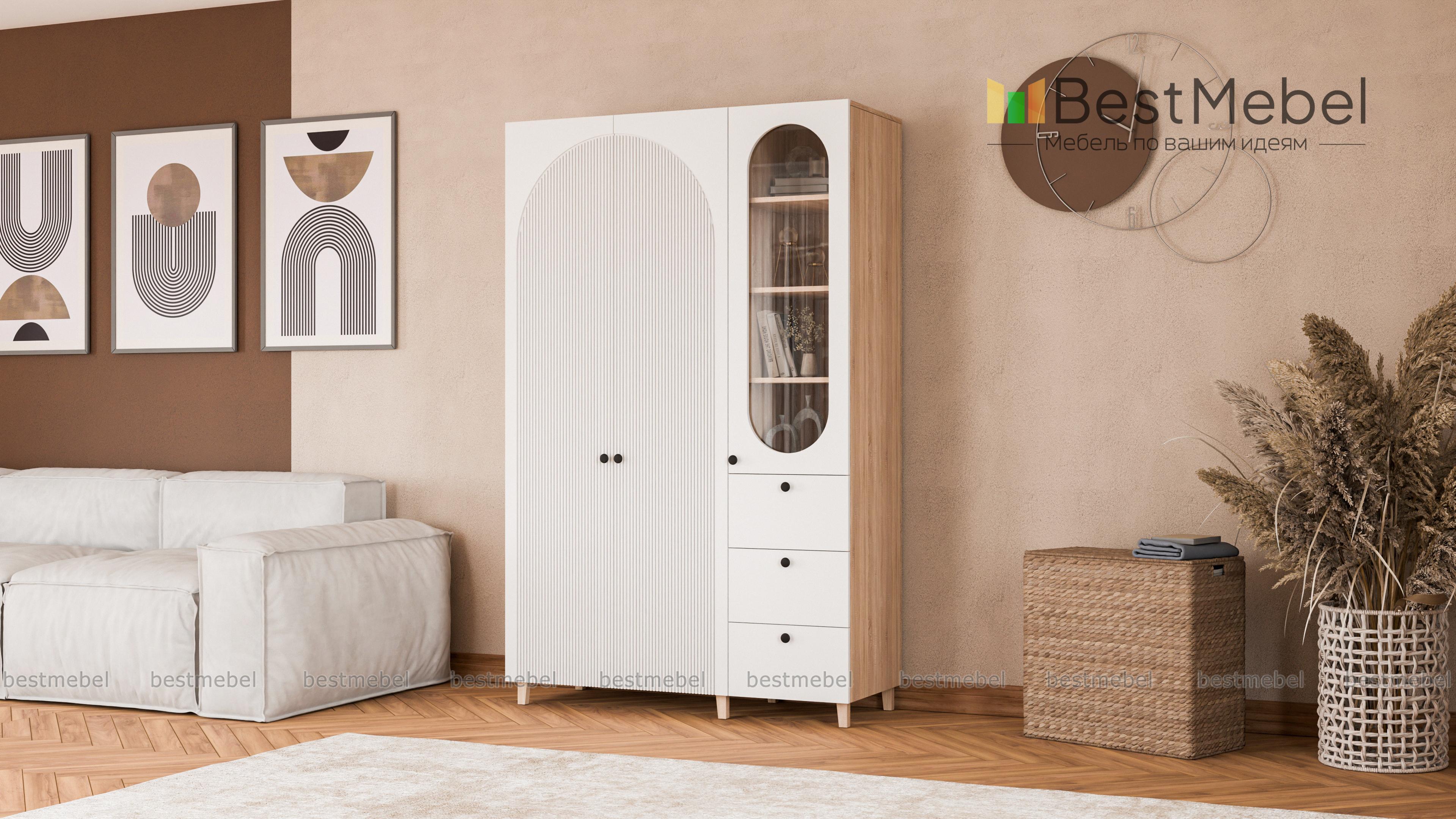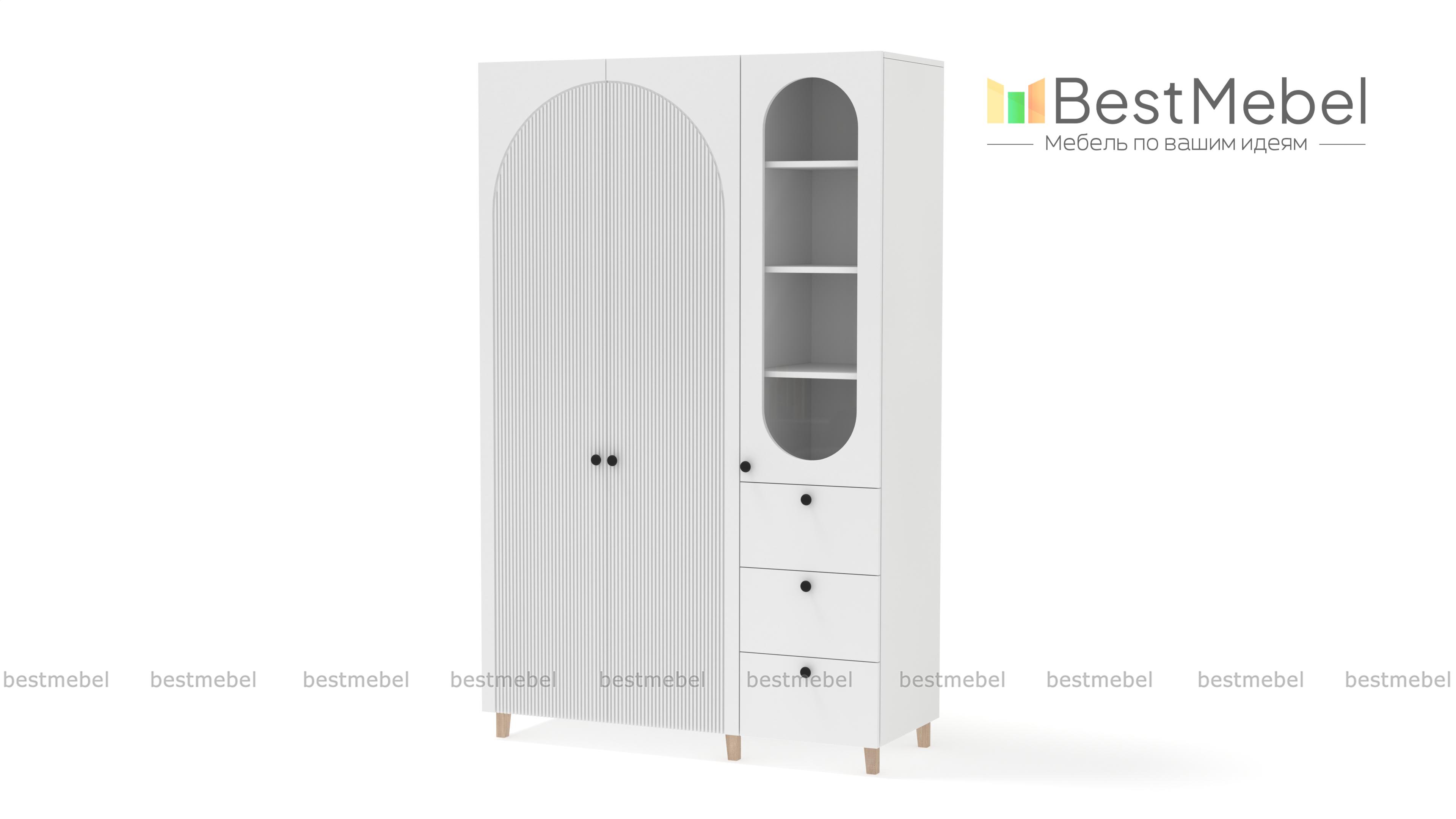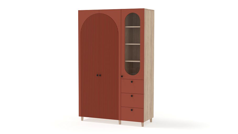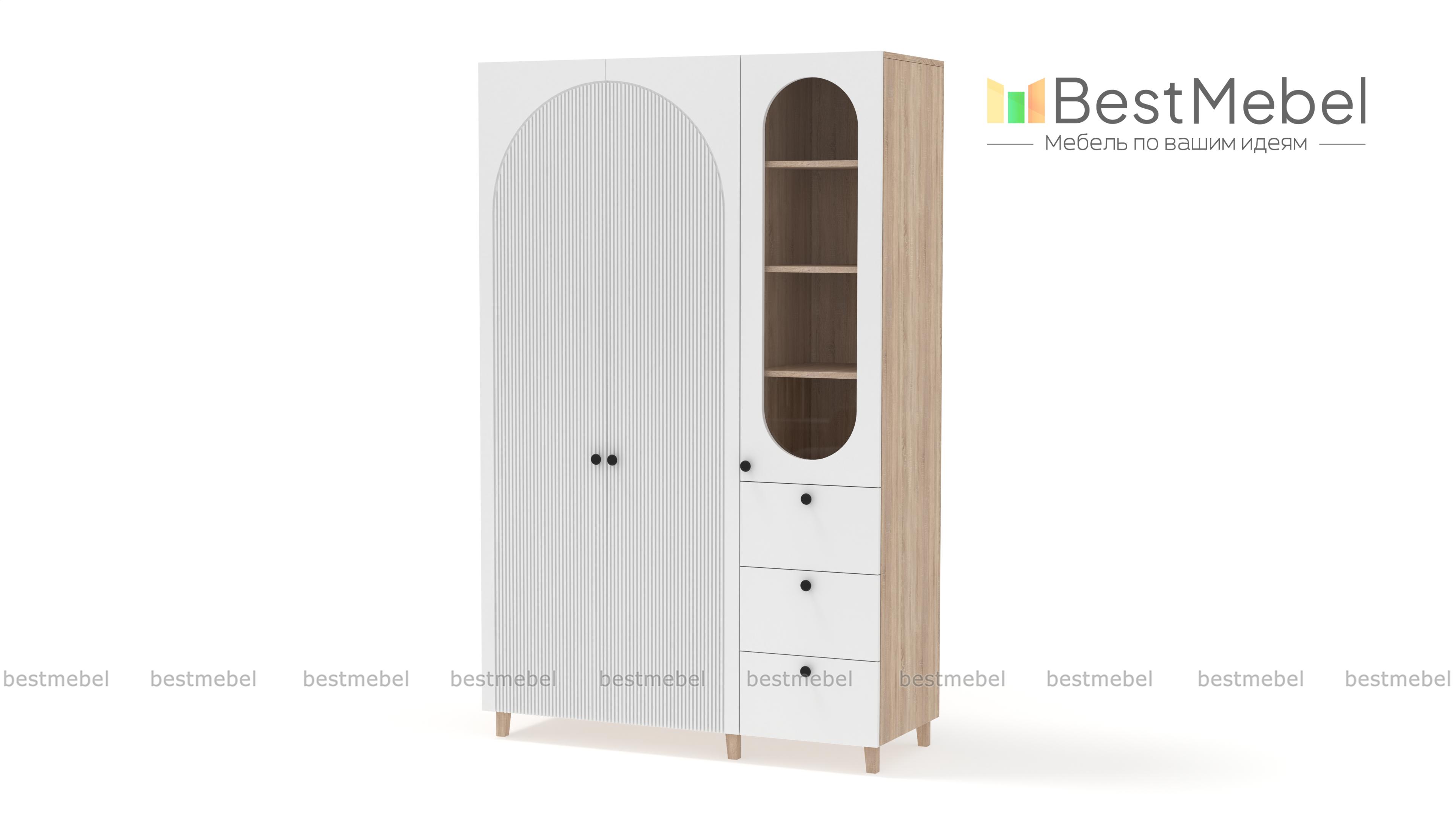 Шкаф распашной Вивьен 23 BMS стильно выглядит и оборудован всем необходимым для поддержания порядка в детской комнате, спальне или гостиной. Скрытое двумя дверцами платяное отделение, полки за стеклом и три ящика помогут бережно разместить одежду, книги и тетради, декоративные мелочи и материалы для творчества. Полукруглые вырезы и рельеф на фасаде придают яркую индивидуальность дизайну. Купить шкаф распашной Вивьен 23 BMS вы сможете в нашем интернет-магазине с учетом оптимальных размеров.