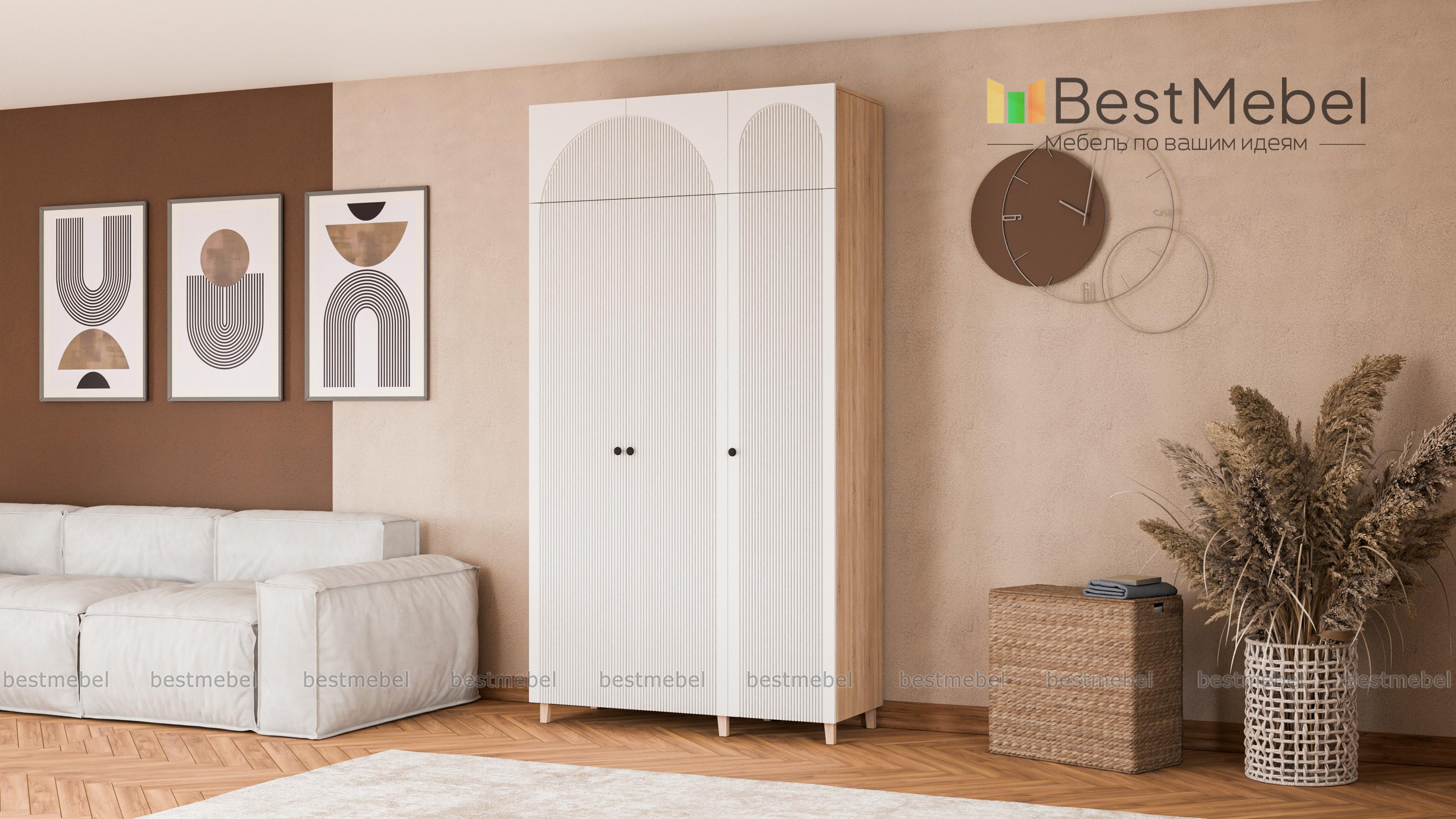 Шкаф распашной Вивьен 8 BMS — это небольшой универсальный гардероб в детскую или спальню. Два распашных отделения и антресоль обеспечивают шкафу отличную вместительность, а с высокими ножками конструкция совсем не смотрится громоздко. Уютный современный дизайн создает комбинация контрастных оттенков корпуса и фасада и необычная отделка фрезеровкой. Купить шкаф распашной Вивьен 8 BMS вы сможете в нашем интернет-магазине, подобрав по своему вкусу цвет и фурнитуру.