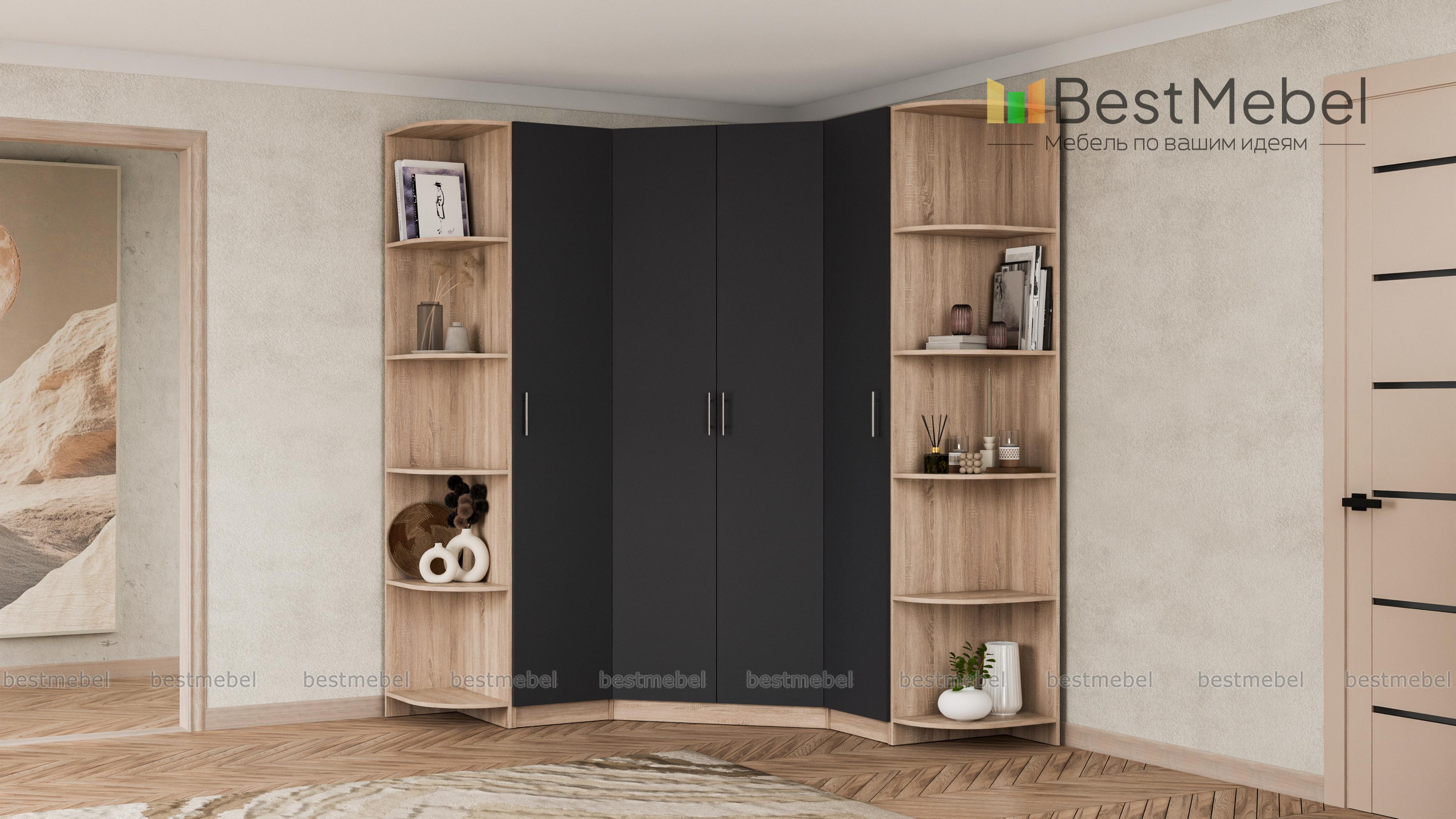 Шкаф угловой Мерлин -16 BMS как по волшебству превратит скучный бесполезный угол комнаты в функциональный и красивый. Элегантная модульная конструкция вызывает восхищение. С таким шкафом не страшен любой объем одежды и белья, для каждой вещи найдется своя полочка. Довольно строгие линии модели смягчают угловые элементы с полочками. Кроме практичности важна и эстетичность изделия, открытые полочки позволят декорировать комнату, придав интерьеру индивидуальность. Купить шкаф угловой Мерлин-16 BMS можно быстро и недорого в нашем интернет – магазине прямо сейчас.