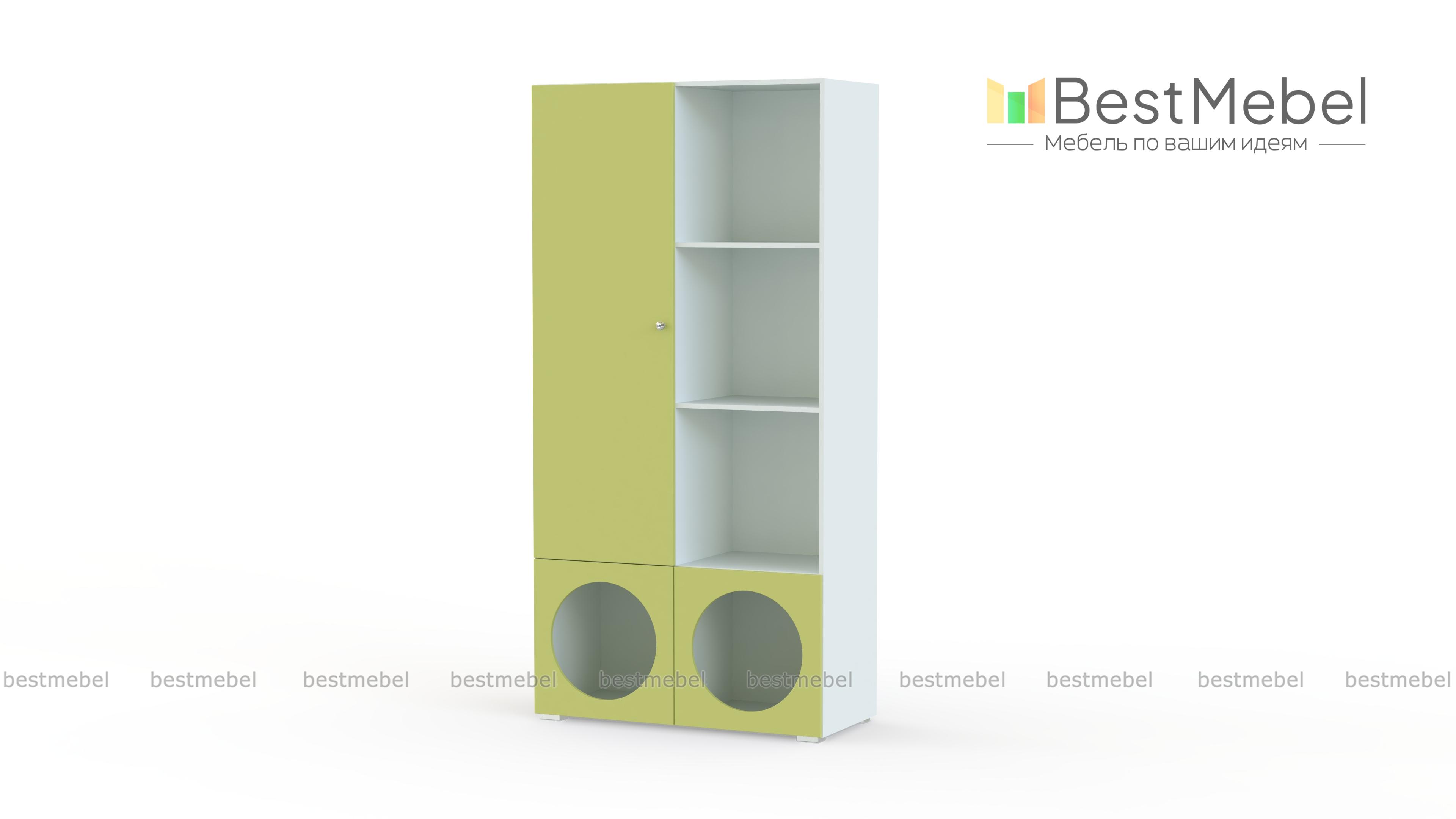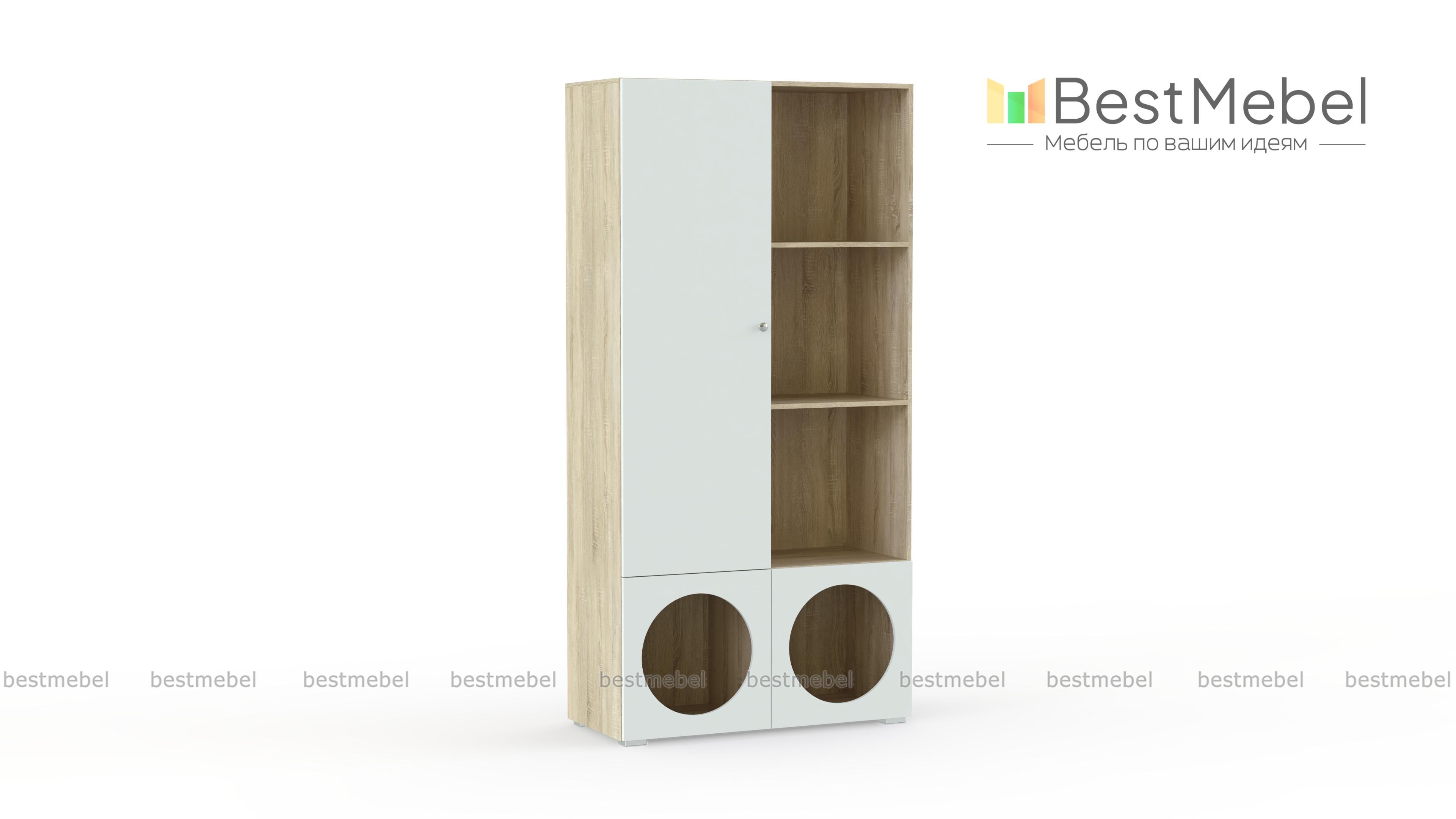 Стеллаж Авелин 7 BMS имеет простой современный дизайн, который будет актуален долгие годы. Корпус с полками древесного оттенка закрывают лаконичные гладкие фасады из МДФ. Полки на любой вкус: за распашной дверцей, открытые и оформленные в отсеки с необычными круглыми вырезами помогут подростку с аккуратным хранением личных вещей. Купить стеллаж Авелин 7 BMS вы всегда сможете в нашем интернет-магазине, подобрав размеры и цветовую гамму для корпуса и фасадов.