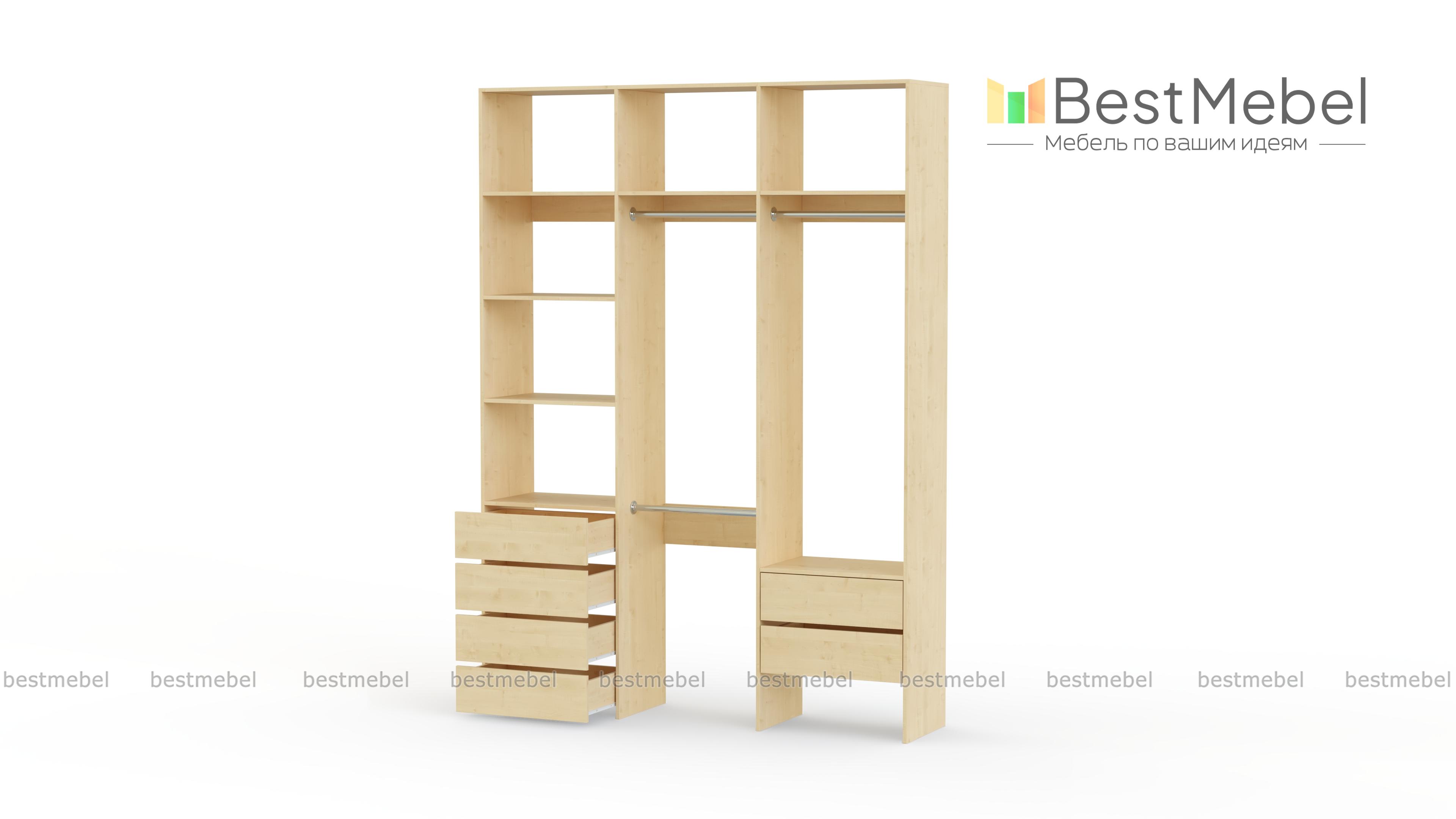 Стеллаж для одежды Мирта 13 BMS – это удобство пользования, надежность и стильный современный дизайн. На трех штангах будет аккуратно развешана одежда, а просторные полки и ящики вместят обувь, корзины и органайзеры с мелочами. Гладкие ламинированные поверхности просты в уходе, и стеллаж надолго сохранит привлекательный внешний вид. Купить стеллаж для одежды Мирта 13 BMS вы сможете на сайте нашего интернет-магазина, подобрав оптимальные размеры и цвет по каталогу.