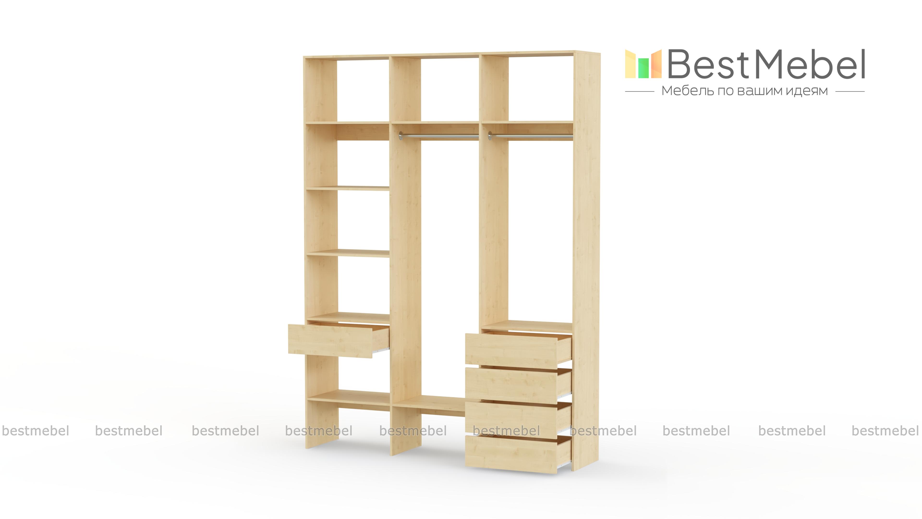 Стеллаж для одежды Мирта 17 BMS упорядочит хранение гардероба и сэкономит пространство. Многофункциональная конструкция с полками, двумя штангами и выдвижными ящиками легко заменит платяной шкаф и комод. Открытая модель стеллажа обеспечивает отличный обзор содержимому, помогая быстро найти нужную вещь. Купить стеллаж для одежды Мирта 17 BMS, подобрав необходимые размеры и гармонирующий с другой мебелью оттенок, приглашаем в наш интернет-магазин.