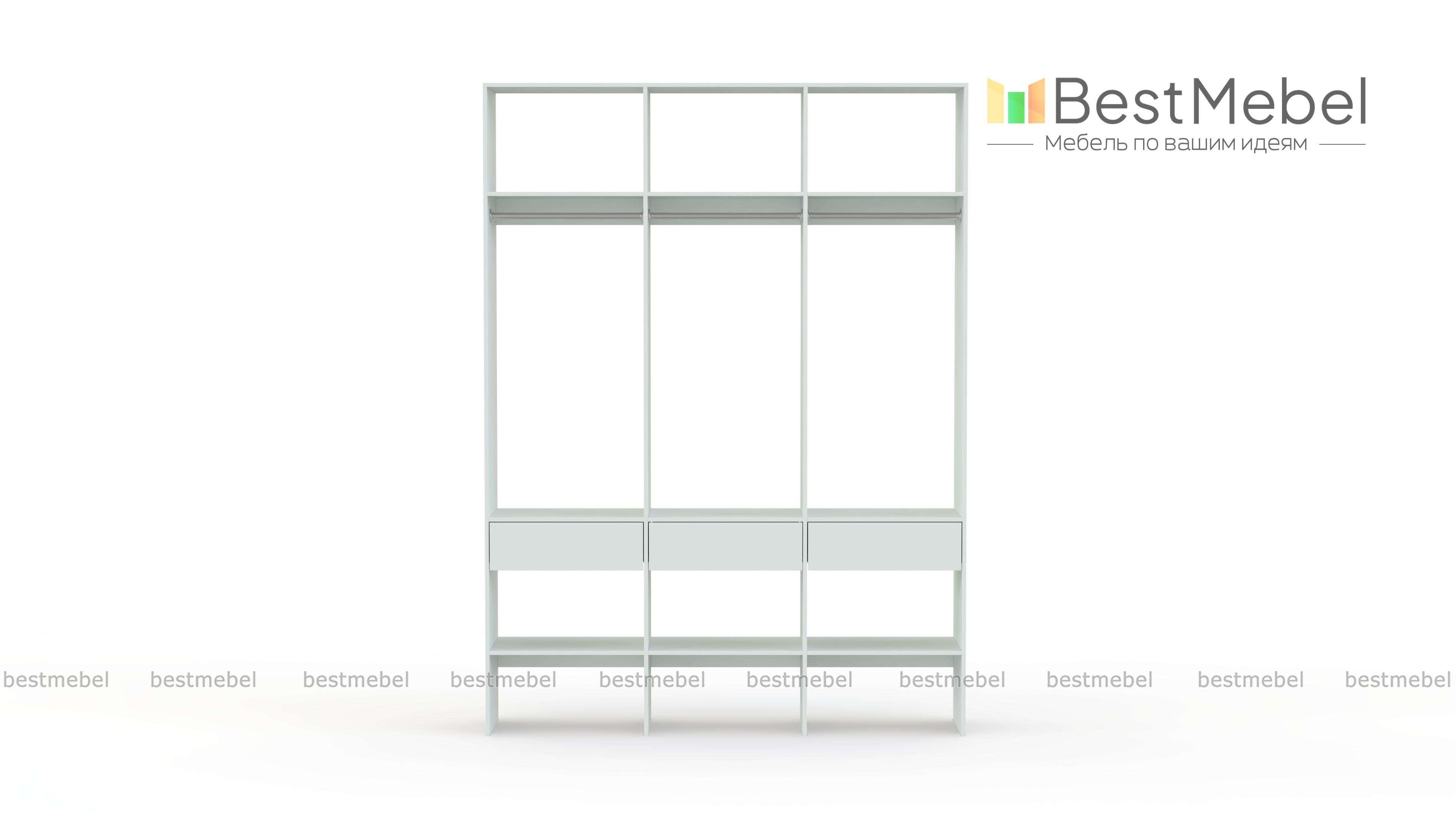 Стеллаж для одежды Мирта 51 BMS — визуально легкая и надежная конструкция из ламинированной ДСП, которую легко вписать в интерьер. Трехсекционный стеллаж прекрасно подходит для современных прихожих и гардеробных. Для вашего удобства три бельевых ящика и обувные полки располагаются снизу, а пространство над штангами занято полками для редко используемых вещей. Купить стеллаж для одежды Мирта 51 BMS вы сможете на сайте нашего интернет-магазина, подобрав цвет и размеры.