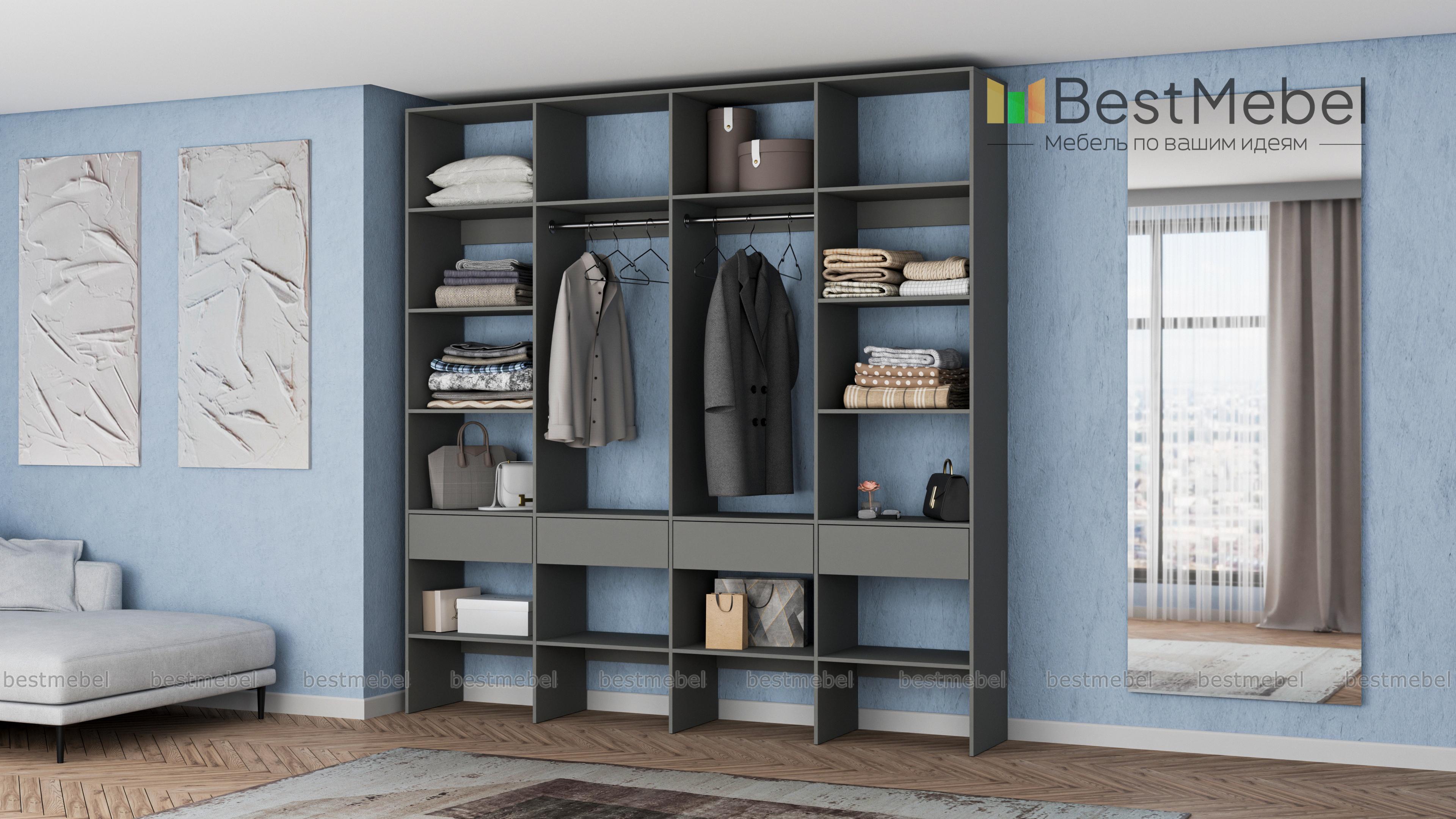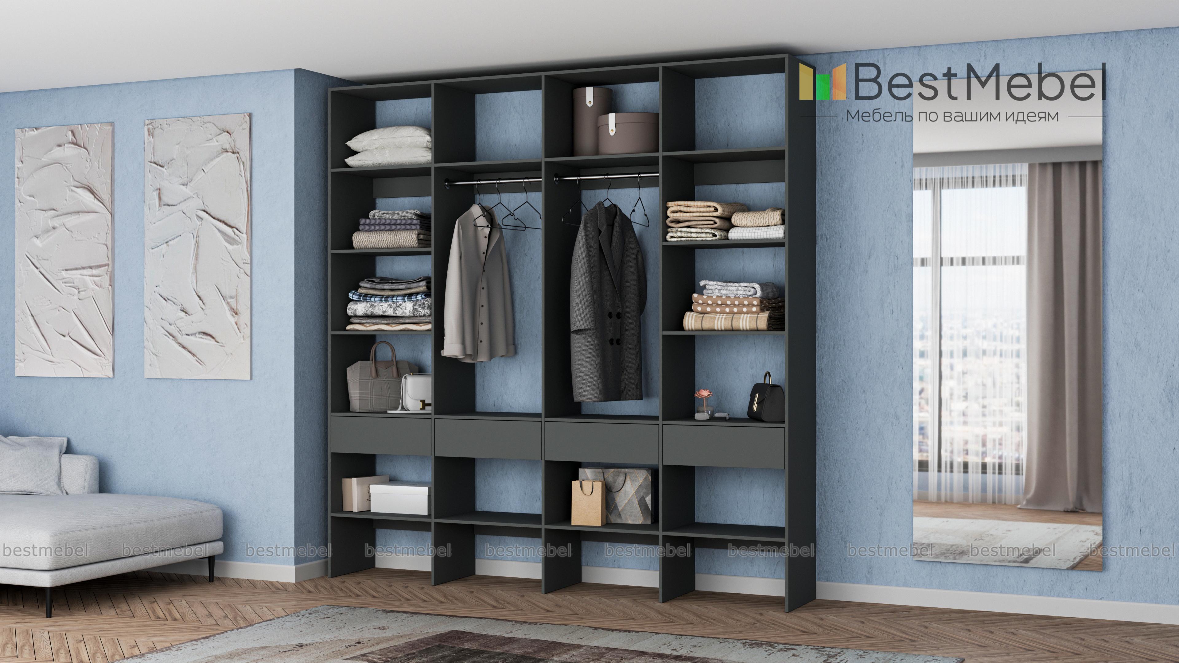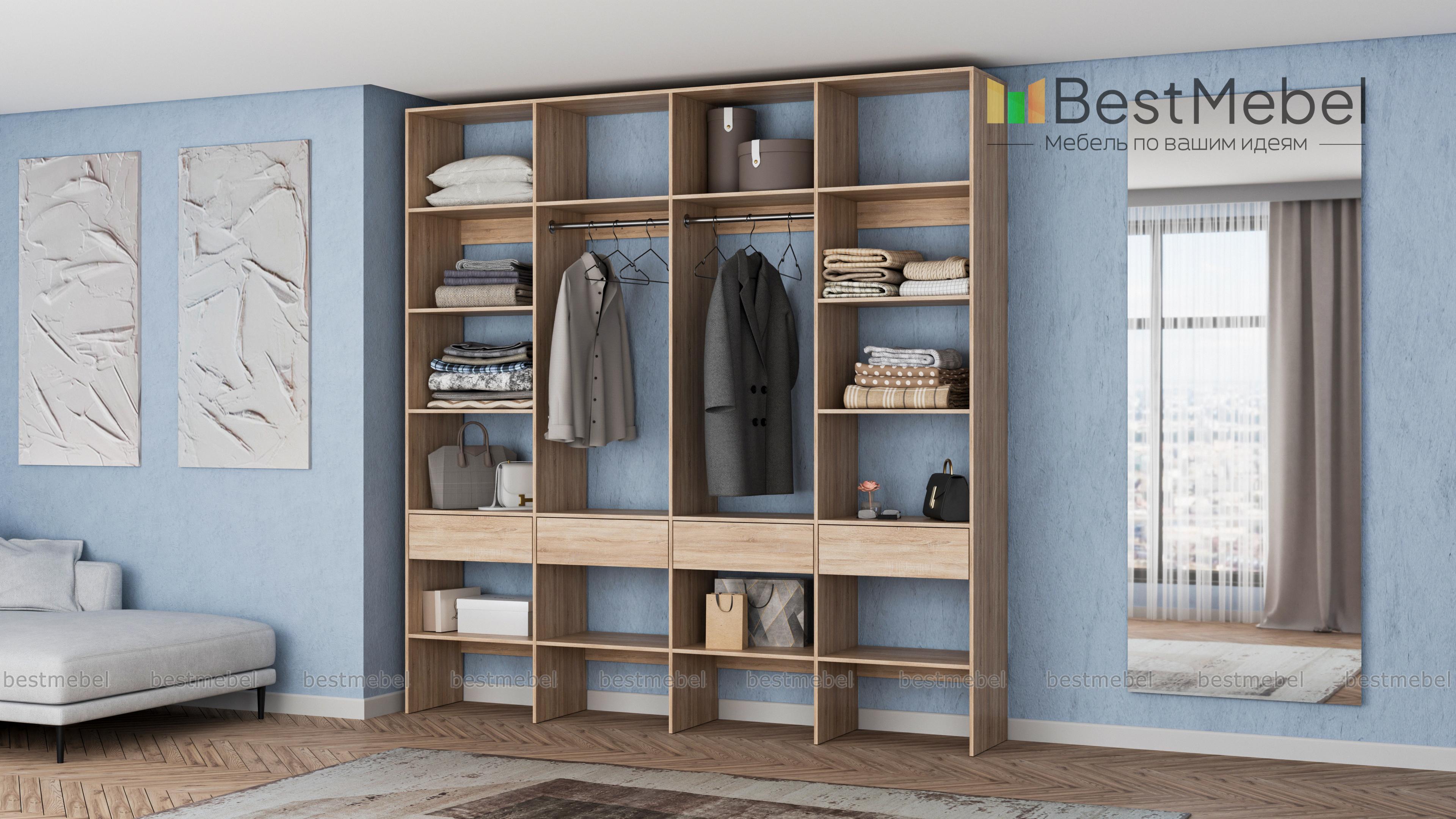 Стеллаж для одежды Мирта 60 BMS поможет вам с организацией хранения гардероба и бытовых вещей. Одежда, текстиль для дома, сезонные аксессуары и обувь будут всегда на виду и под рукой благодаря продуманной конструкции. Четырехсекционная модель оборудована двумя штангами в центре, расположенными по периметру полками и рядом из четырех выдвижных ящиков. Купить стеллаж для одежды Мирта 60 BMS в оттенках нашего каталога и любом удобном размере вы сможете на сайте интернет-магазина.
